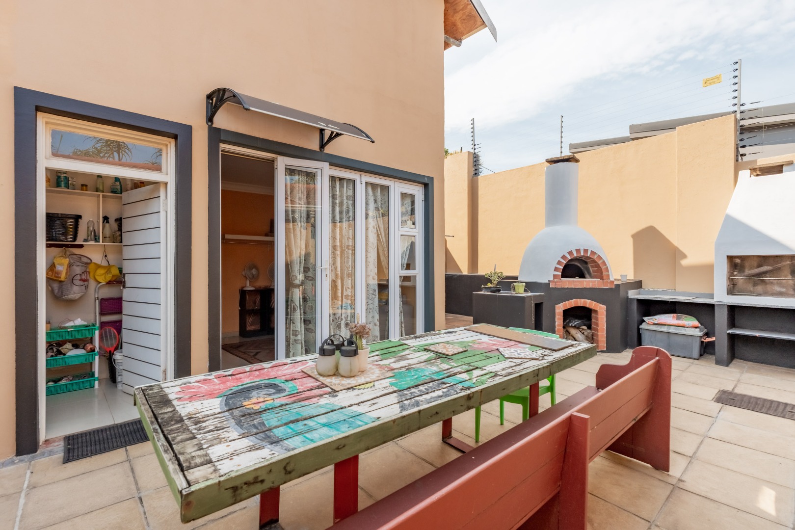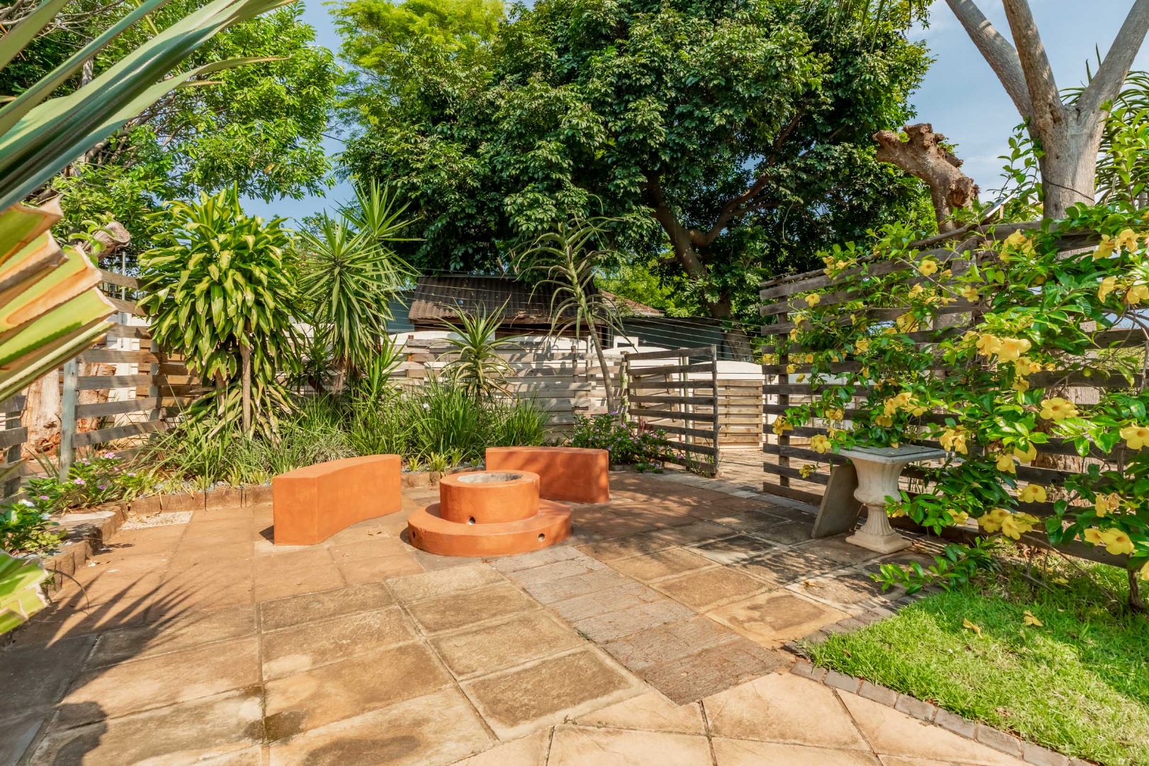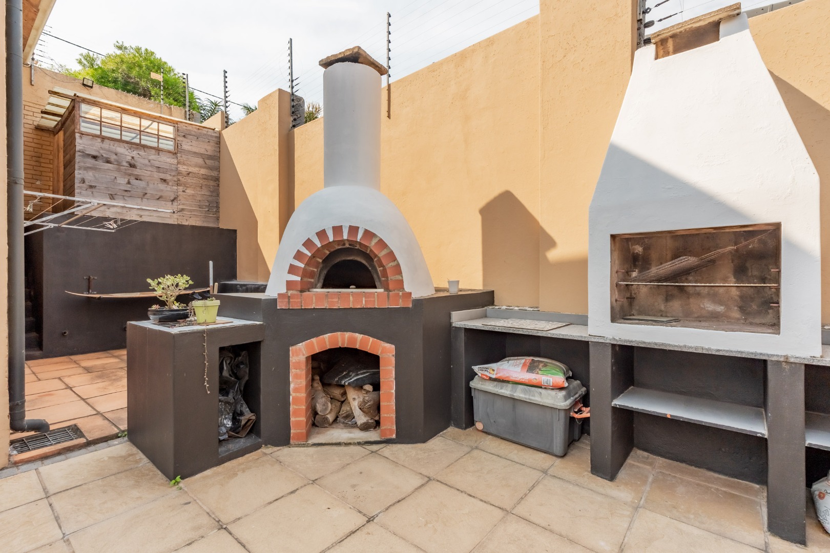 The outdoor oasis is a true highlight, featuring a large, kidney-shaped swimming pool surrounded by extensive tropical landscaping and paved lounging areas. A covered outdoor entertainment space, a patio with a fire pit and built-in seating, and a dedicated outdoor kitchen complete with a pizza oven and built-in braai make this property ideal for entertaining. Additional features include air conditioning, water tanks, and a totally walled perimeter for privacy and security. This Herrwood Park home offers a unique lifestyle opportunity.