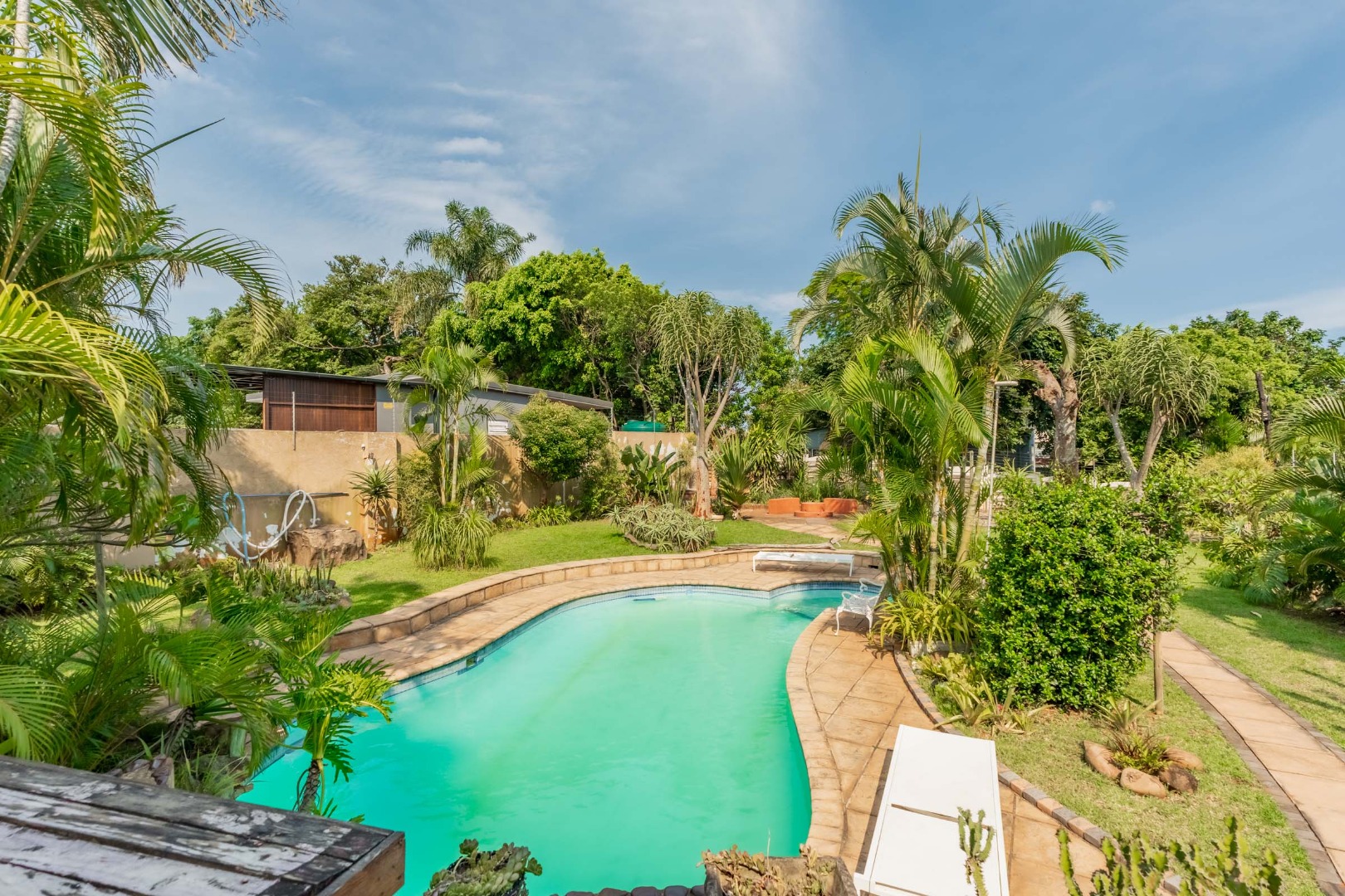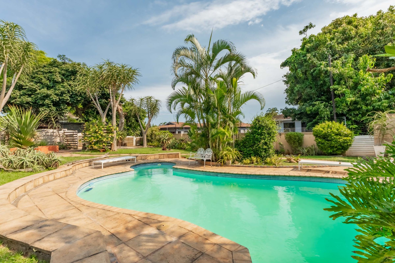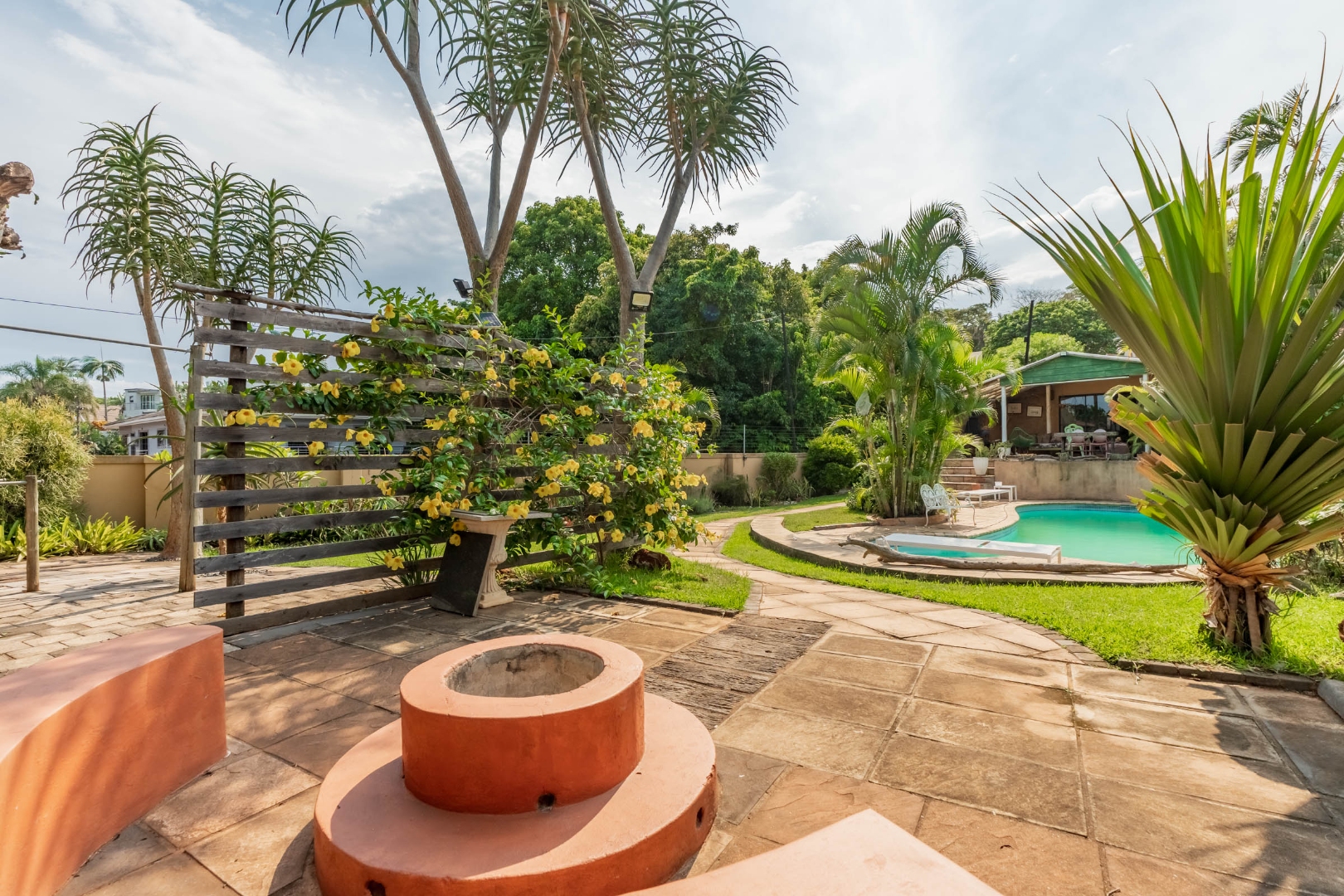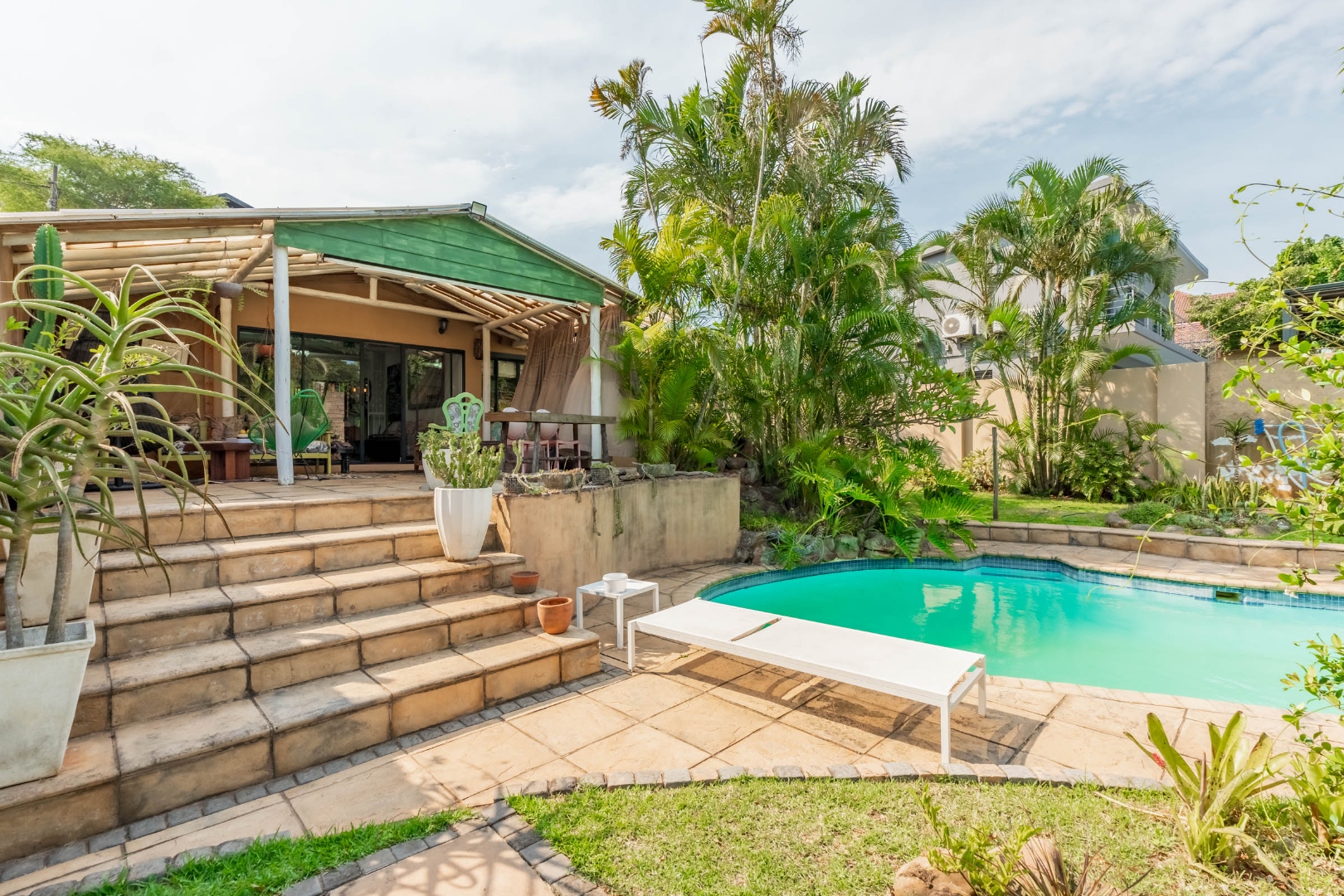 Nestled in the desirable suburban enclave of Herrwood Park, Umhlanga, this inviting 4-bedroom, 4-bathroom residence offers a harmonious blend of comfortable living and tropical outdoor appeal. The property welcomes you with an inviting arched entrance, flanked by lush landscaping and earthy-toned walls, setting a serene tone. Inside, the home features an open-plan layout, enhanced by abundant natural light, exposed wooden ceiling beams, and warm parquet flooring, creating a bright and airy atmosphere.