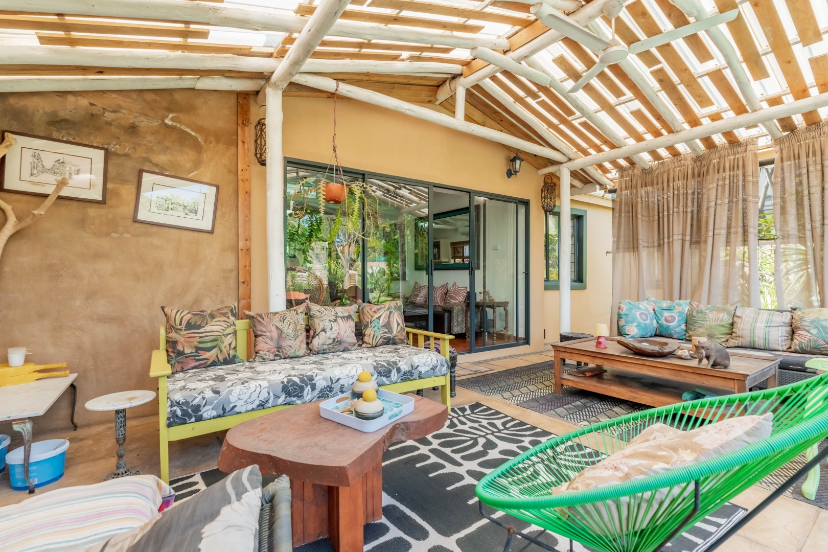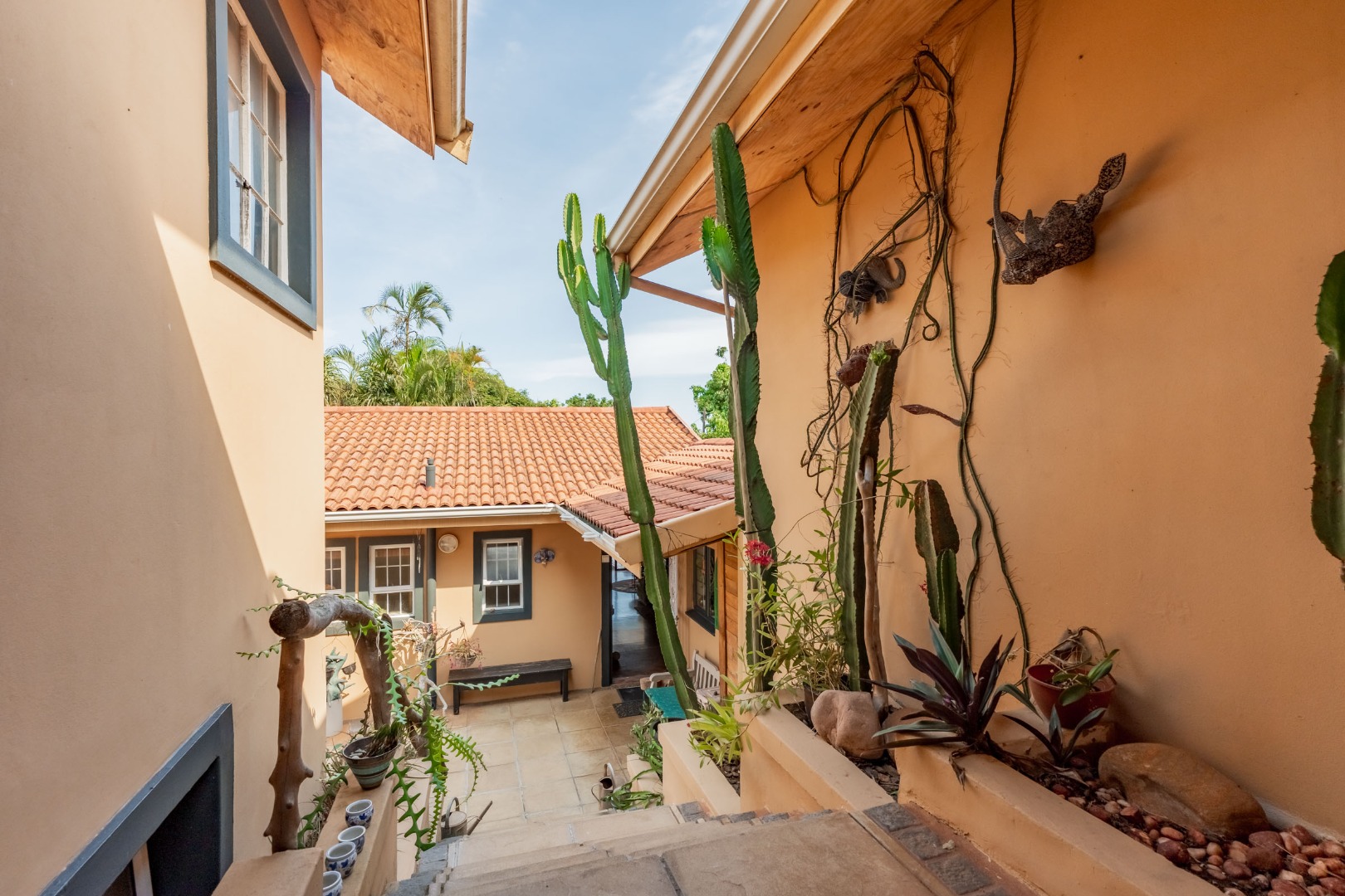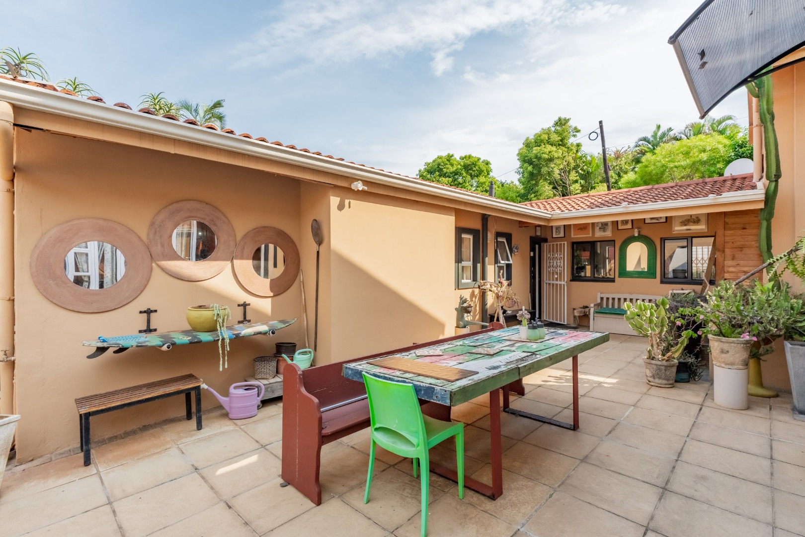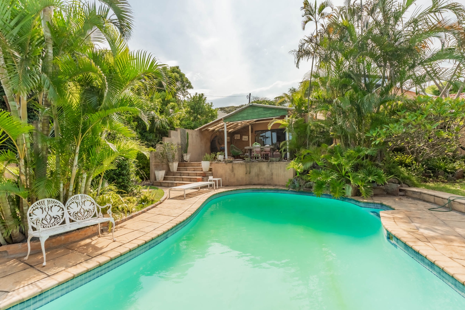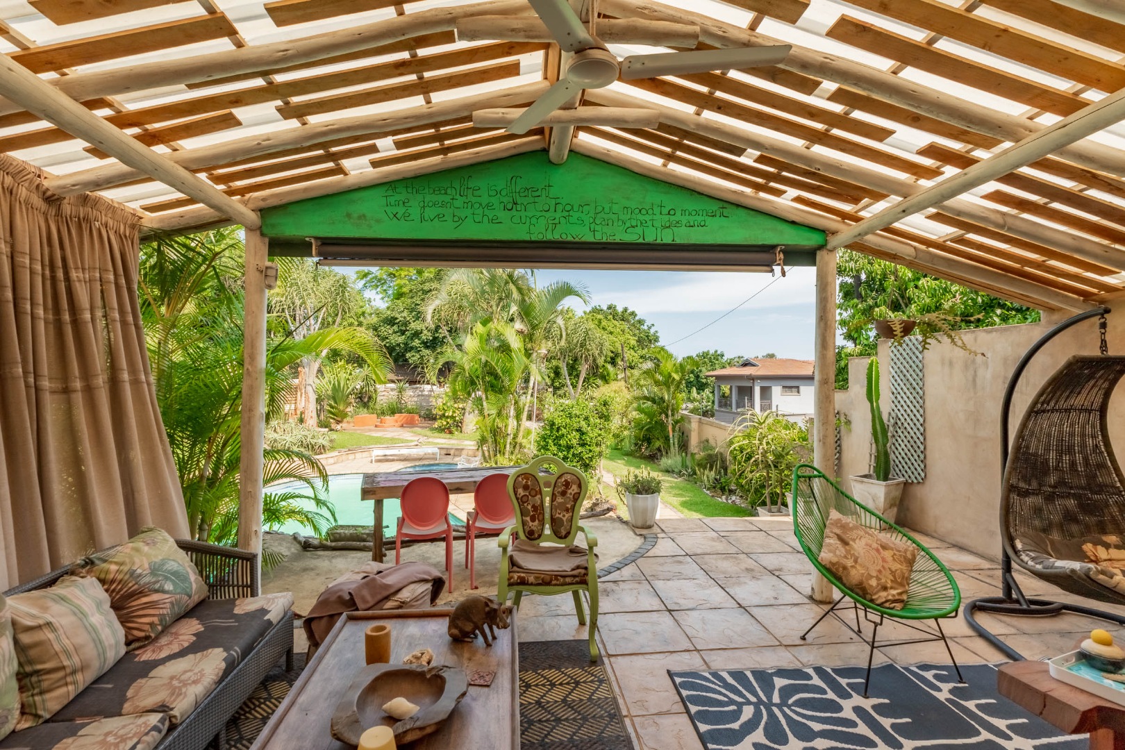 Nestled in the desirable suburban enclave of Herrwood Park, Umhlanga, this inviting 4-bedroom, 4-bathroom residence offers a harmonious blend of comfortable living and tropical outdoor appeal. The property welcomes you with an inviting arched entrance, flanked by lush landscaping and earthy-toned walls, setting a serene tone. Inside, the home features an open-plan layout, enhanced by abundant natural light, exposed wooden ceiling beams, and warm parquet flooring, creating a bright and airy atmosphere.