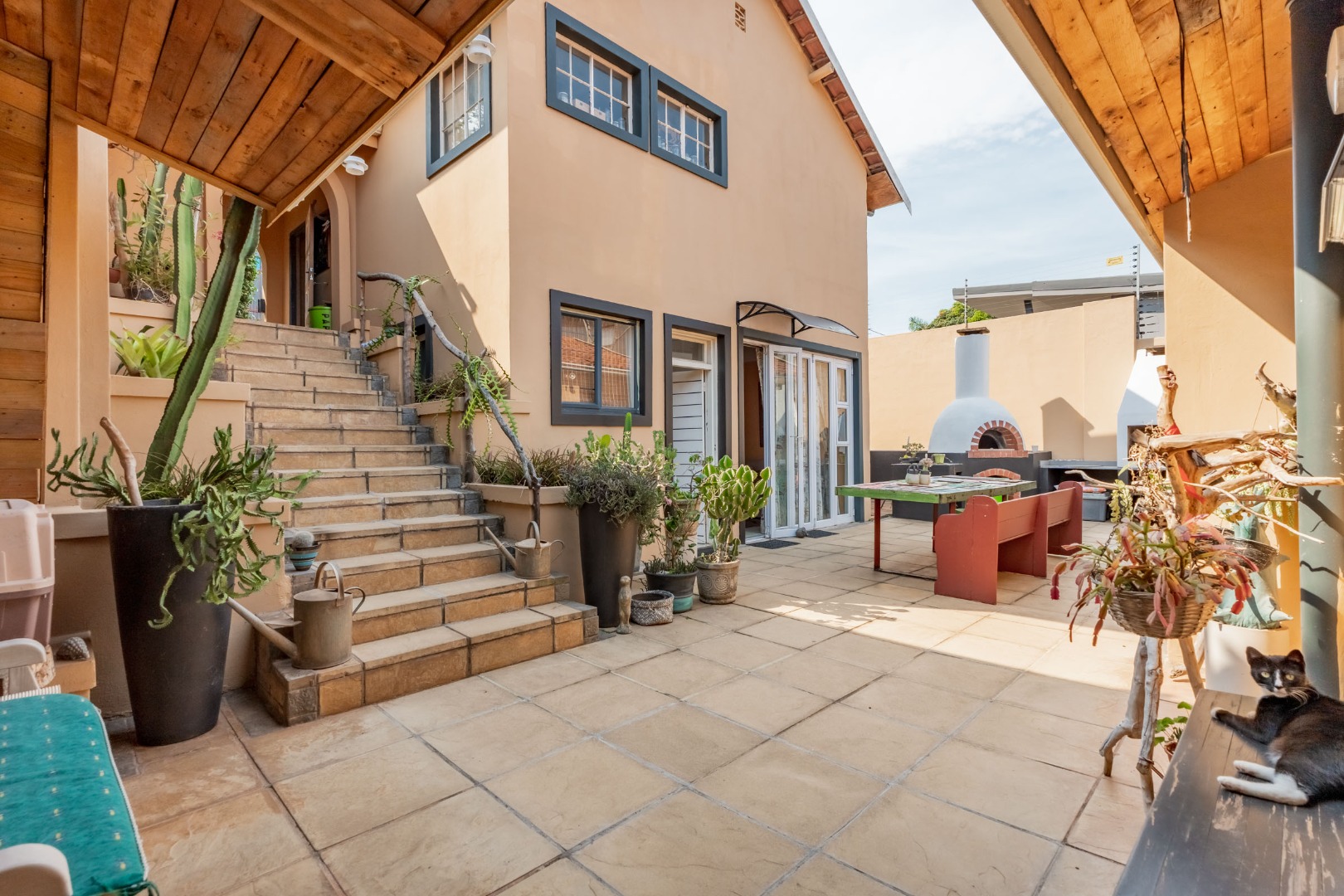 The outdoor oasis is a true highlight, featuring a large, kidney-shaped swimming pool surrounded by extensive tropical landscaping and paved lounging areas. A covered outdoor entertainment space, a patio with a fire pit and built-in seating, and a dedicated outdoor kitchen complete with a pizza oven and built-in braai make this property ideal for entertaining. Additional features include air conditioning, water tanks, and a totally walled perimeter for privacy and security. This Herrwood Park home offers a unique lifestyle opportunity.