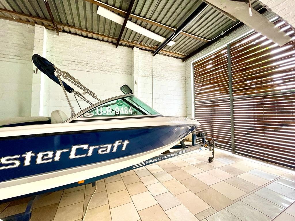 The pub and lounge spill onto a balcony overlooking the large garden and ocean. The well-appointed kitchen has a scullery, separate pantry and direct access to the garages, one of which is high enough to accommodate a ski boat.