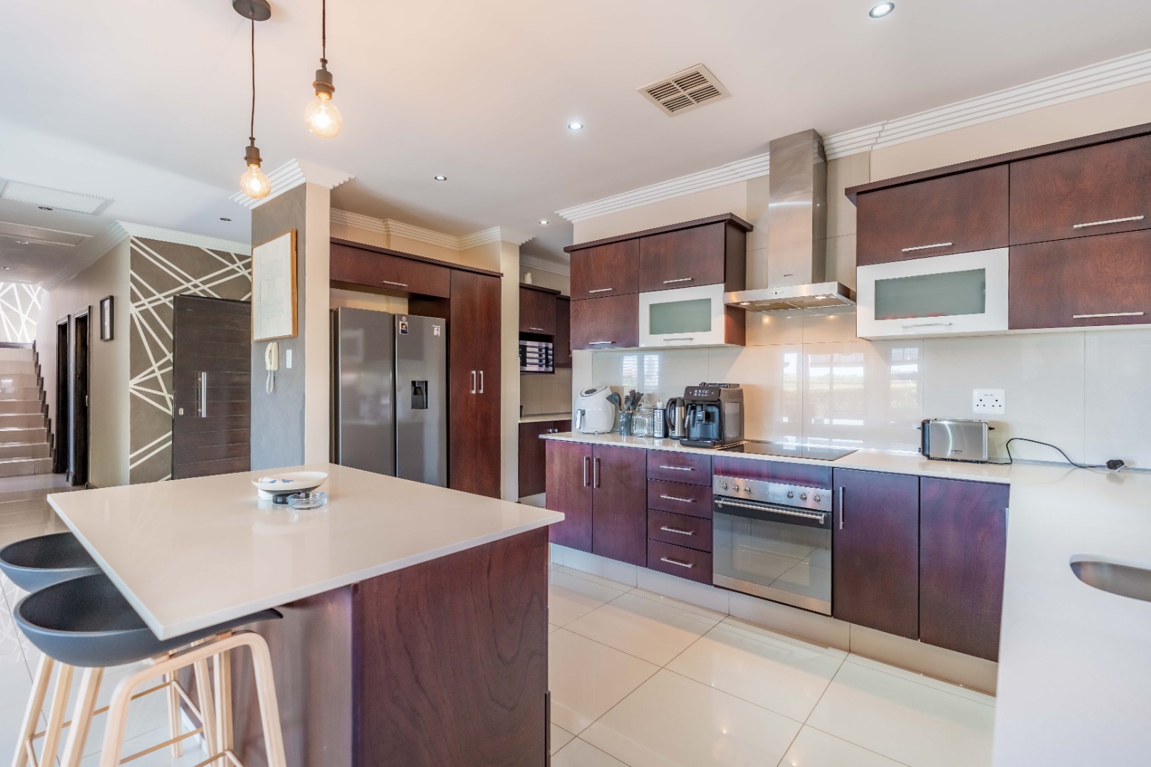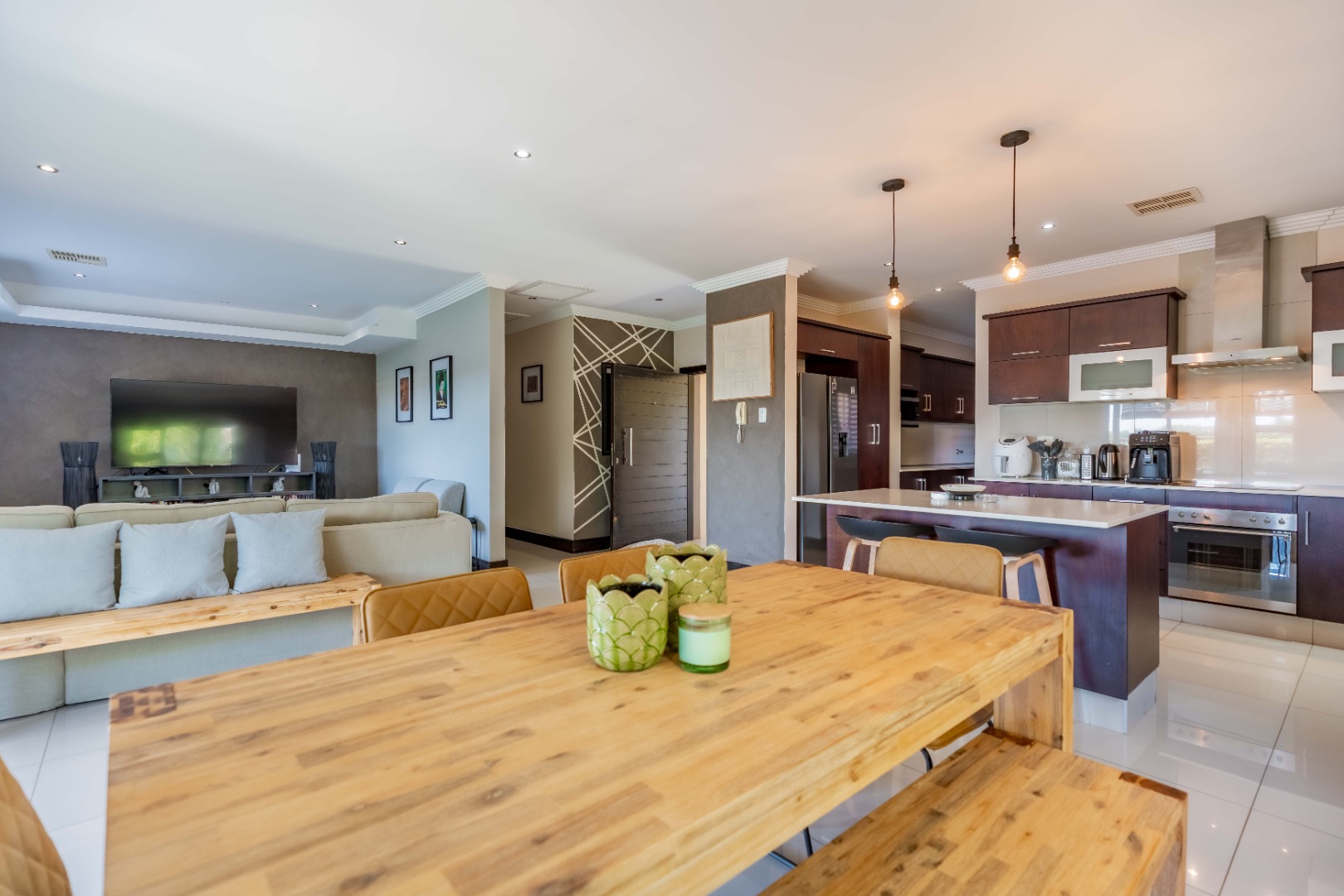 Residing in this estate means enjoying peace of mind with 24-hour security, an access gate, security post, and intercom system. The property is fully fenced, and 2 pets are welcome with permission. In addition, there is the use of a communal pool for the hot summer months. Conveniently located 5 minutes from Gateway Theatre of Shopping, and excellent schools and hospitals.
