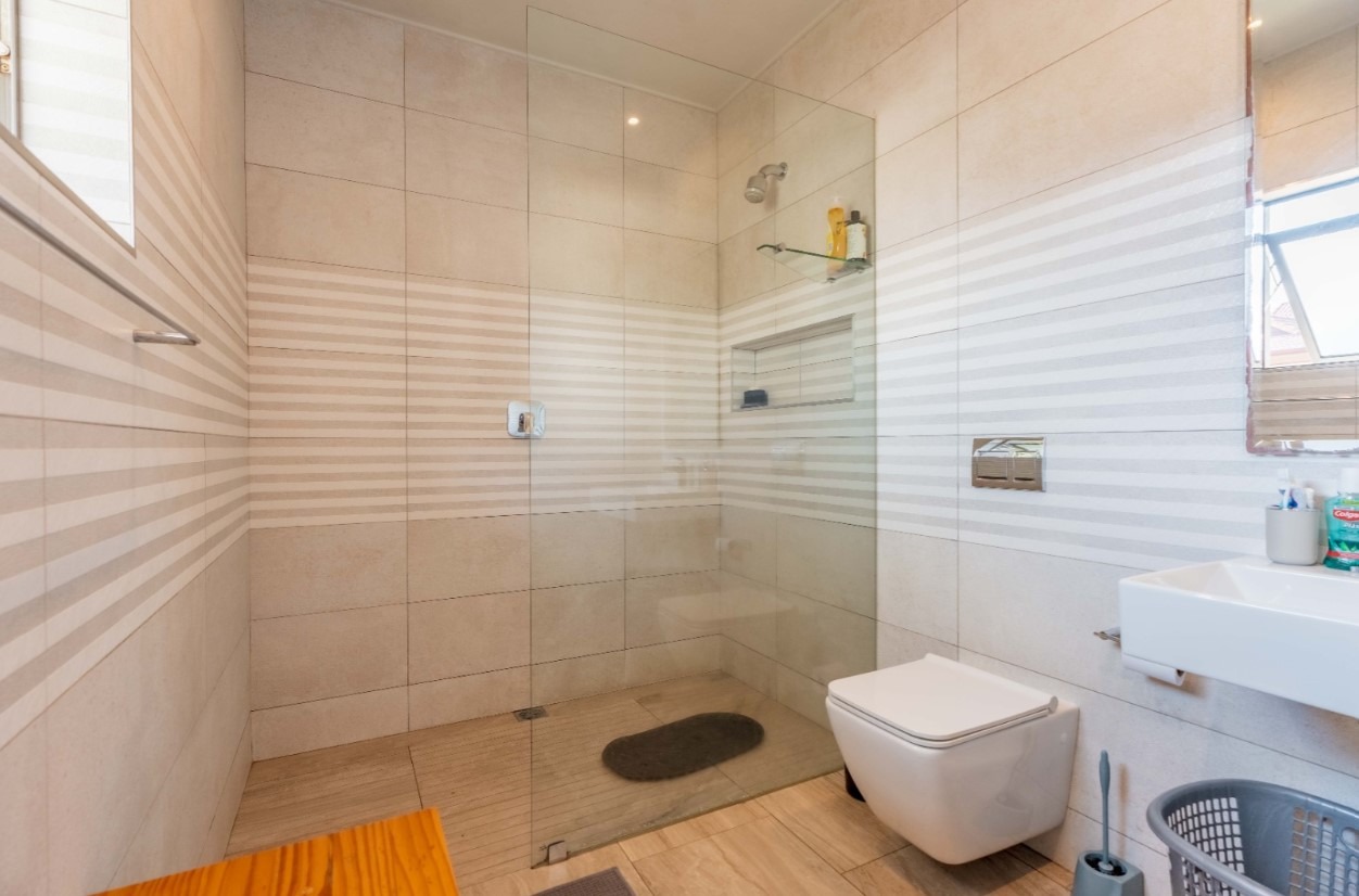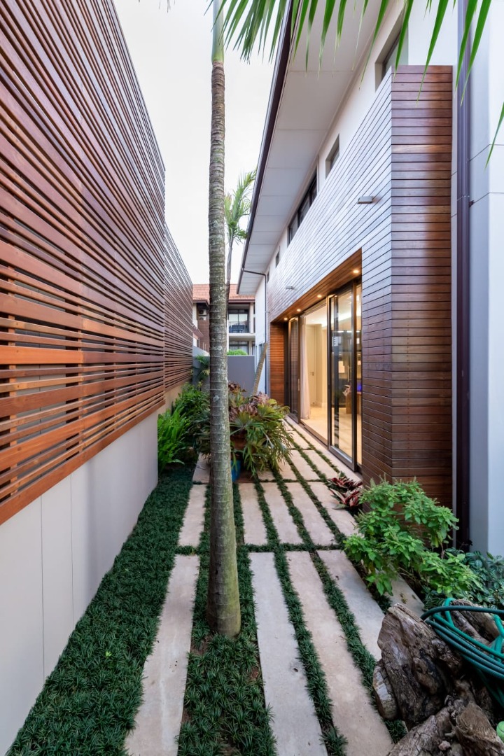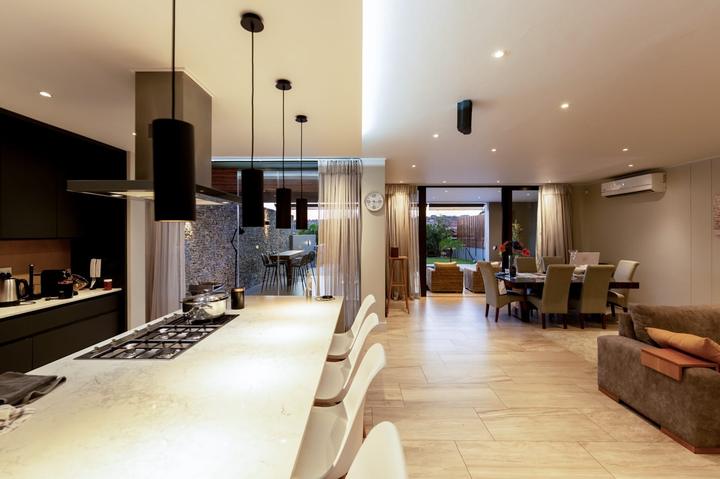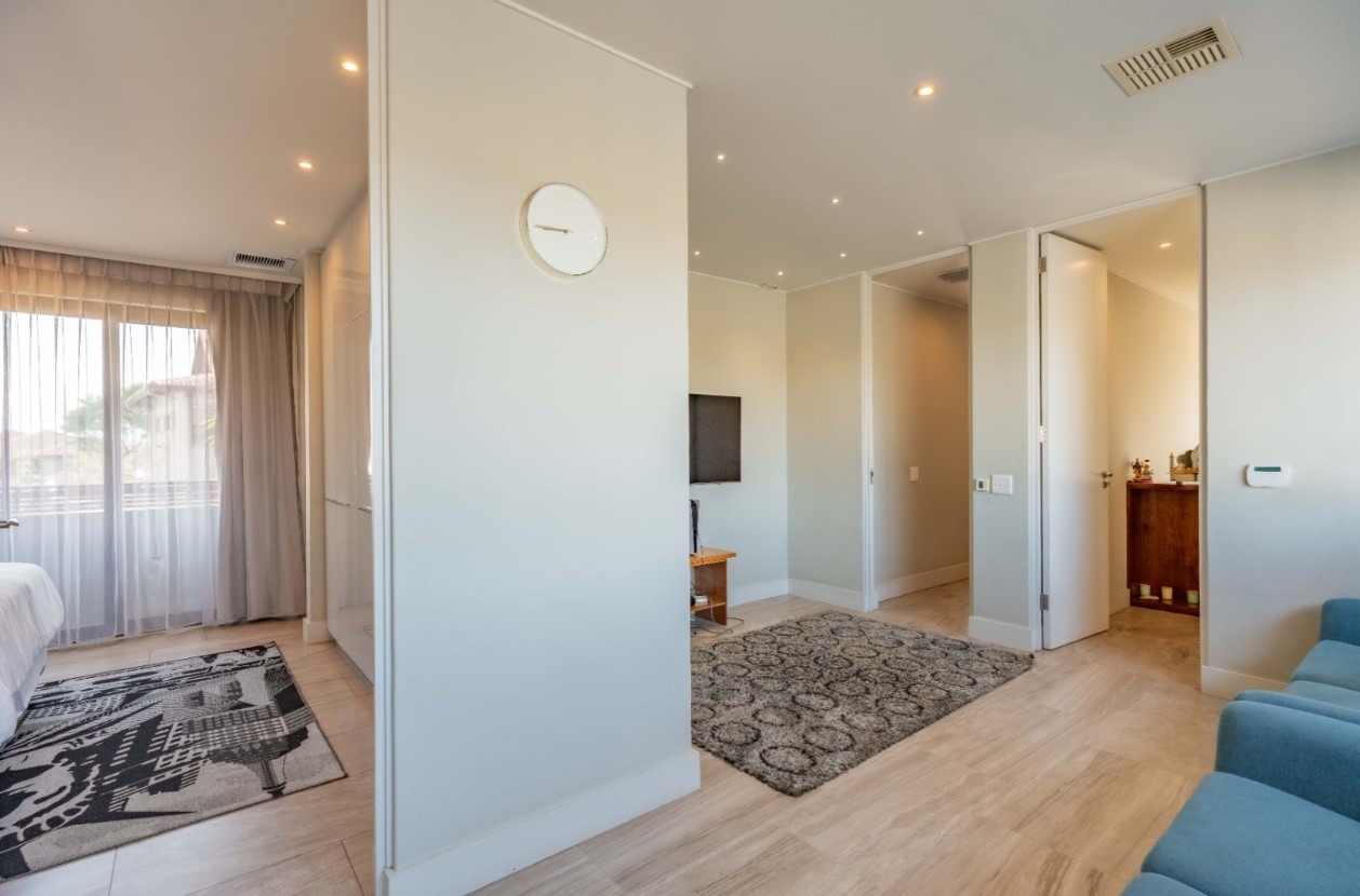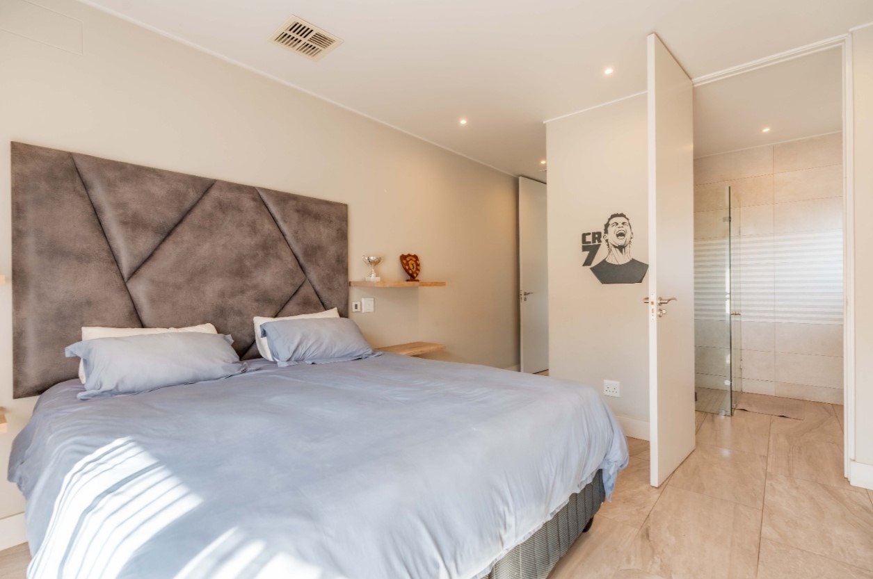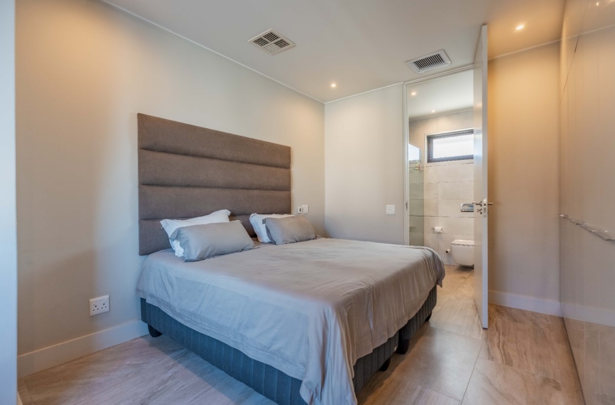 Step into this exquisite modern residence, where an expansive open-plan layout seamlessly integrates the living, dining, and kitchen areas. The contemporary kitchen is a chef's delight, featuring a large island with bar seating, a gas hob, sleek dark cabinetry, and ample space for culinary creativity. Recessed lighting and stylish pendant fixtures illuminate the space, while integrated air conditioning ensures year-round comfort. Large glass doors effortlessly connect the interior to the outdoor entertainment areas, fostering an exceptional indoor-outdoor flow. This sophisticated home boasts four generously sized bedrooms, each accompanied by its own luxurious en-suite bathroom, offering ultimate privacy and convenience. An additional guest toilet caters to visitors, ensuring comfort for all. The design prioritises both functionality and aesthetic appeal, creating serene personal retreats within the home. Experience the epitome of outdoor living with a private swimming pool and a spacious tiled patio, perfect for relaxation and entertaining. A covered veranda provides shaded seating, complemented by an outdoor dining area. The property features a well-maintained garden, a double garage, and four additional parking spaces, catering to all your lifestyle needs. A dedicated study and staff quarters add to the home's practicality. Nestled within the prestigious Izinga Estate in Umhlanga, this suburban property offers a secure and tranquil environment. Residents benefit from an alarm system, access gate, security post, and intercom, ensuring peace of mind. Enjoy scenic views from this desirable location, known for its modern architecture and vibrant community. Key Features: * 4 Bedrooms, 4 Bathrooms (all en-suite) * Open-plan Living, Dining & Modern Kitchen * Private Swimming Pool & Spacious Patio * Double Garage & 4 Additional Parking Bays * Air Conditioning & Intercom System * Study, Pantry & Staff Quarters * Balcony & Garden * Located in Secure Izinga Estate