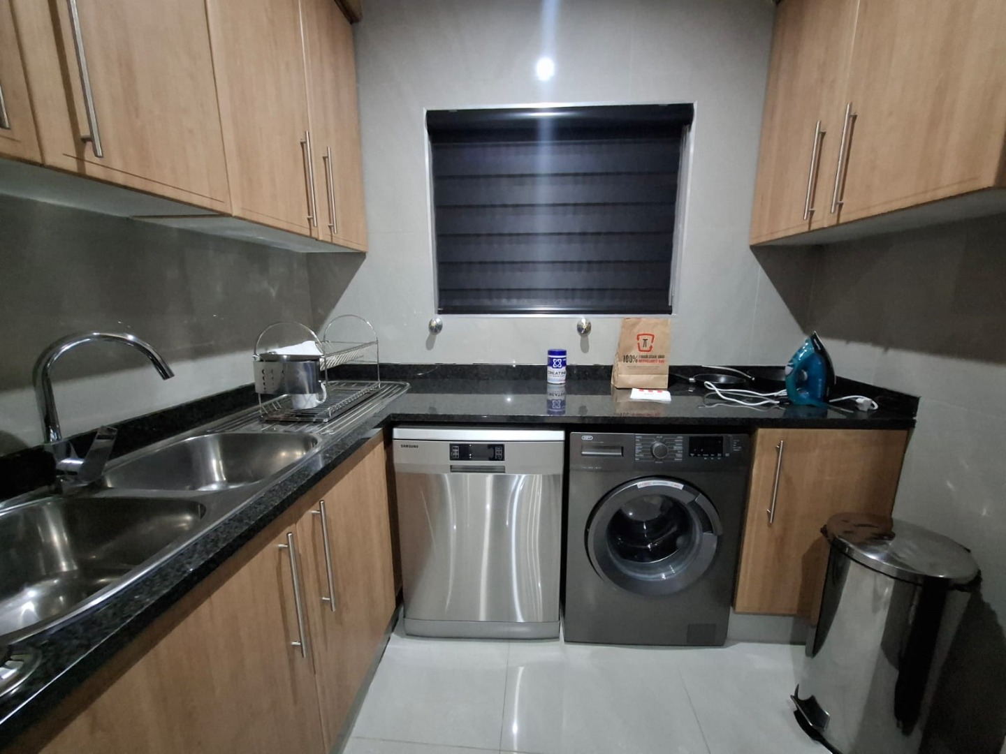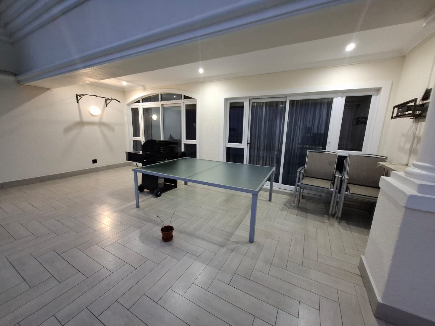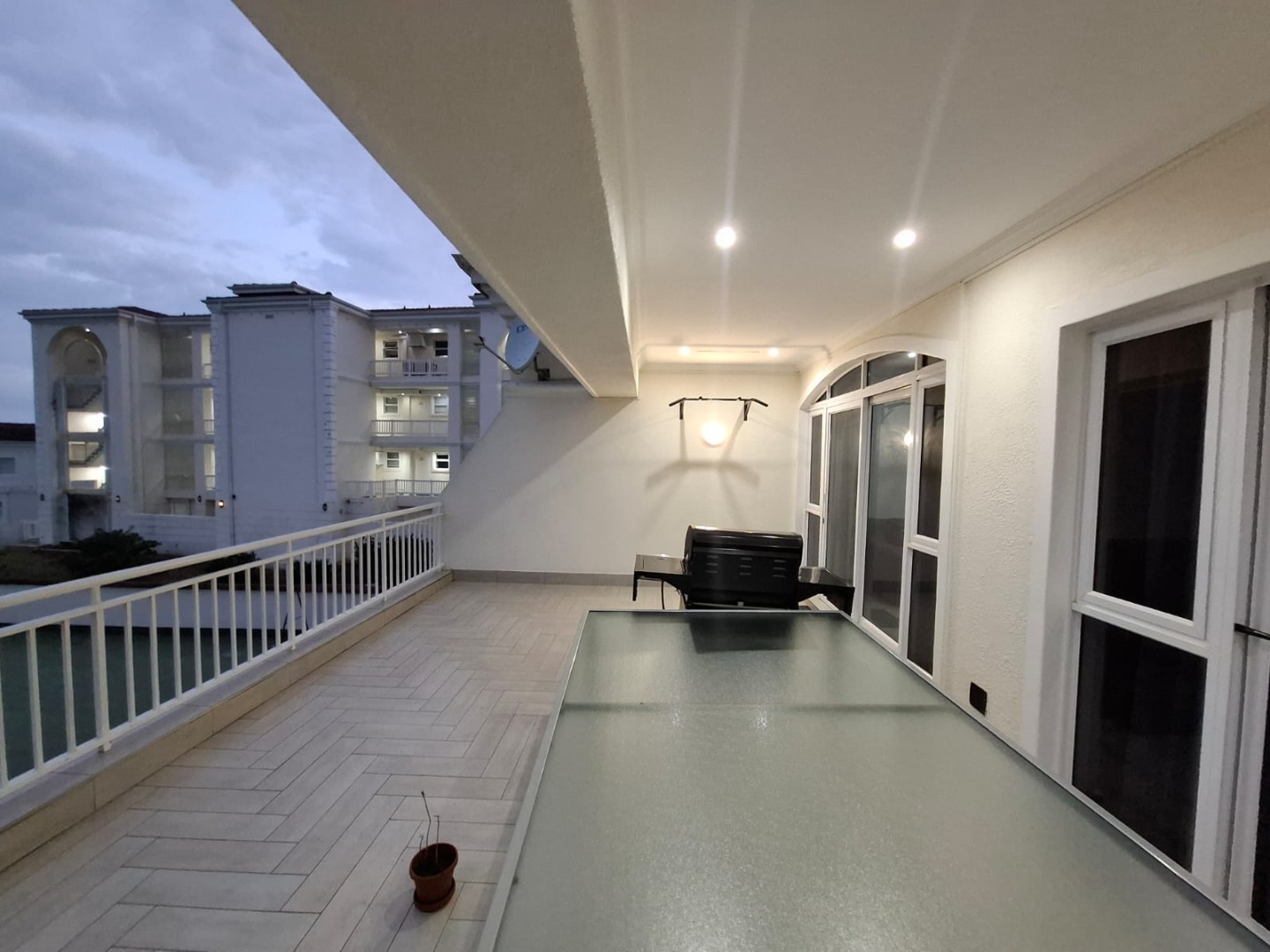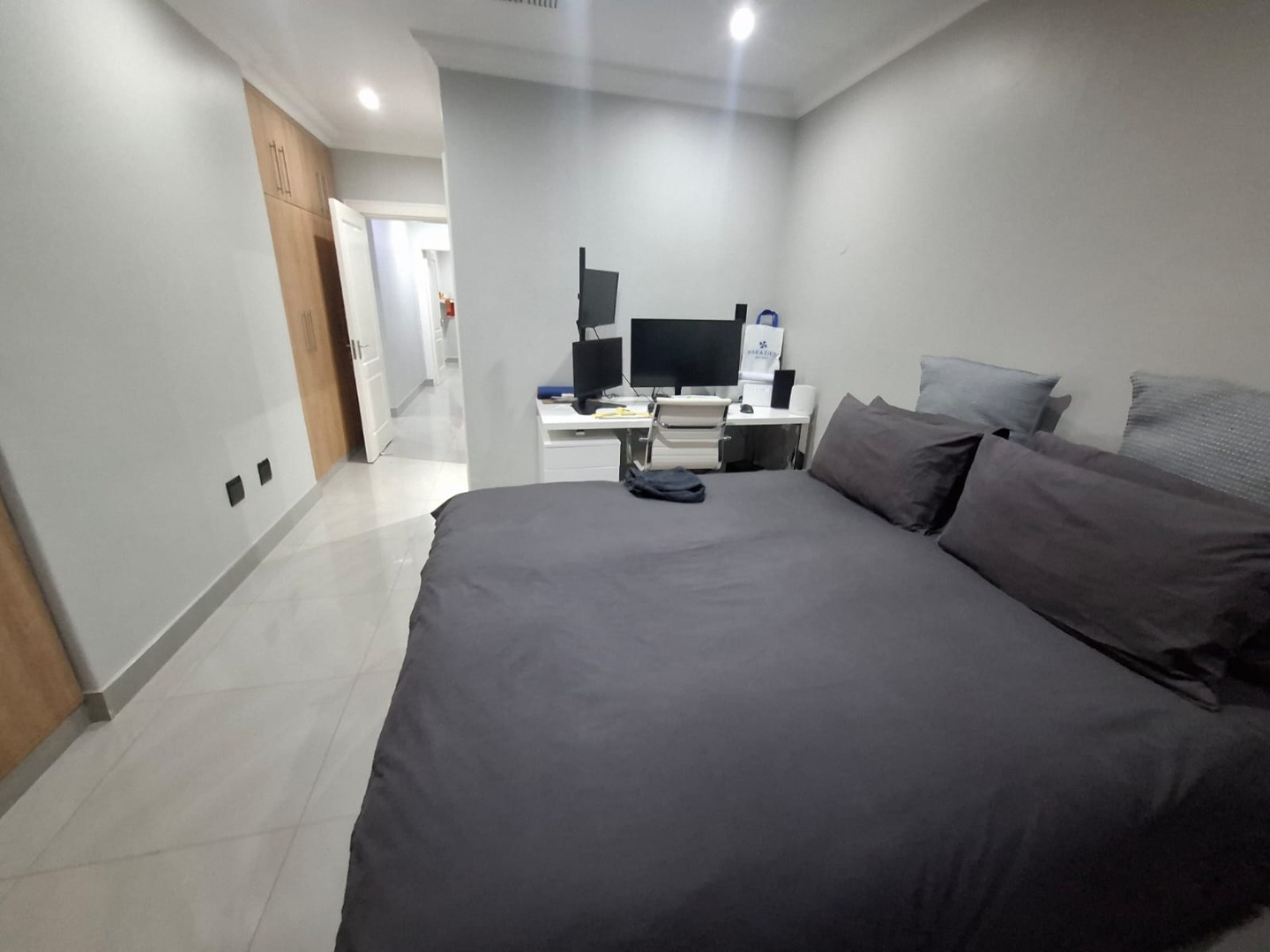 Discover this modern 125 sqm apartment located in a well-maintained complex within the desirable La Lucia Ridge, Umhlanga, South Africa. The complex features striking white architecture, lush tropical landscaping, and paved driveways, creating an inviting first impression. This suburban, gated community offers a secure and convenient lifestyle. Step inside to an elegantly designed open-plan living space, seamlessly integrating the lounge, dining area, and a modern kitchen. Clean tiled flooring and ample recessed lighting enhance the contemporary aesthetic. A prominent stone accent wall behind the television adds sophistication to the living area, which accommodates an L-shaped sectional sofa and a glass-top coffee table. The dining area, with its stylish glass table, flows effortlessly into the kitchen. The modern galley-style kitchen is a highlight, equipped with sleek wooden cabinetry, dark granite countertops, and a full suite of integrated stainless steel appliances, including an oven, hob, extractor, washing machine, and dishwasher. Large sliding glass doors open from the living area onto a spacious, modern balcony with stylish patterned floor tiles. This outdoor space provides a pleasant extension for relaxation, offering scenic and sea views, complete with an outdoor power outlet and recessed lighting. This apartment offers two comfortable bedrooms and two bathrooms, including a guest toilet, ensuring convenience. Two dedicated parking spaces are available. The complex prioritises security with 24-hour security, a security post, access gate, and intercom system, providing peace of mind. Lifts are also available for easy access to all floors. Key Features: * 125 sqm modern apartment * 2 Bedrooms, 2 Bathrooms, 1 Guest Toilet * Open-plan living, dining, and kitchen * Modern kitchen with integrated appliances * Spacious balcony with scenic and sea views * Two dedicated parking bays * 24-hour security, access gate, intercom * Lifts for convenient access * Located in a secure, gated complex