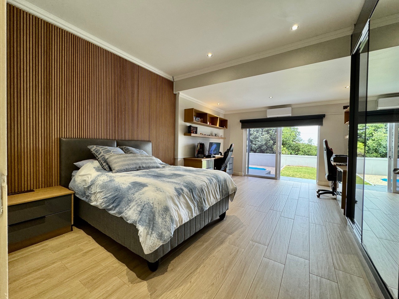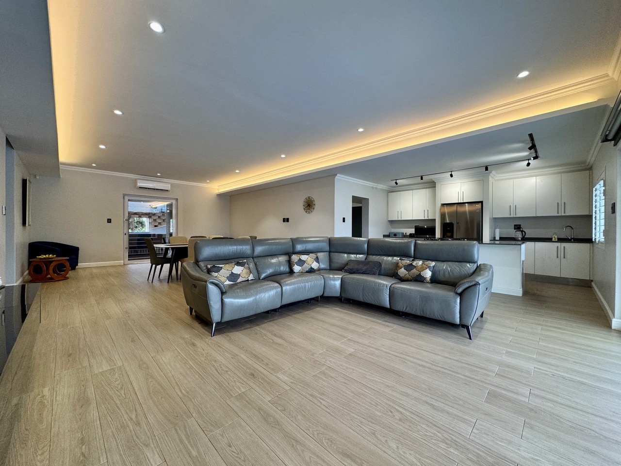 Additional features include air conditioners throughout the home, double garage, staff accommodation, and electronic blinds throughout the home.