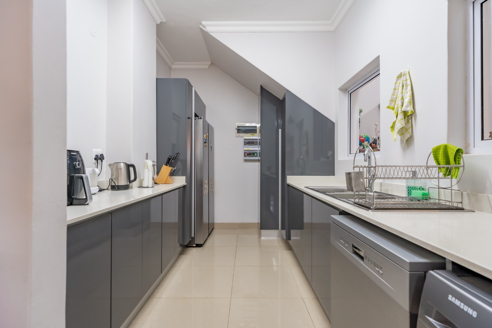 The heart of this home is its modern kitchen, complete with a large island, bar seating, and sleek stainless steel appliances. Throughout, you'll find clean tiled flooring, stylish lighting, and air conditioning for year-round comfort. With three comfortable bedrooms and four bathrooms, including three en-suites, there's plenty of space and privacy for everyone. Plus, there's a dedicated study for work or hobbies and a cozy family TV room.