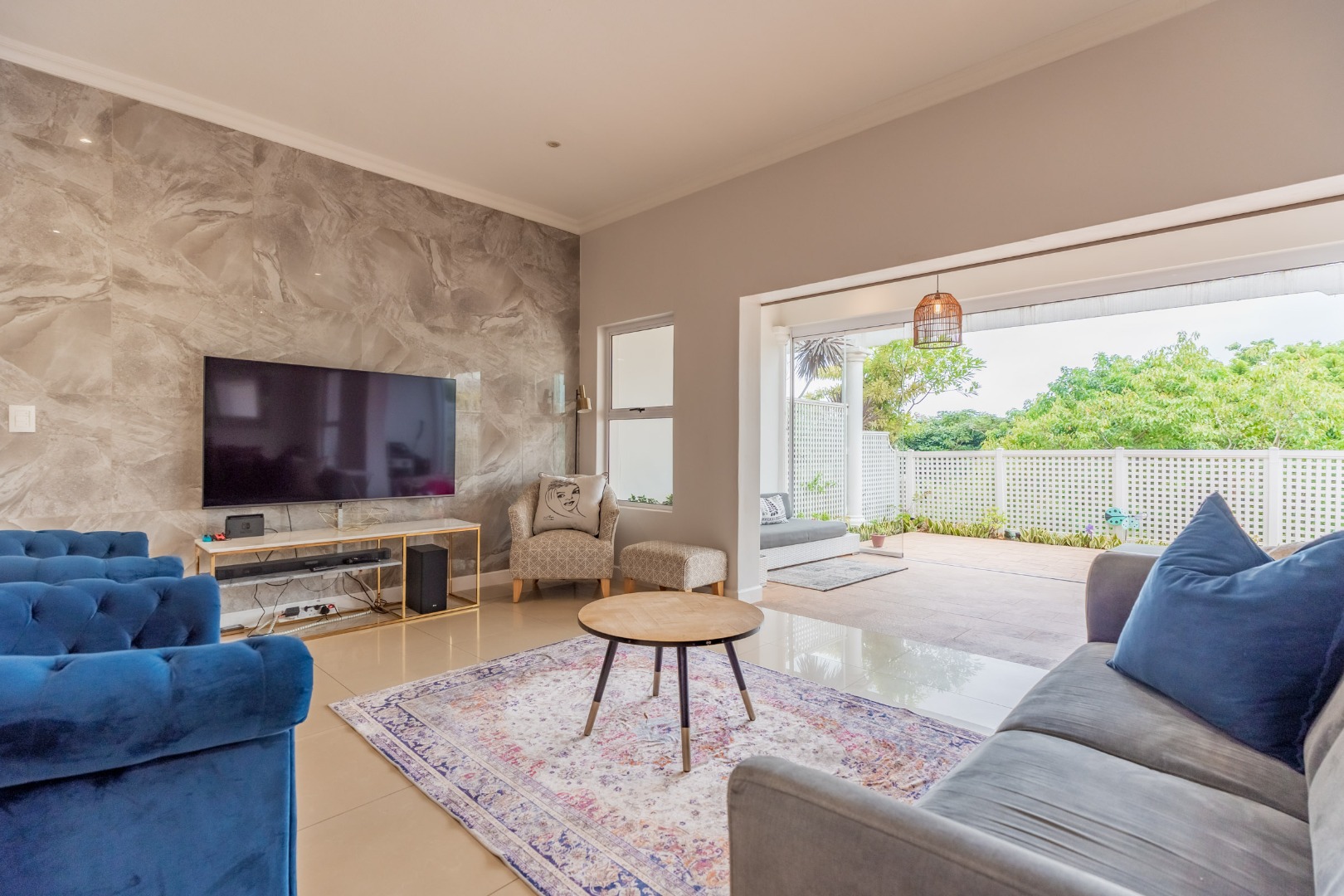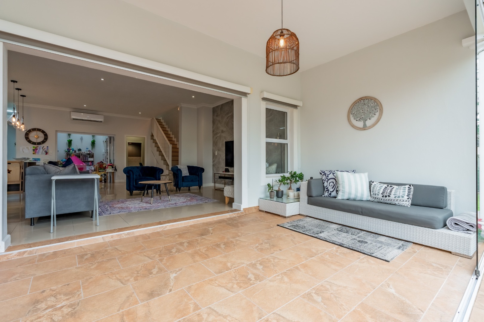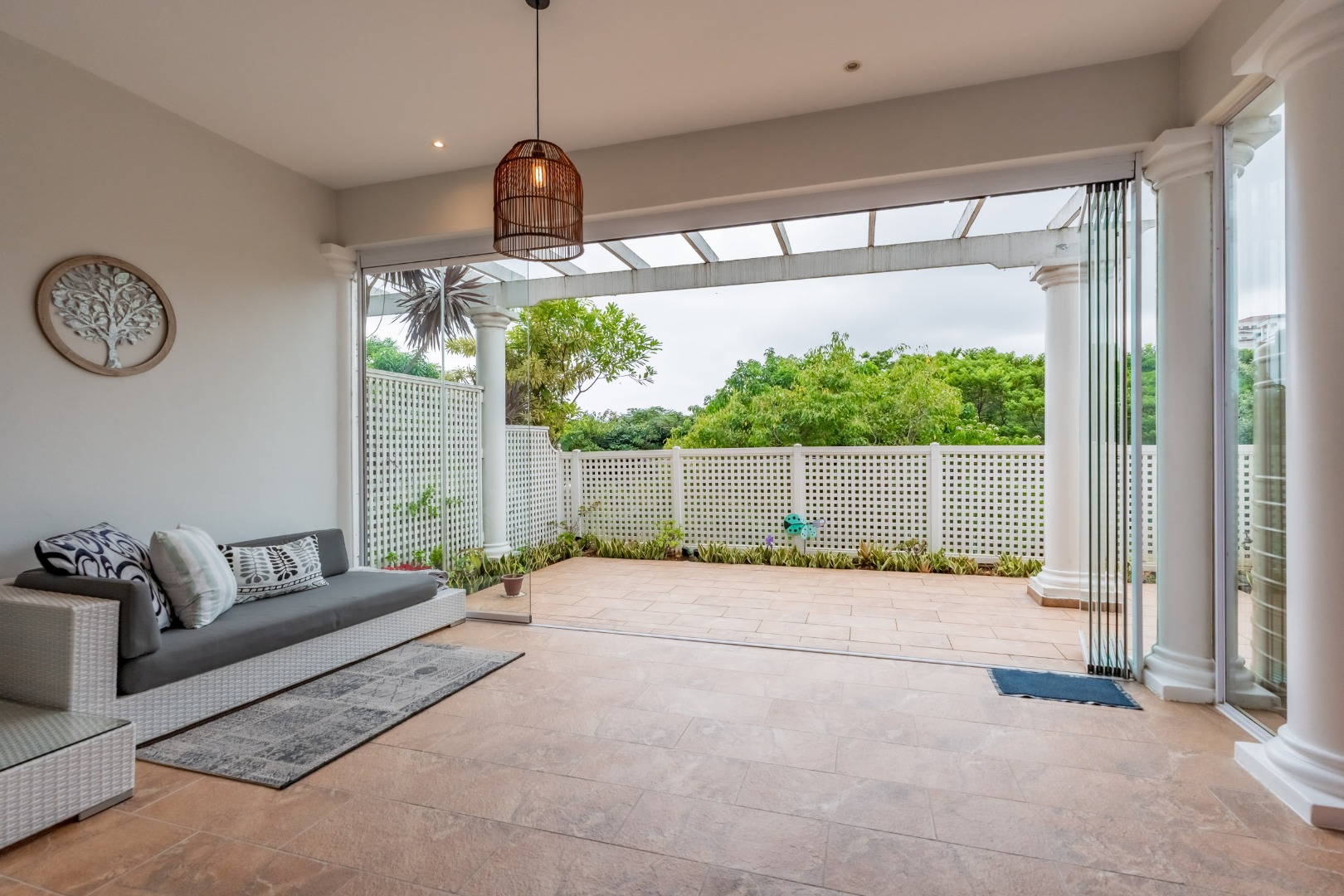 Welcome to this charming home in La Lucia, Umhlanga, where classic Mediterranean-style architecture meets modern comfort. You'll love the inviting cream-colored exteriors and terracotta roofs, giving it a lovely resort-like feel. Step inside to a spacious, open-plan layout that seamlessly connects the living, dining, and kitchen areas. Large sliding glass doors fill the space with natural light and lead to your private outdoor spots, perfect for relaxing or entertaining.