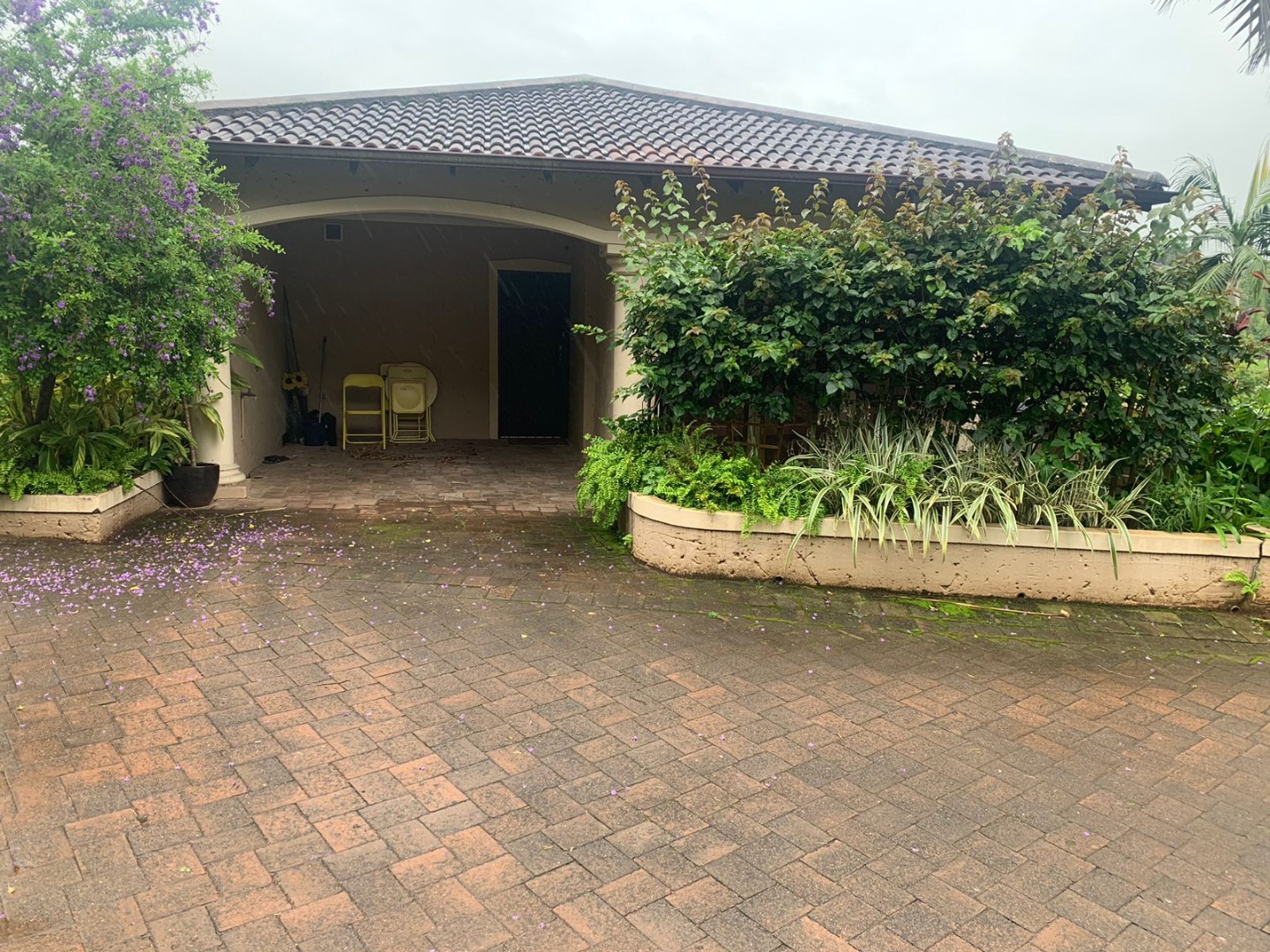 Step into your own slice of paradise in La Lucia! This charming Mediterranean-style home immediately welcomes you with its striking arched entrance, robust columns, and a large, paved driveway leading to an integrated double garage. Surrounded by lush, tropical landscaping and mature palm trees, the curb appeal is simply fantastic, setting the scene for a relaxed lifestyle.