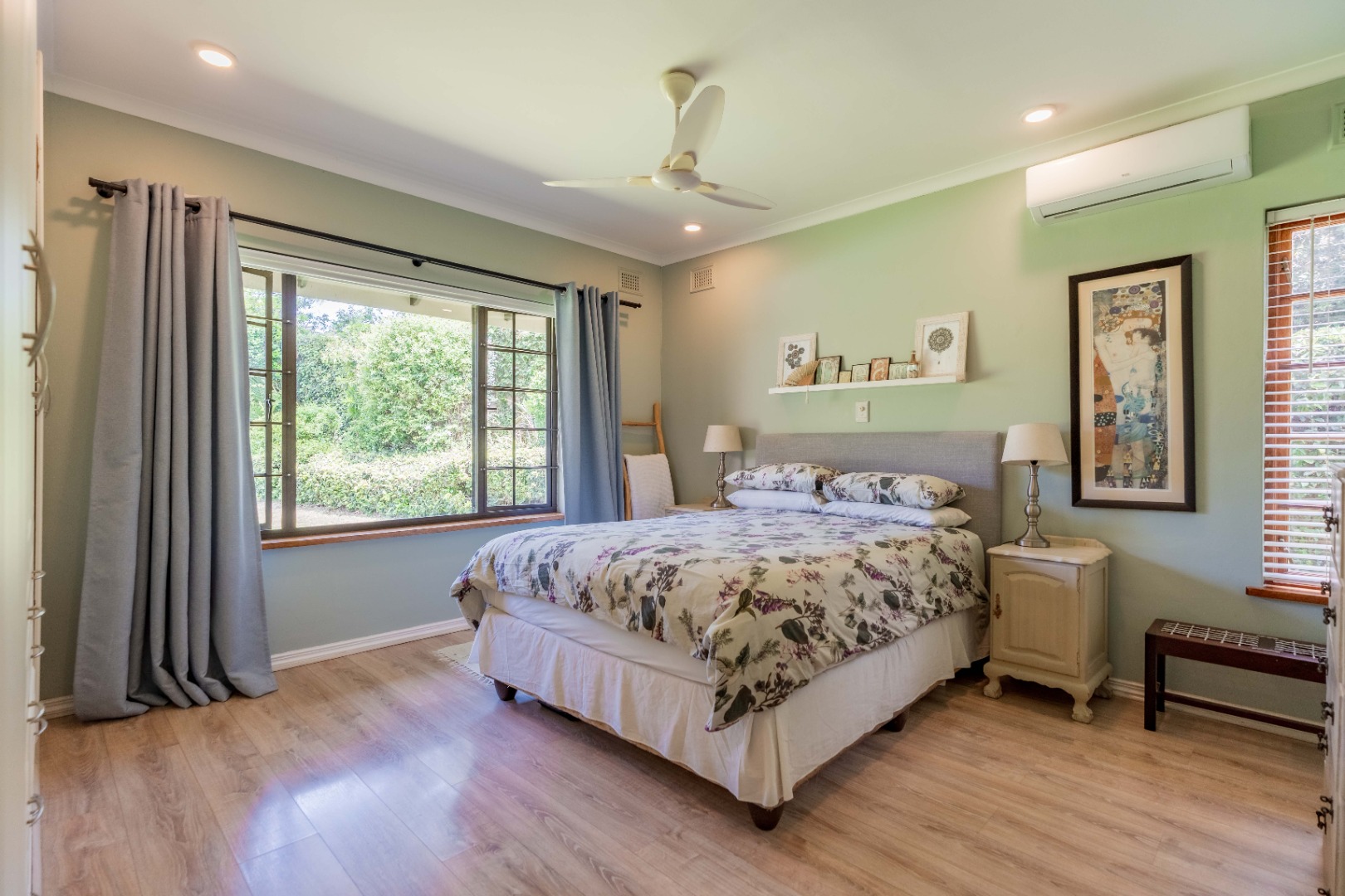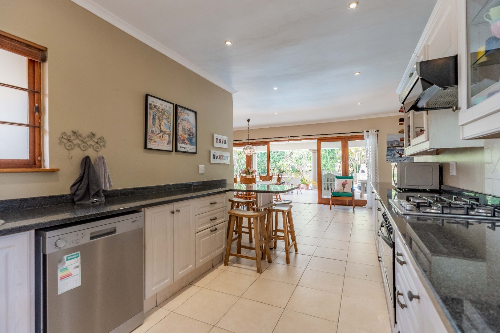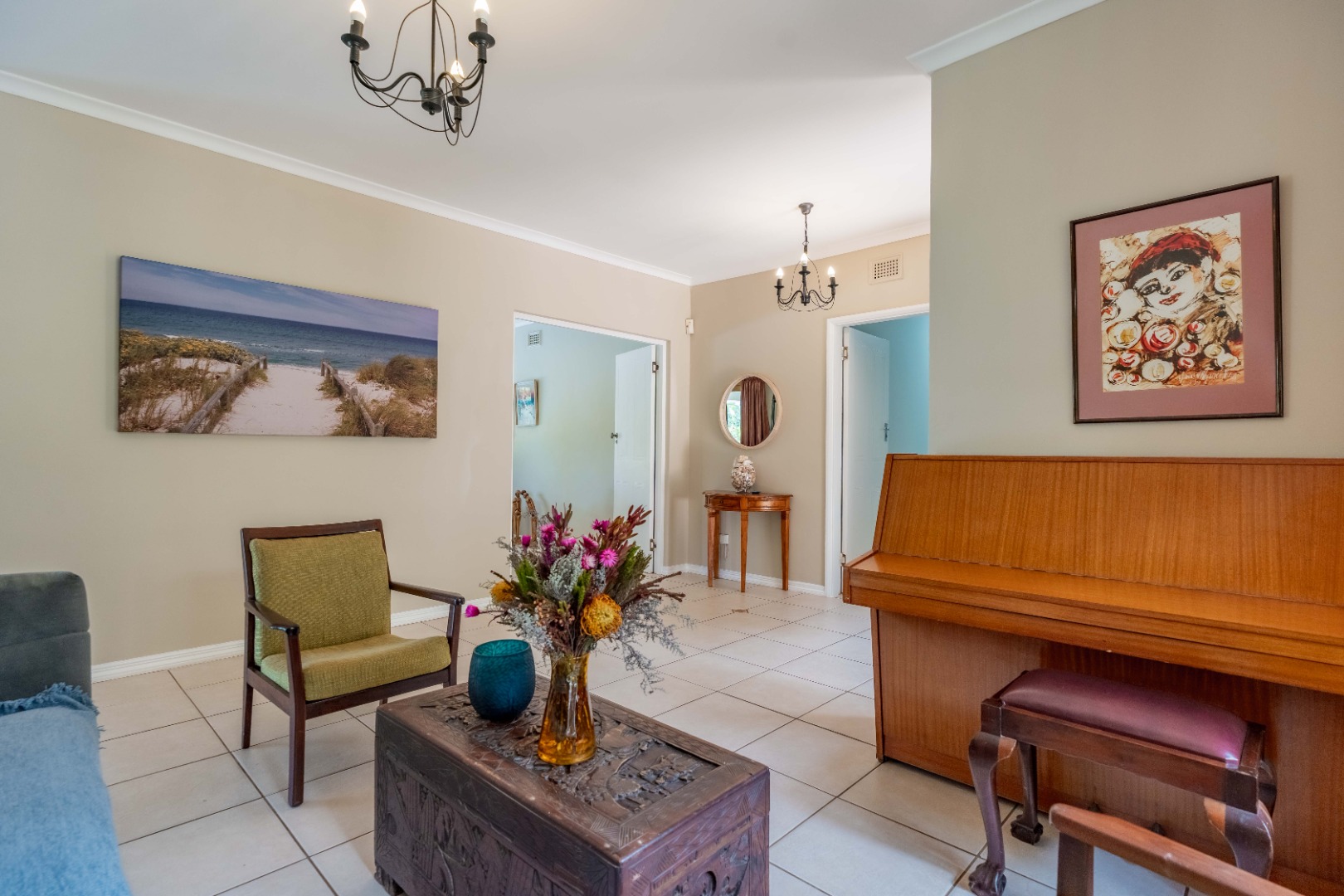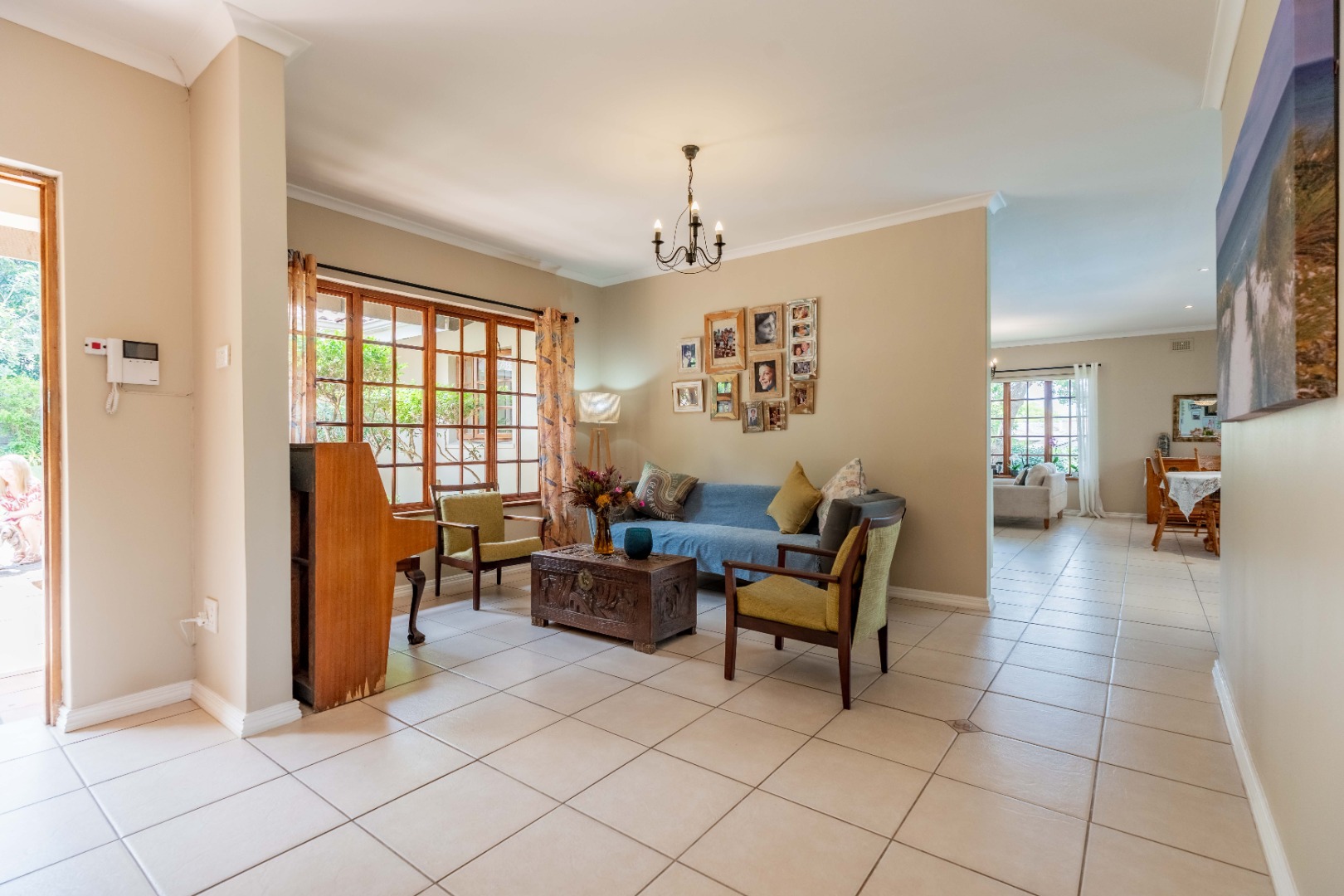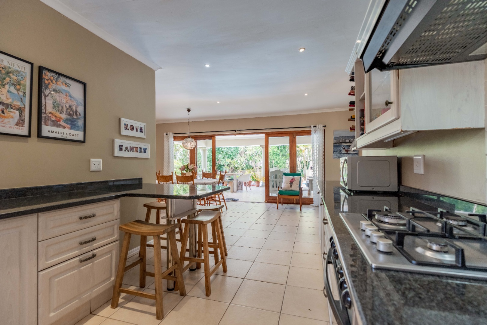 Step outside to a private garden with a sparkling swimming pool, built-in braai, and pizza oven—an entertainer’s delight. The home also offers staff quarters, a double garage, plus additional secure parking for up to six vehicles.