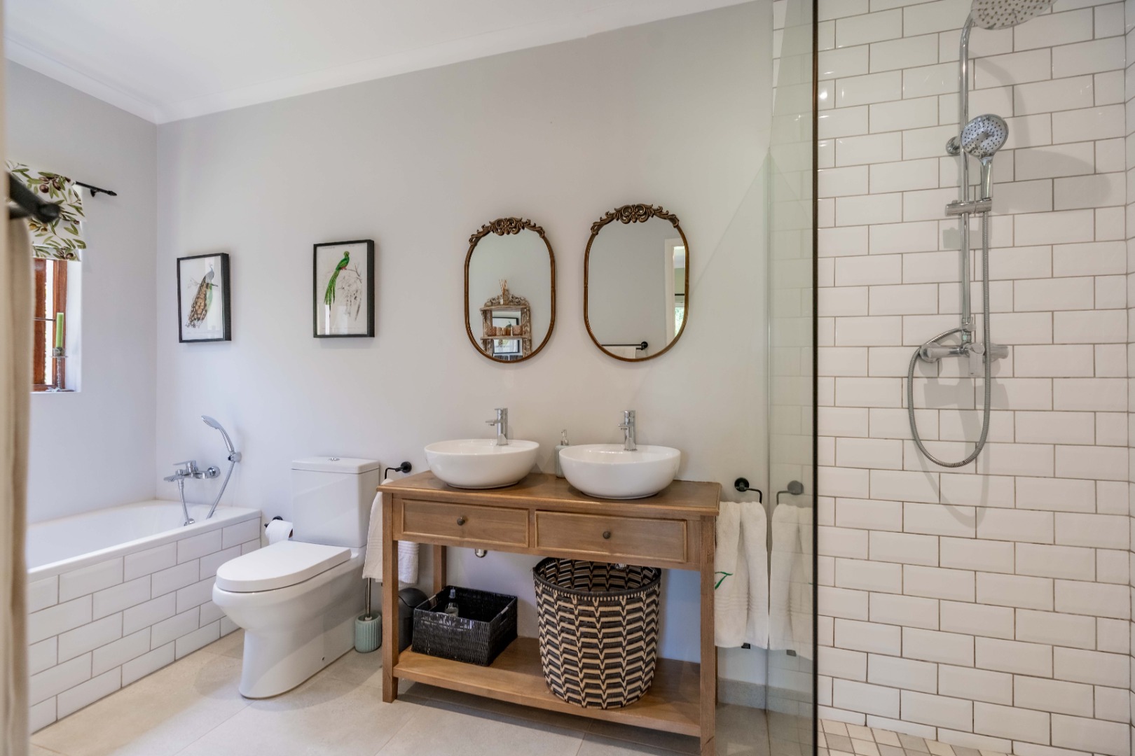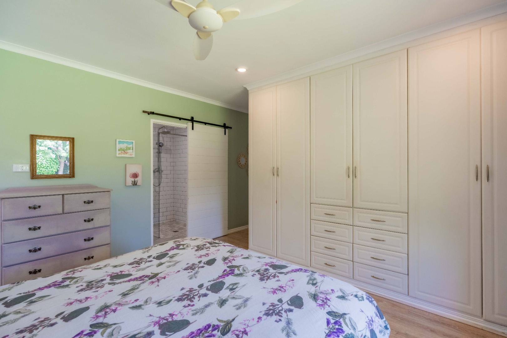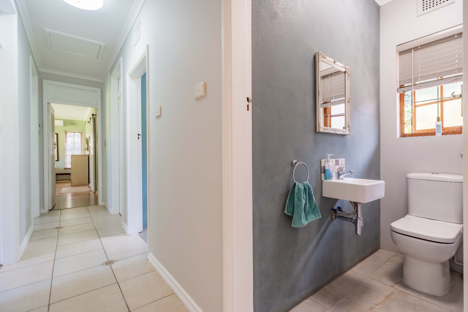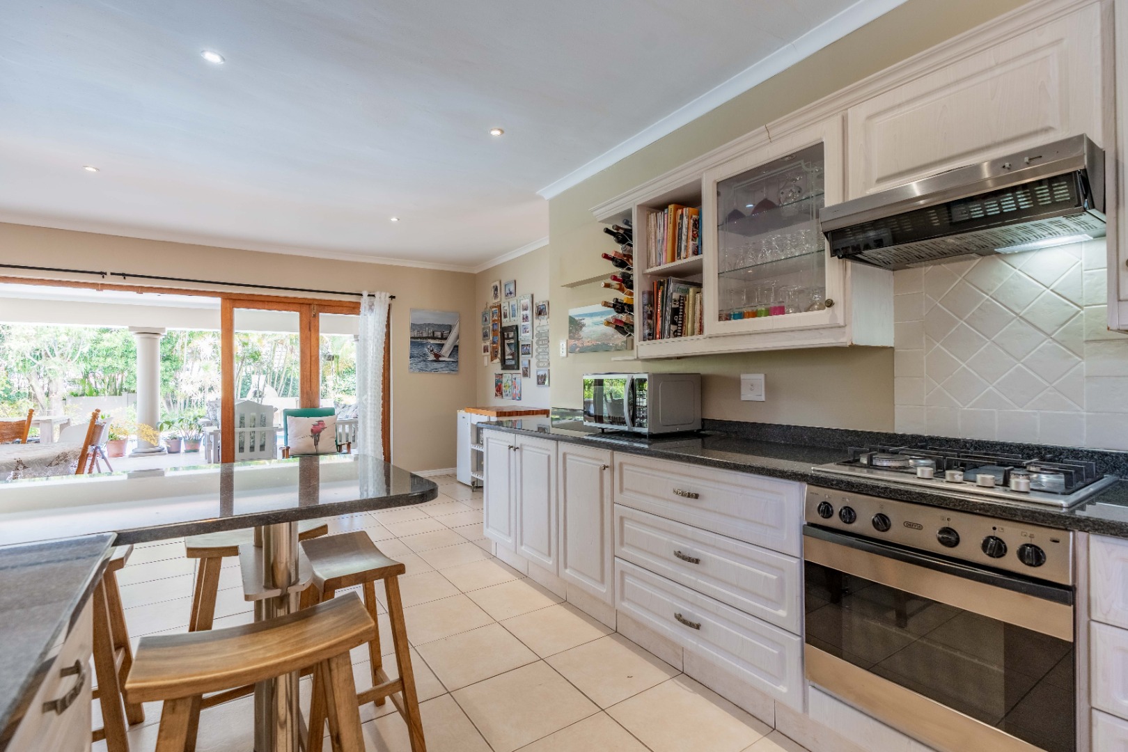 Step outside to a private garden with a sparkling swimming pool, built-in braai, and pizza oven—an entertainer’s delight. The home also offers staff quarters, a double garage, plus additional secure parking for up to six vehicles.