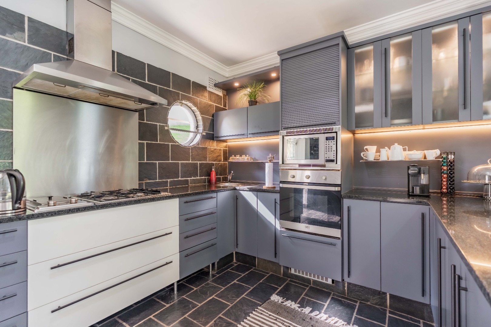 The home is fully secured with an alarm system, beams, and electric fencing, offering peace of mind.