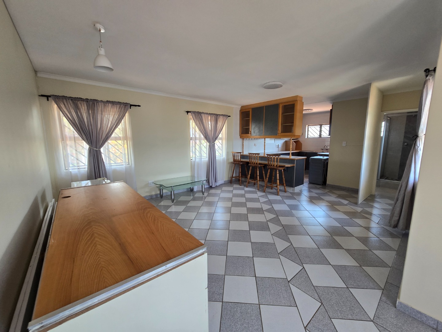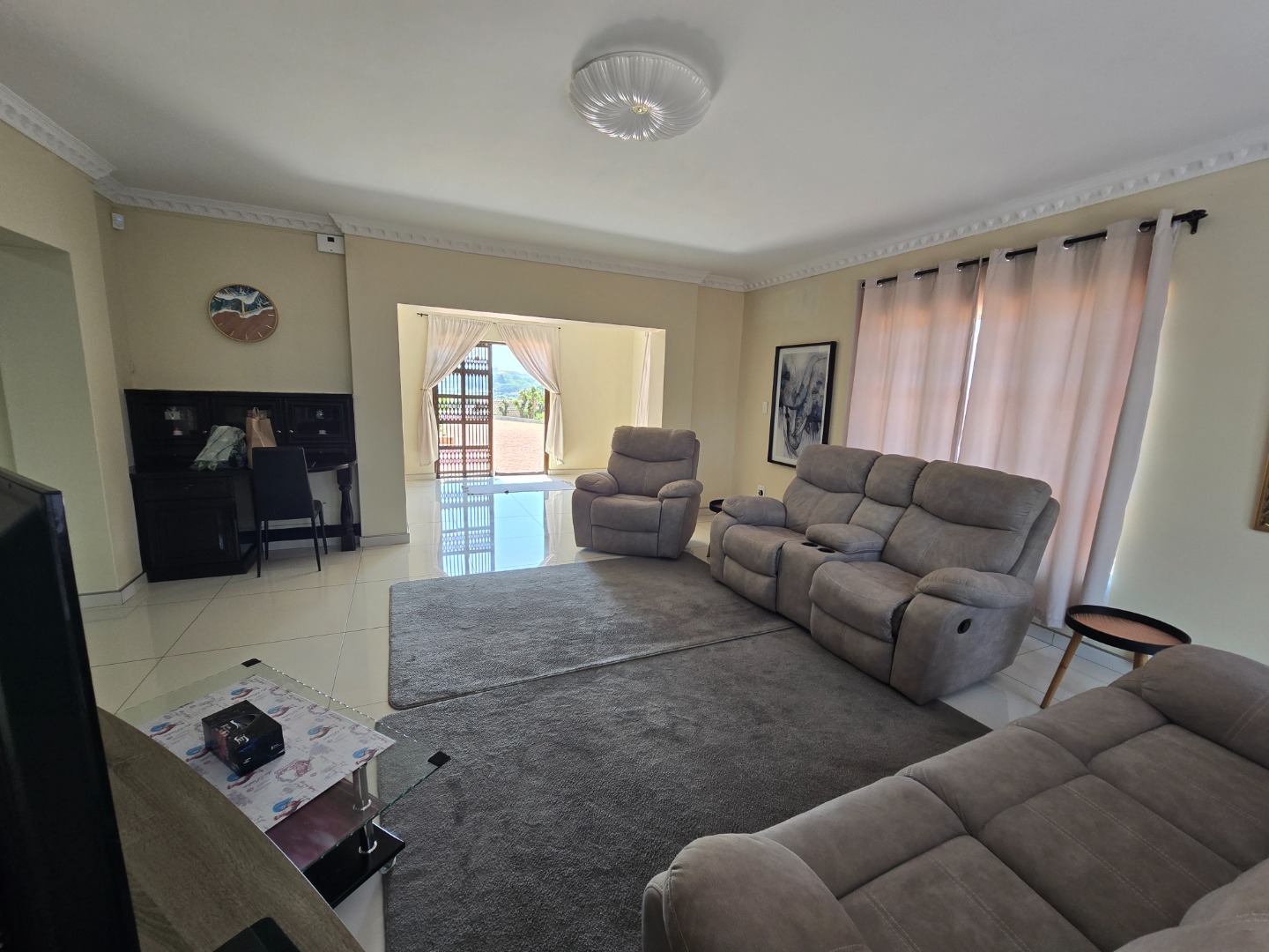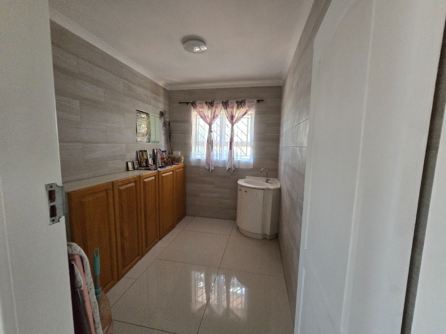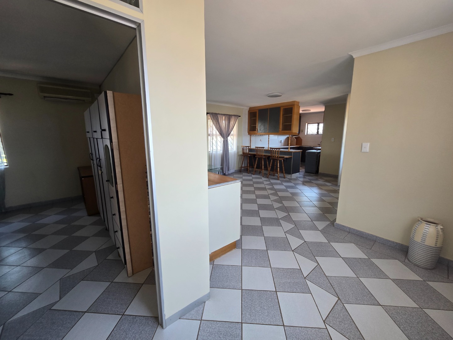 Outdoor living is enhanced by multiple balcony spaces. The expansive 1360 sqm erf includes an extensive paved driveway with some covered parking for vehicles, complemented by two garages. Practical amenities such as staff quarters and additional storage further enhance this versatile, pet-friendly property.