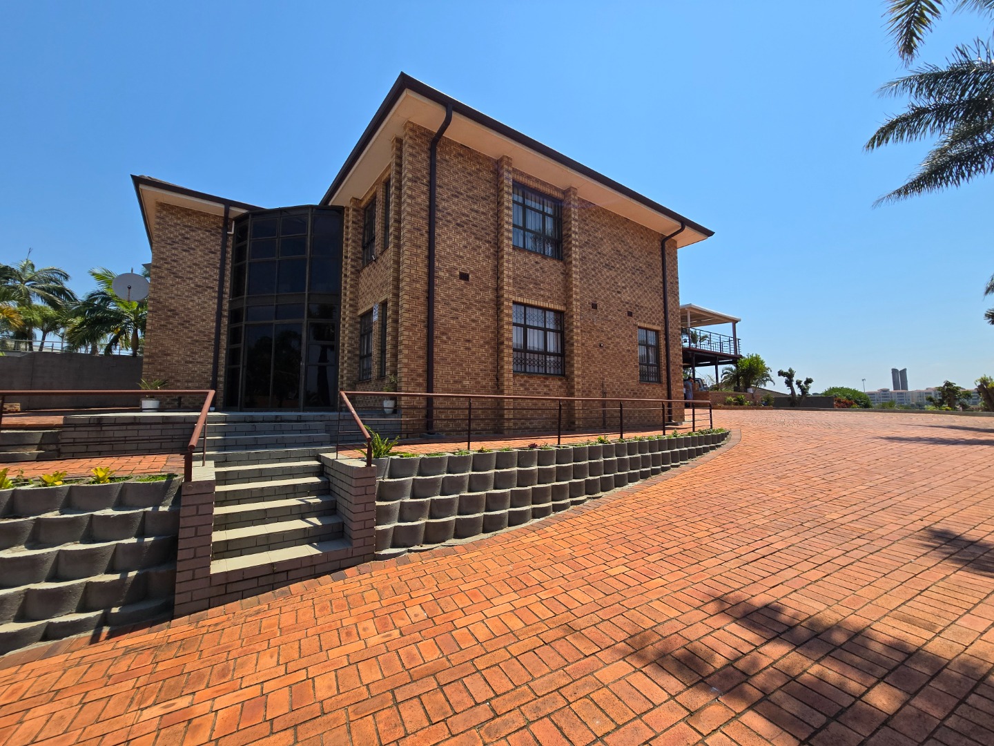 Discover this residential property in the sought-after coastal suburb of La Lucia, Umhlanga. Boasting a striking brick and glass architectural design, the home presents with its extensive patterned brick driveway, terraced landscaping, and mature palm trees. Enjoy the allure of coastal living with a desirable sea view.
