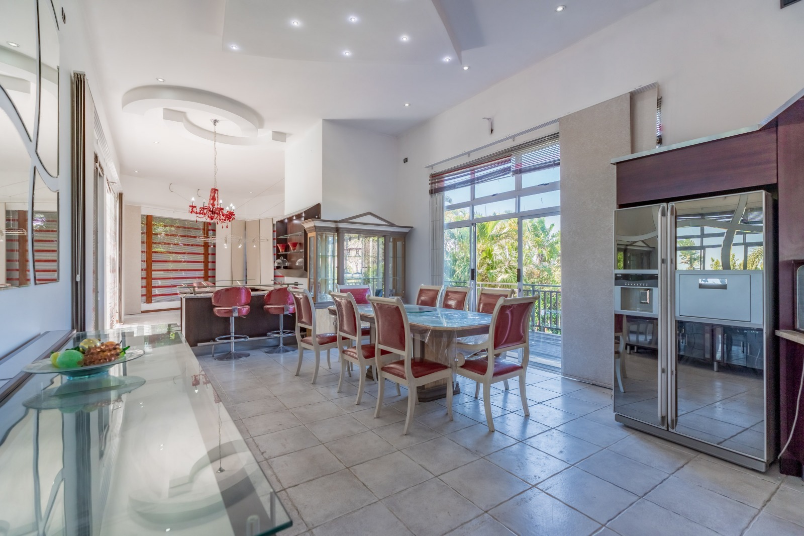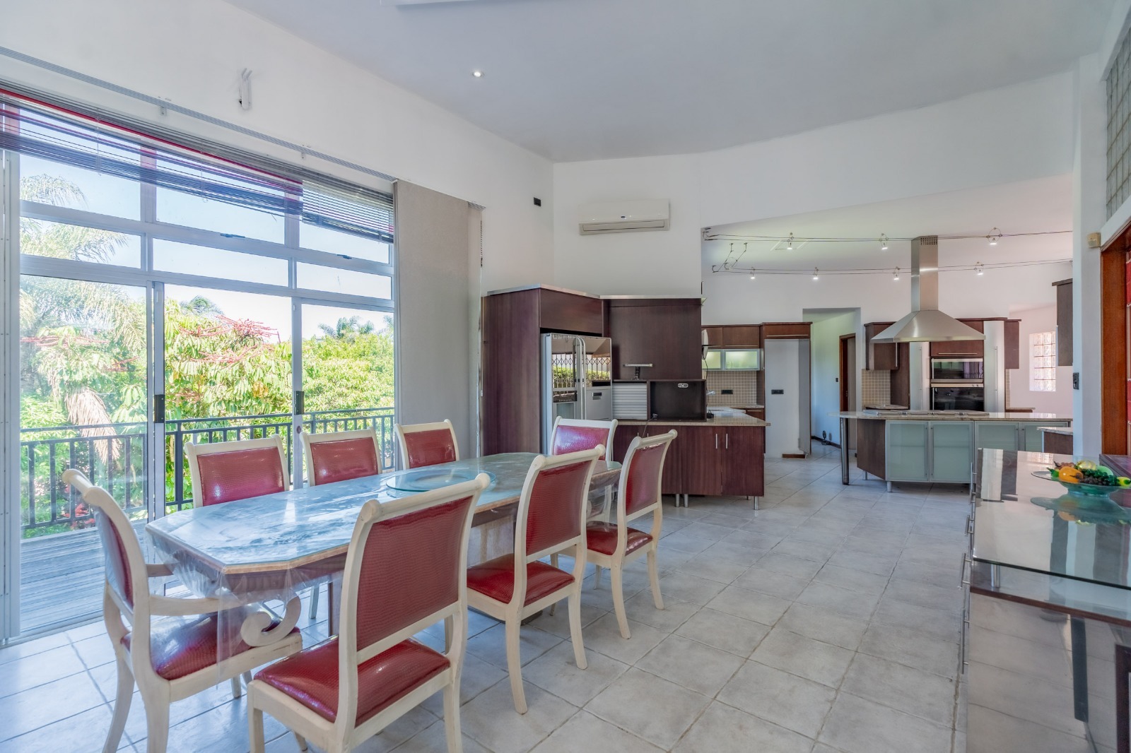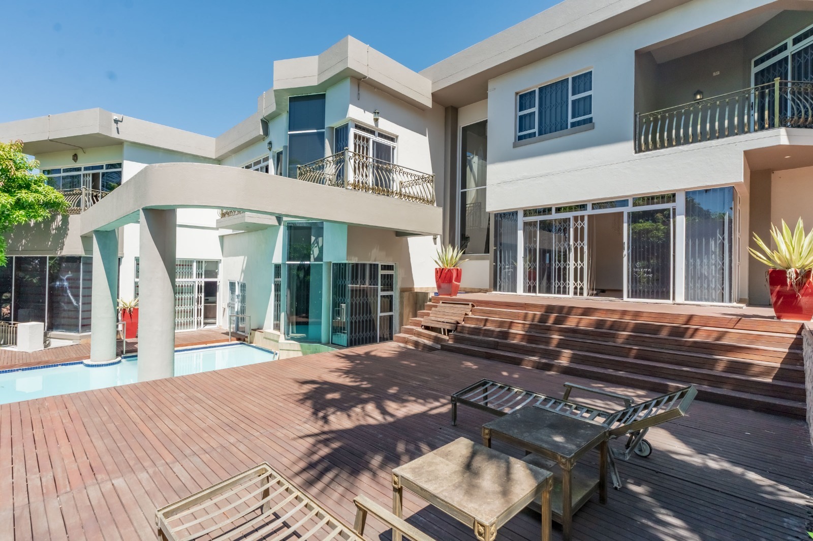 Discover an exceptional residential offering in the sought-after suburban enclave of La Lucia, Umhlanga. This expansive property, set on a generous 2370 sqm erf, presents a harmonious blend of comfort and sophisticated living, ideal for a discerning family seeking space and privacy. The interior boasts a well-appointed layout featuring six spacious bedrooms, each complemented by its own en-suite bathroom, alongside an additional guest toilet for convenience. Three distinct lounges provide ample relaxation and entertainment zones, complemented by a dedicated dining room, a family TV room, and a private study. The property is offered furnished, featuring an open-plan design, a built-in bar, air conditioning throughout, and elegant special lighting, all enhanced by seamless access to the outdoors via sliding doors.