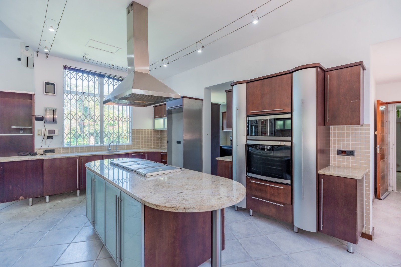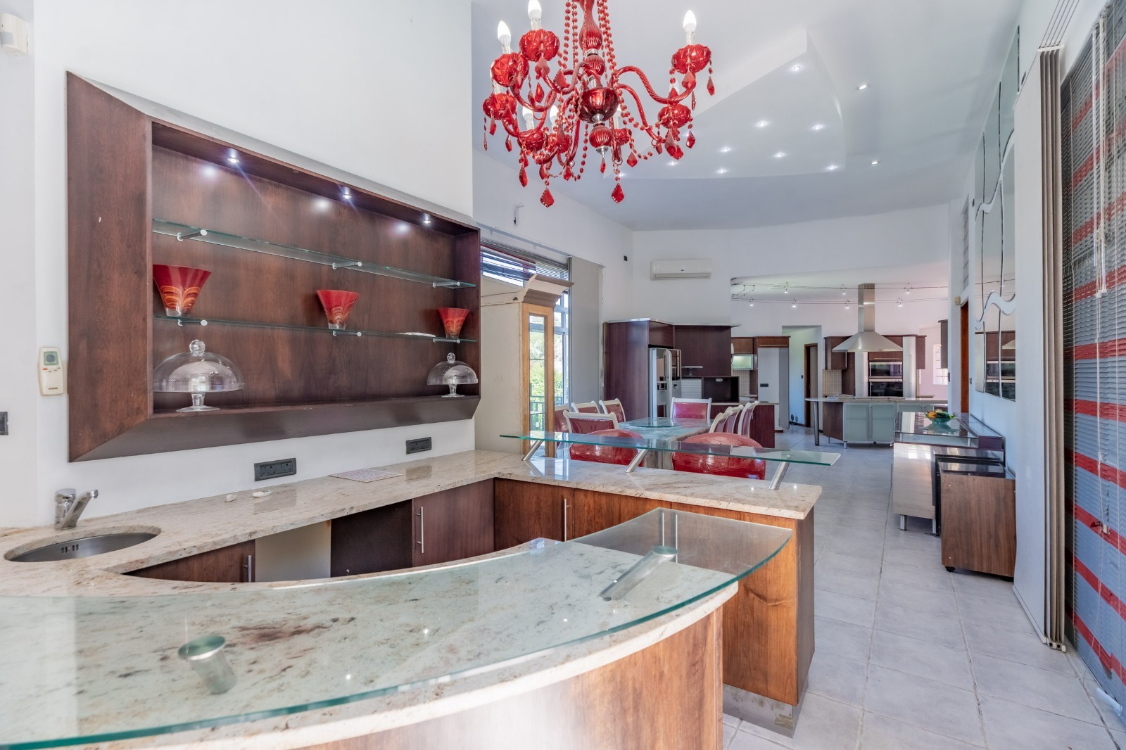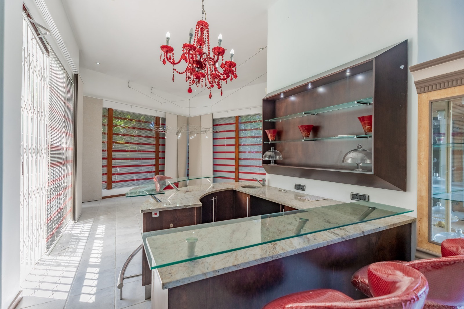 Discover an exceptional residential offering in the sought-after suburban enclave of La Lucia, Umhlanga. This expansive property, set on a generous 2370 sqm erf, presents a harmonious blend of comfort and sophisticated living, ideal for a discerning family seeking space and privacy. The interior boasts a well-appointed layout featuring six spacious bedrooms, each complemented by its own en-suite bathroom, alongside an additional guest toilet for convenience. Three distinct lounges provide ample relaxation and entertainment zones, complemented by a dedicated dining room, a family TV room, and a private study. The property is offered furnished, featuring an open-plan design, a built-in bar, air conditioning throughout, and elegant special lighting, all enhanced by seamless access to the outdoors via sliding doors.