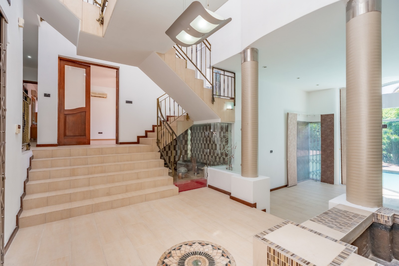 Security is paramount, with features such as a perimeter fence, access gate, alarm system, intercom, security gate, and burglar bars, ensuring peace of mind within a totally walled boundary. Sustainability is addressed with water tanks on the property. This La Lucia home offers a rare opportunity to acquire a substantial residence in a prime Umhlanga location, combining luxurious living with comprehensive amenities.