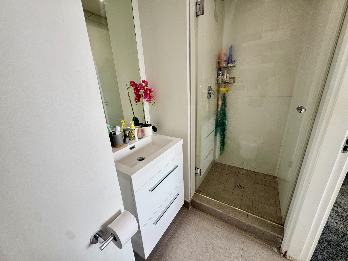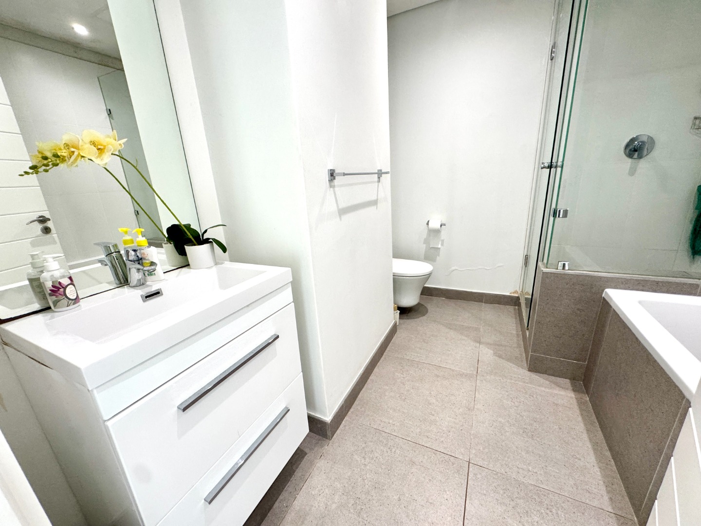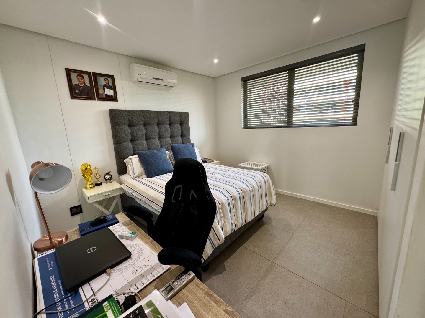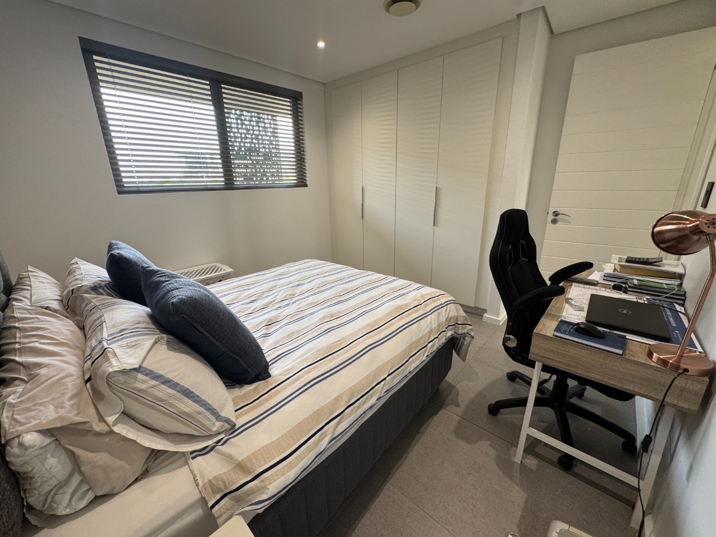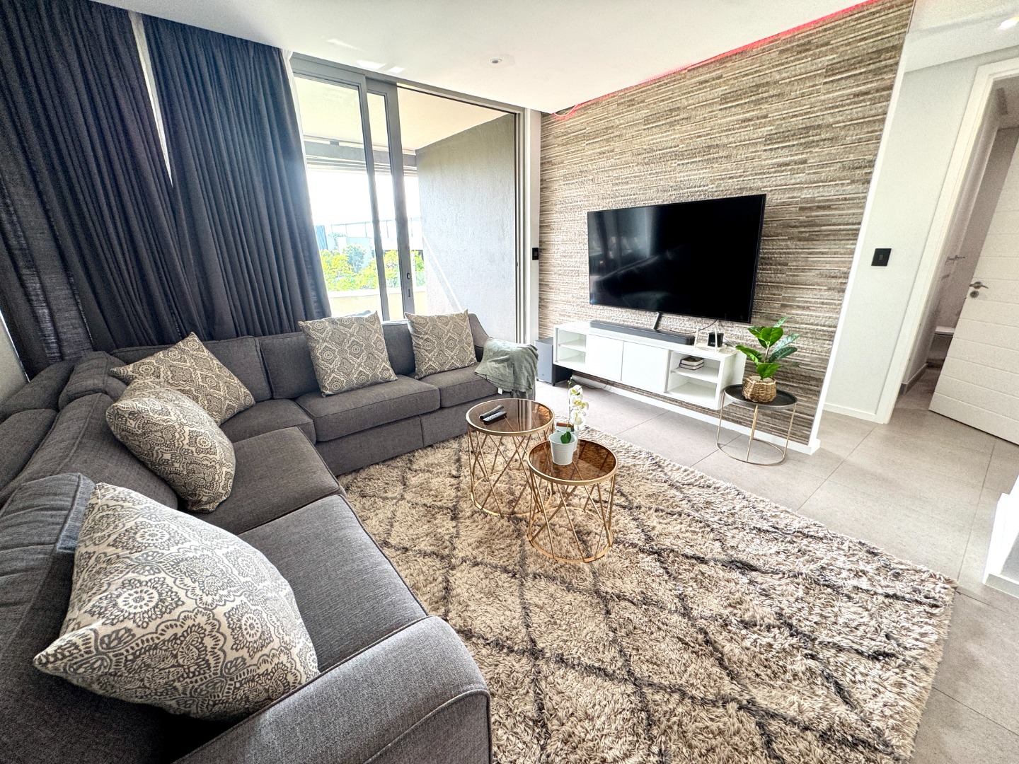 The array of facilities includes a children’s playground and swimming pool plus an expansive rooftop with sea views, braai area, swimming pool and putting green. There is also a gym in the complex.