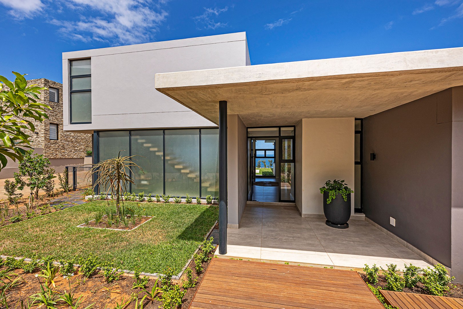 This gorgeous home is perfectly located at the end of a quiet cul-de-sac and has 180 degree sea views. The home has been carefully designed to attract maximum light, with an easy living design. Access is via a covered portico or direct access into the home from the double garage. There is space in front of the home for an additional three parkings.