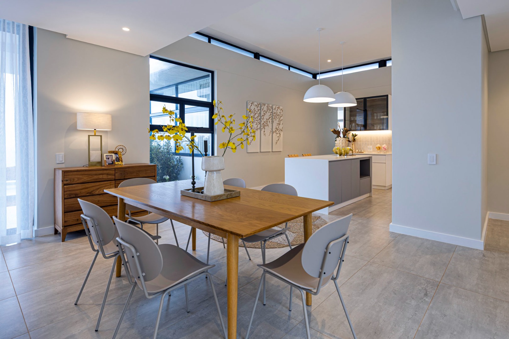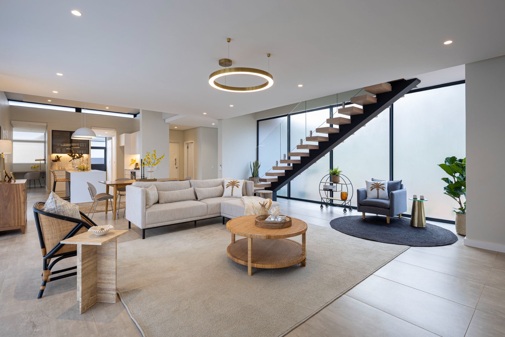 This gorgeous home is perfectly located at the end of a quiet cul-de-sac and has 180 degree sea views. The home has been carefully designed to attract maximum light, with an easy living design. Access is via a covered portico or direct access into the home from the double garage. There is space in front of the home for an additional three parkings.