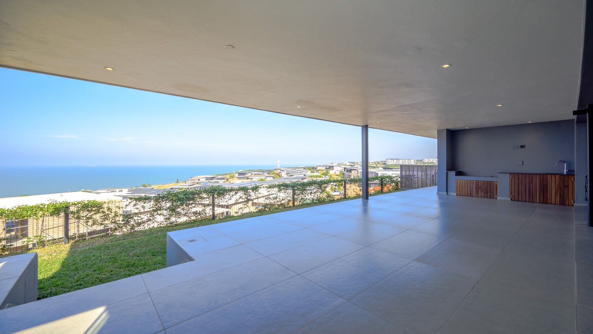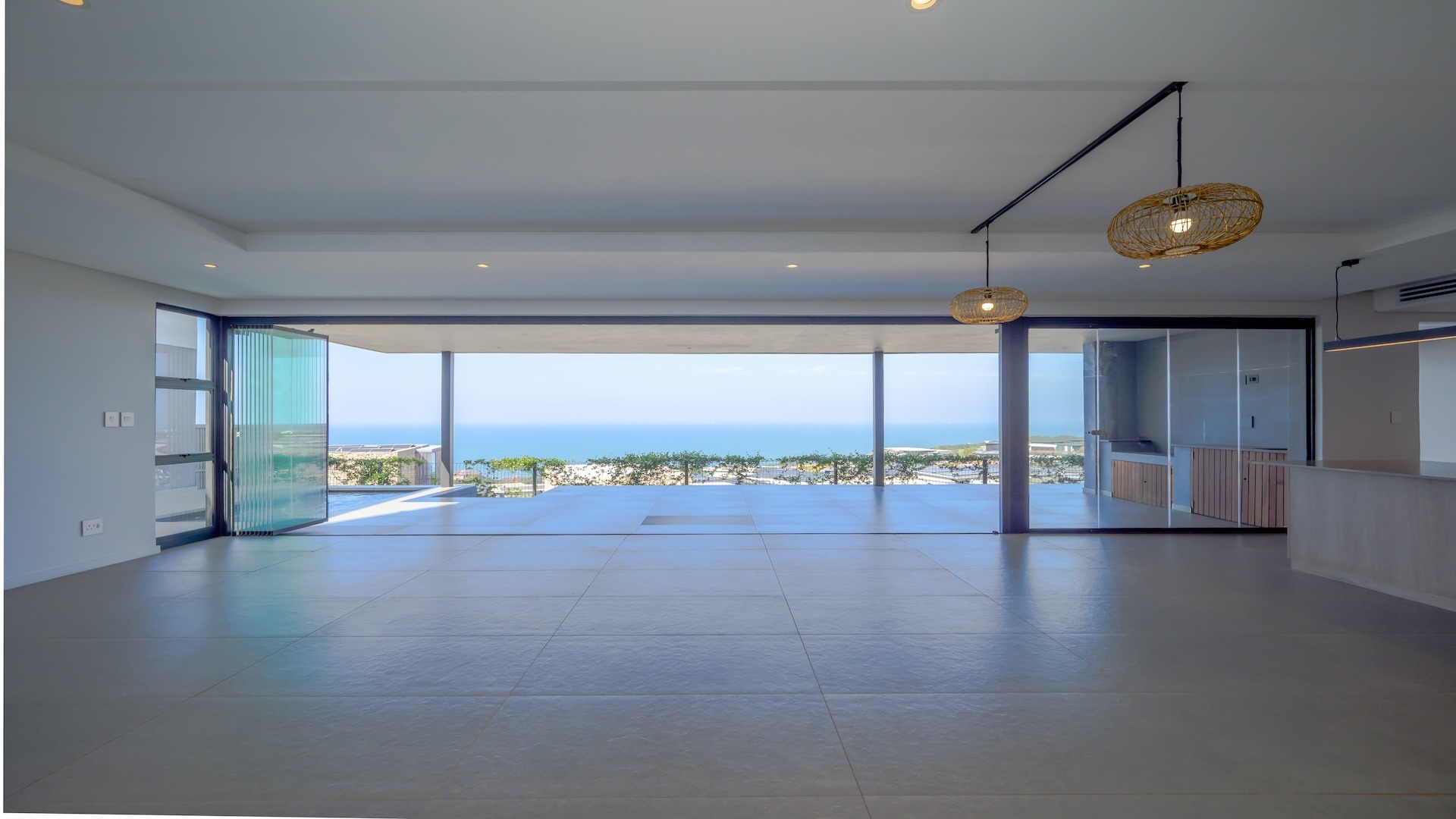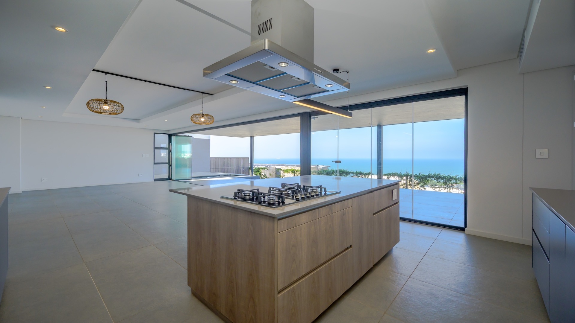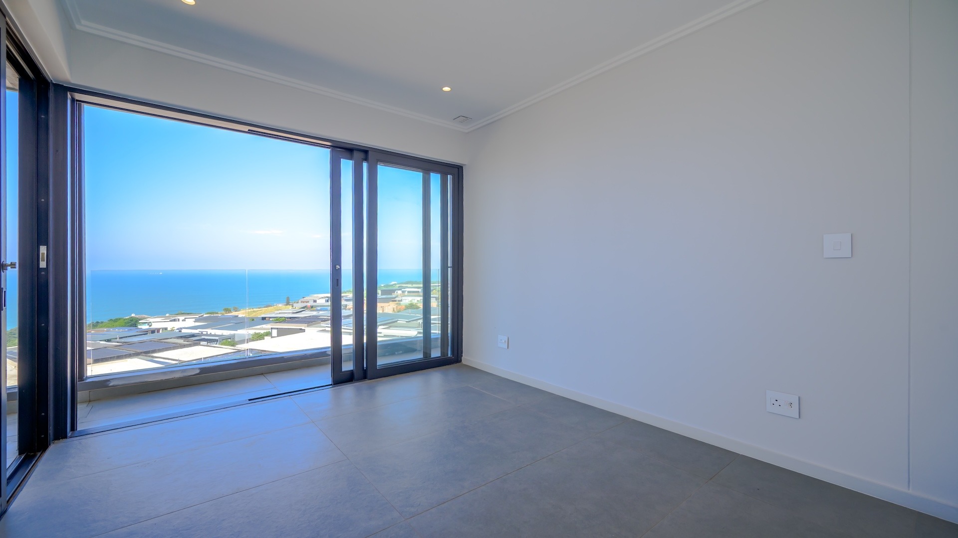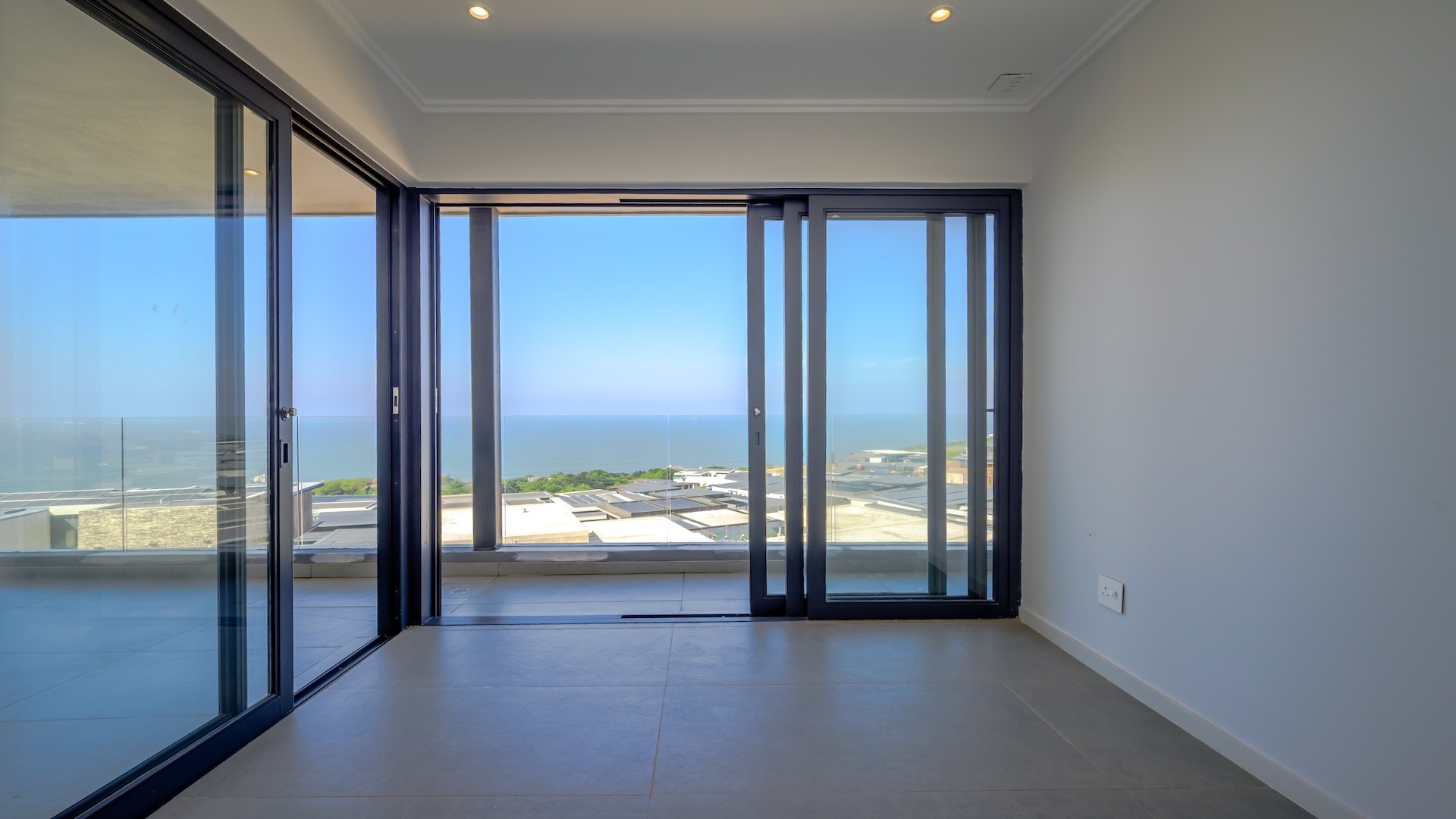 This spacious brand new four-bedroom villa has sweeping 180-degree sea views from every room and is conveniently accessed directly from the three-car garage. There is an additional open parking bay.