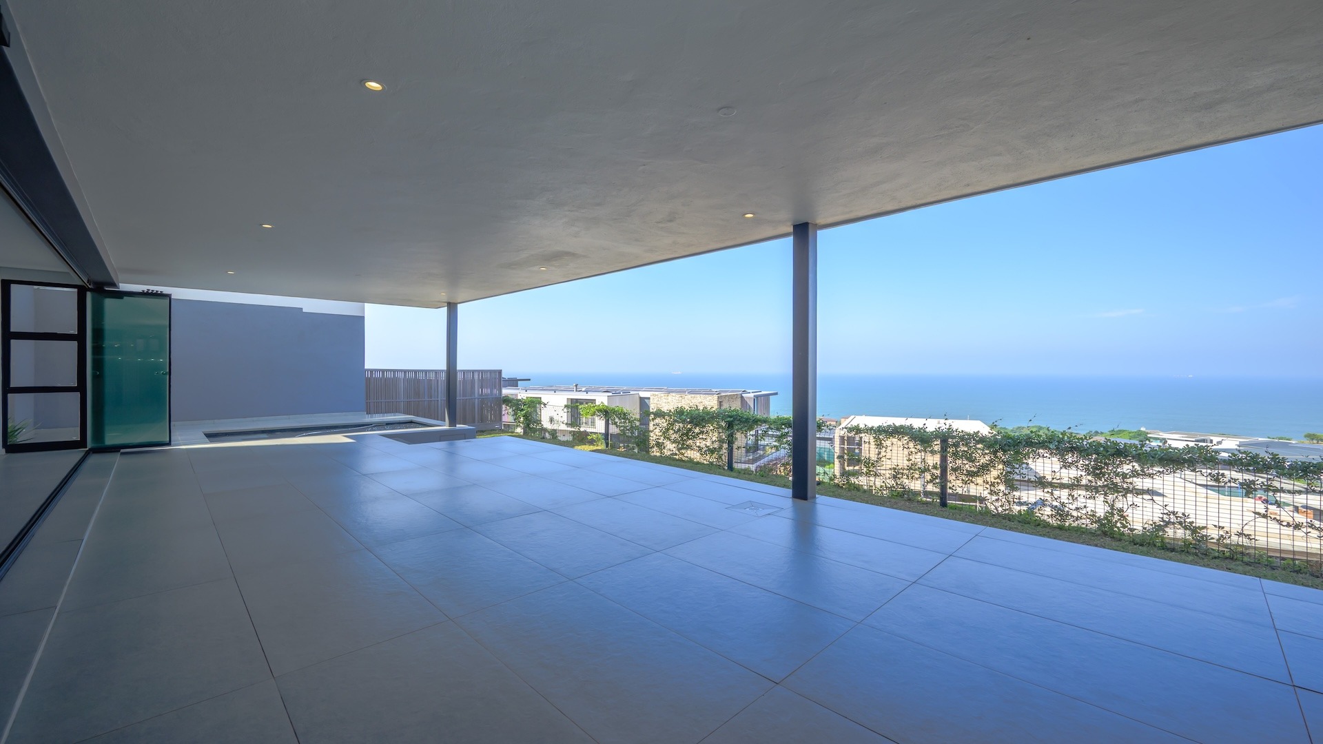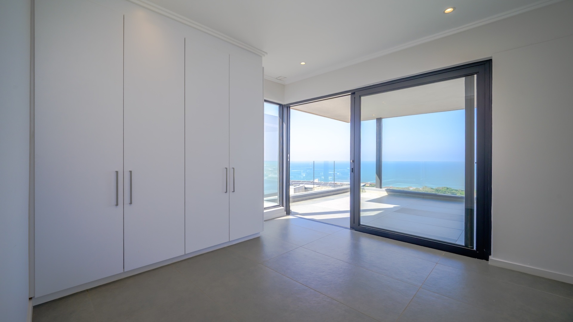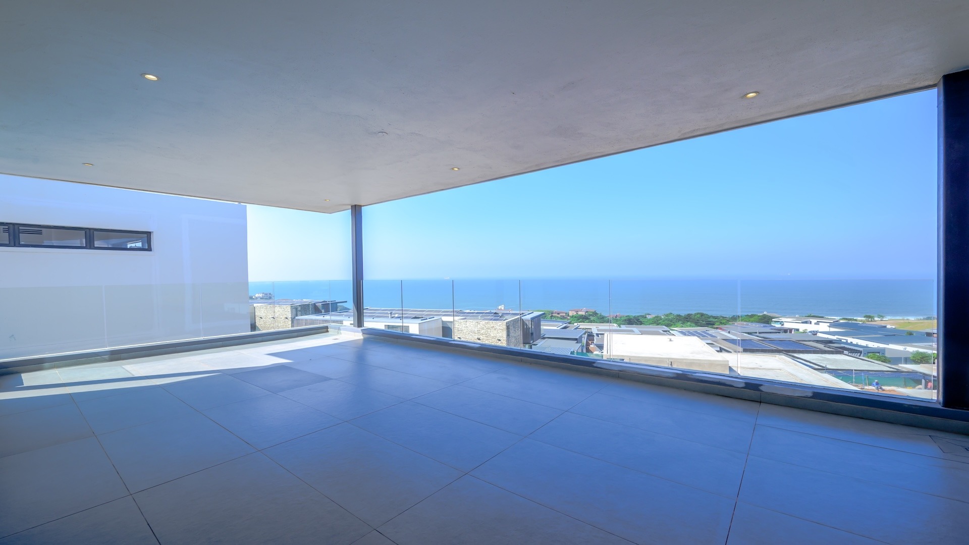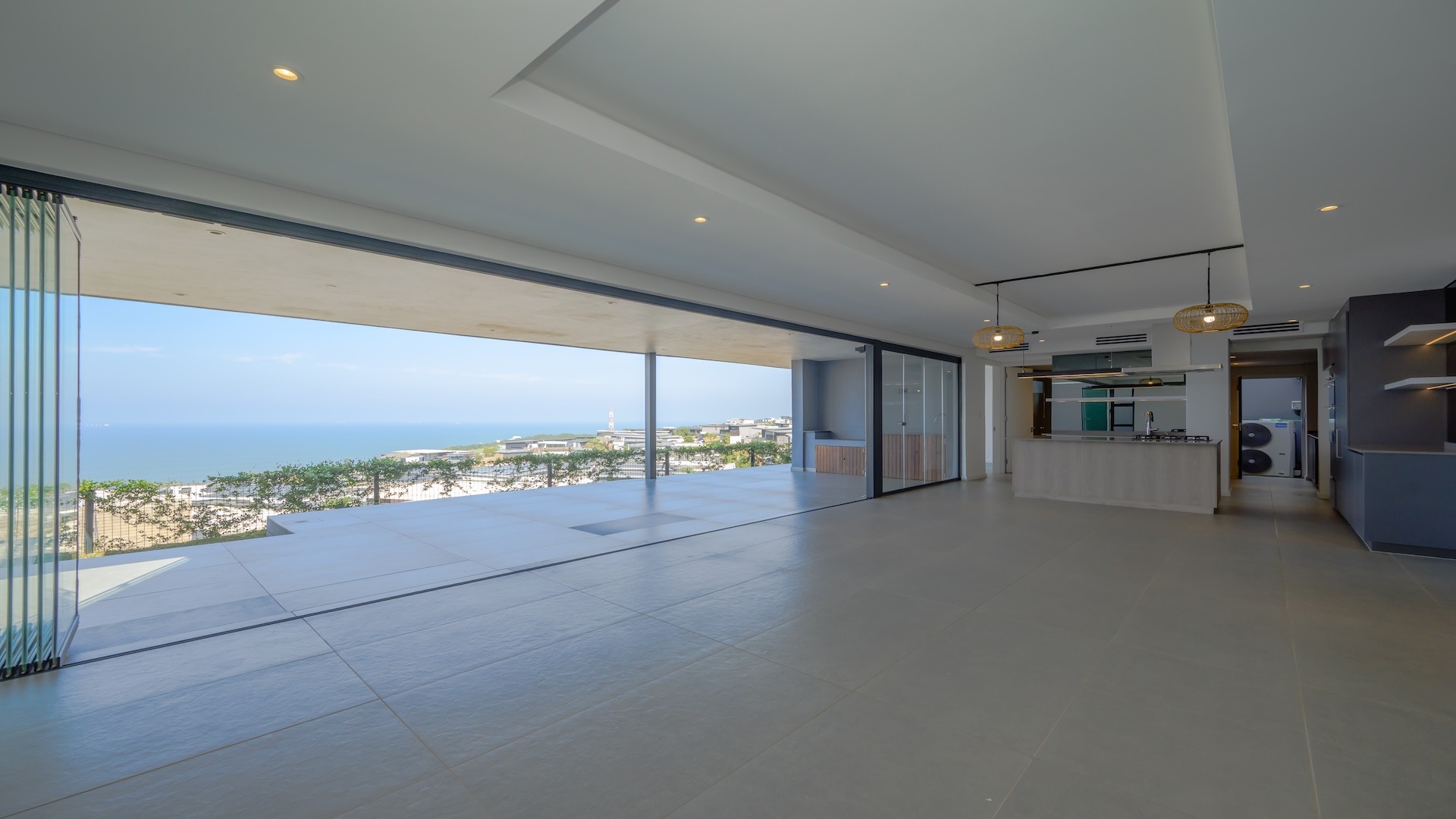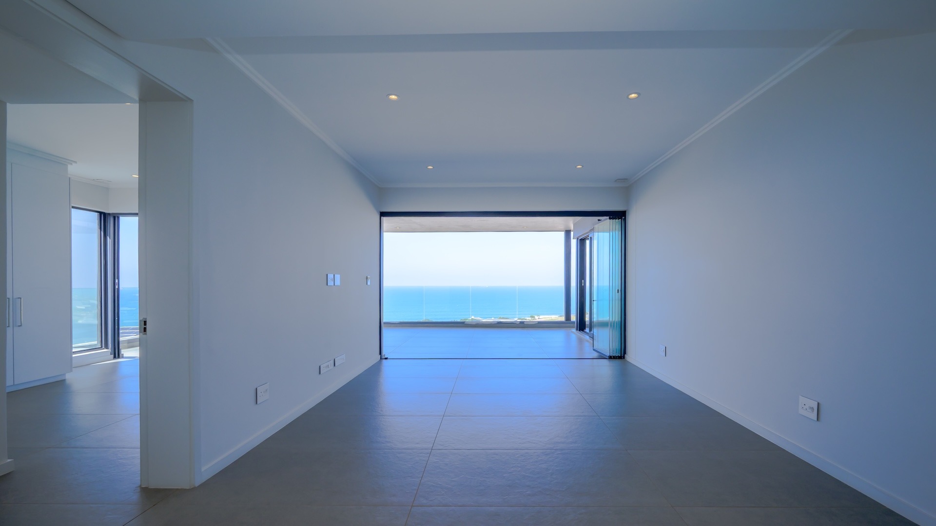 This spacious brand new four-bedroom villa has sweeping 180-degree sea views from every room and is conveniently accessed directly from the three-car garage. There is an additional open parking bay.