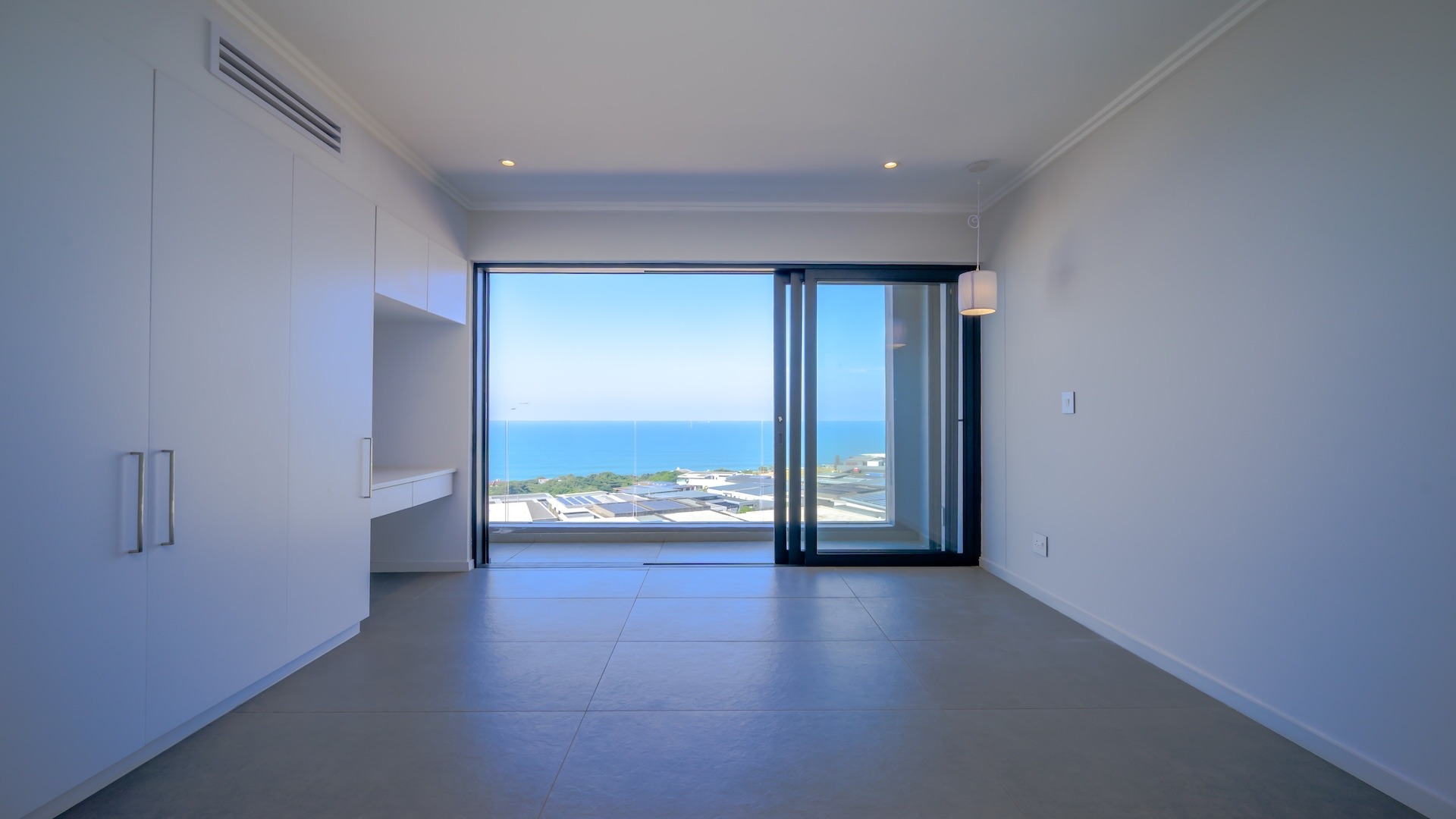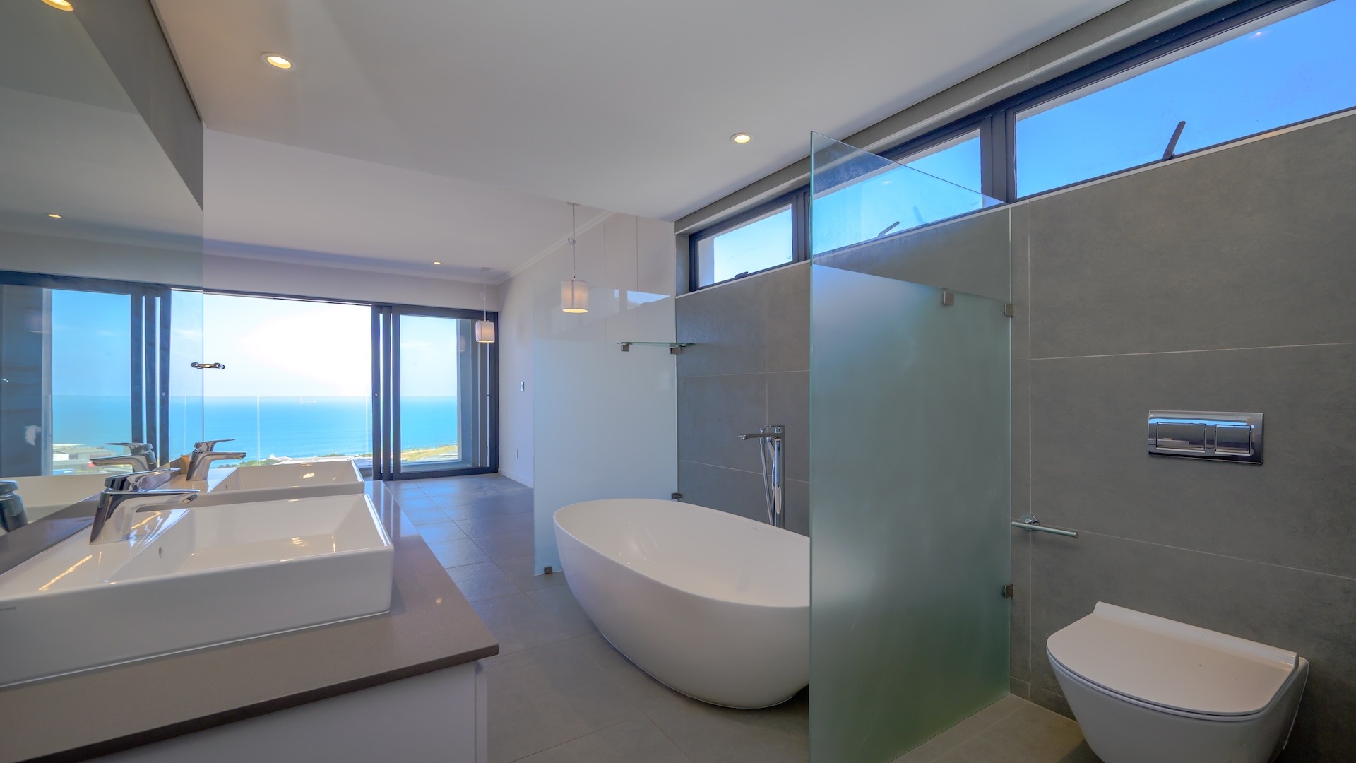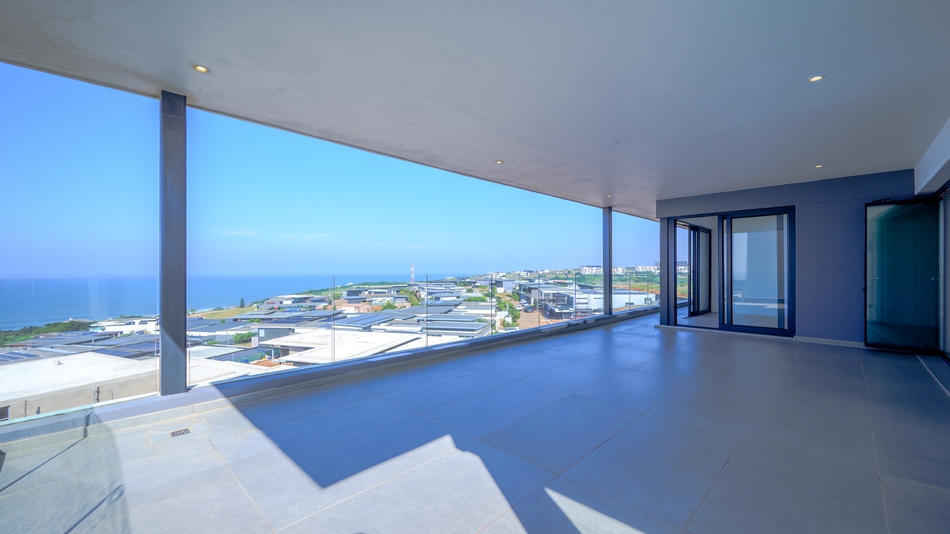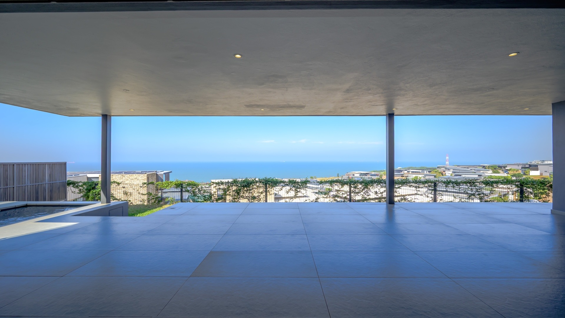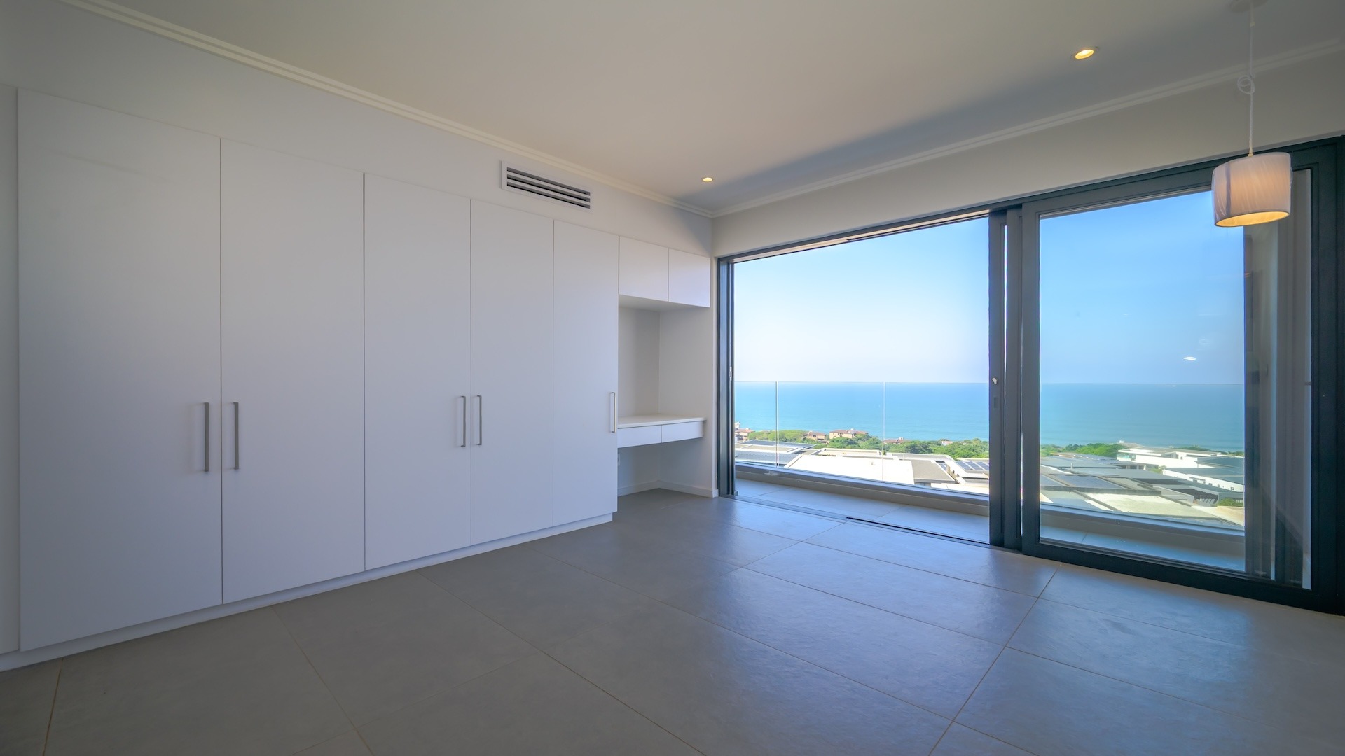 This spacious brand new four-bedroom villa has sweeping 180-degree sea views from every room and is conveniently accessed directly from the three-car garage. There is an additional open parking bay.