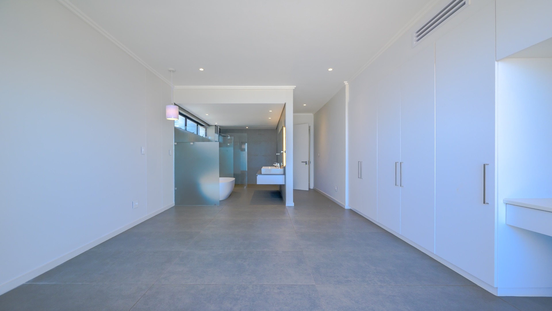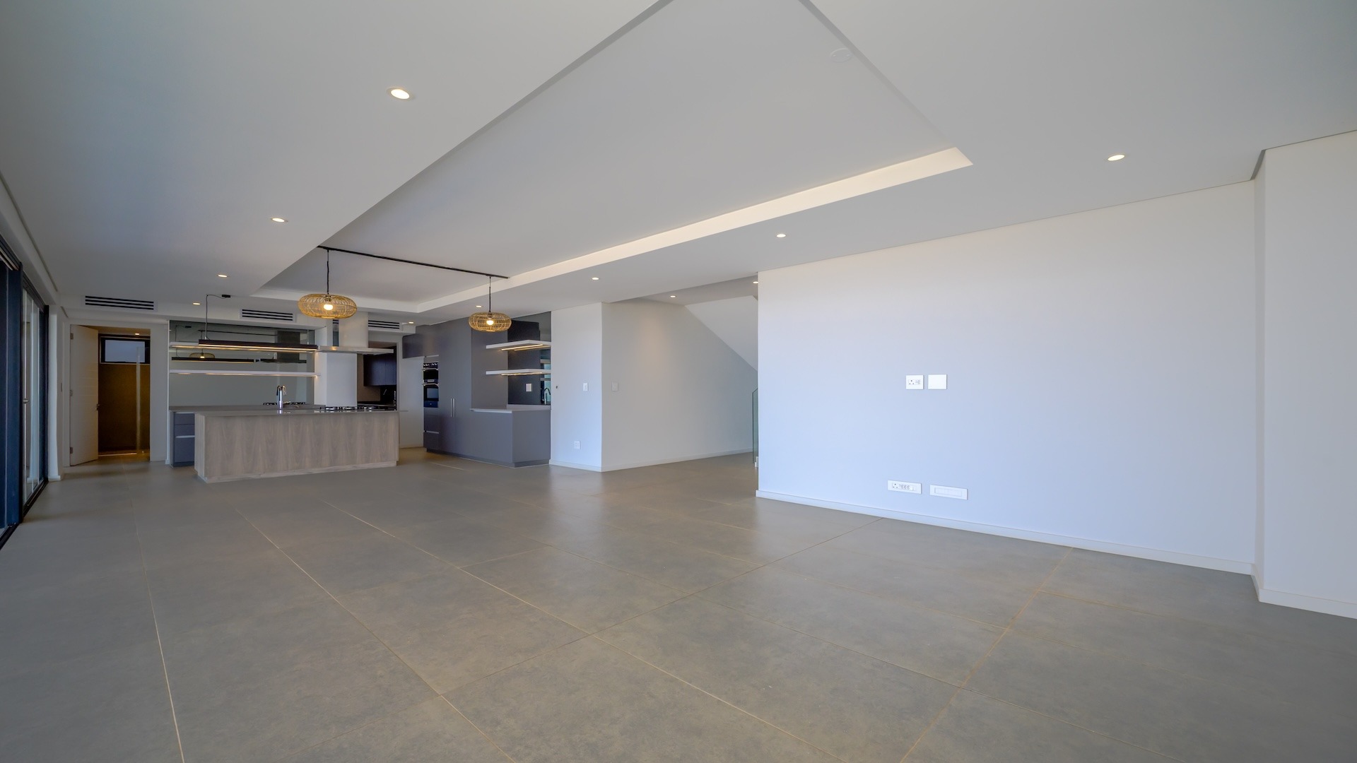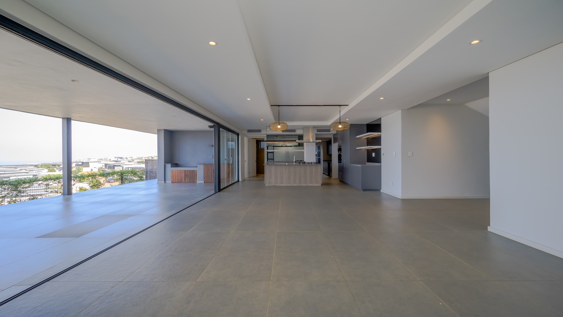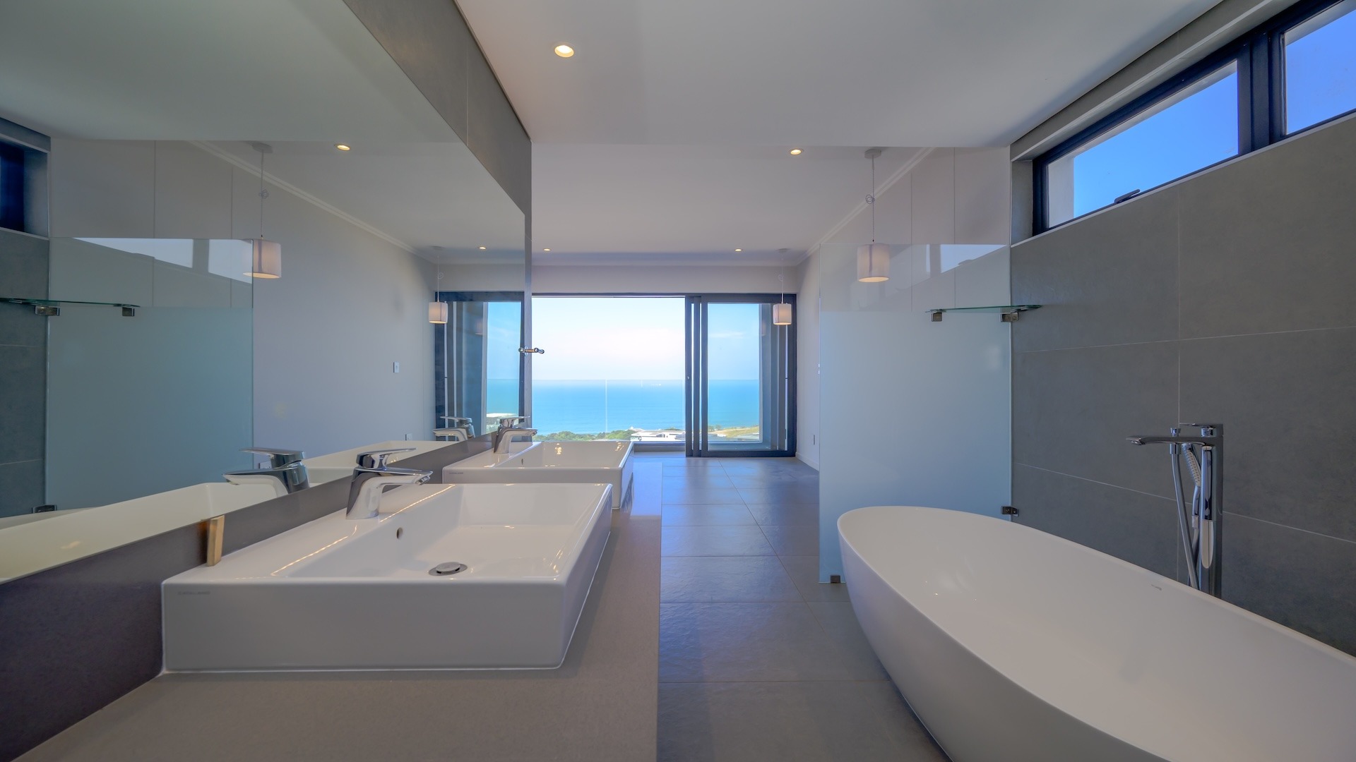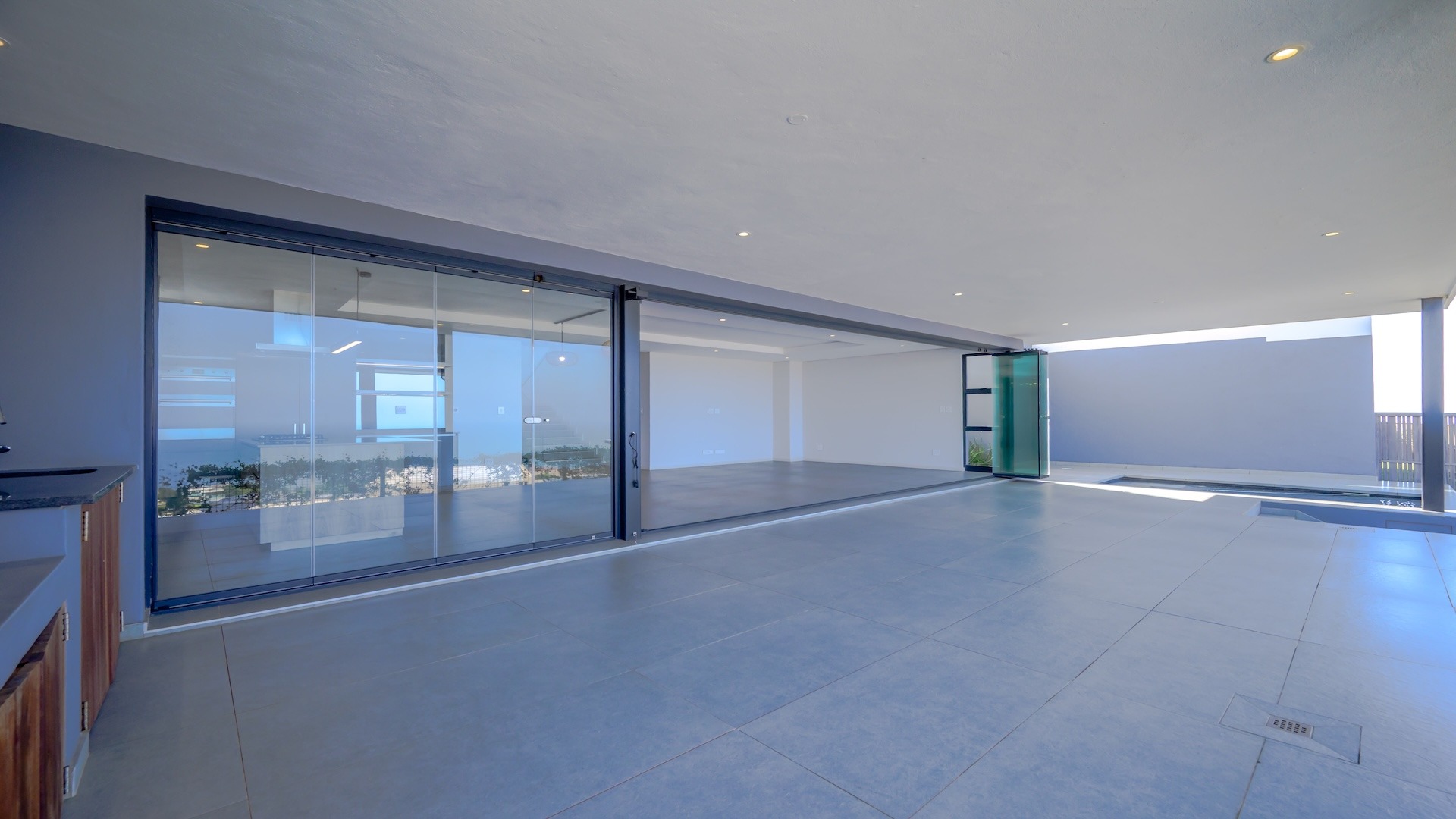 This spacious brand new four-bedroom villa has sweeping 180-degree sea views from every room and is conveniently accessed directly from the three-car garage. There is an additional open parking bay.