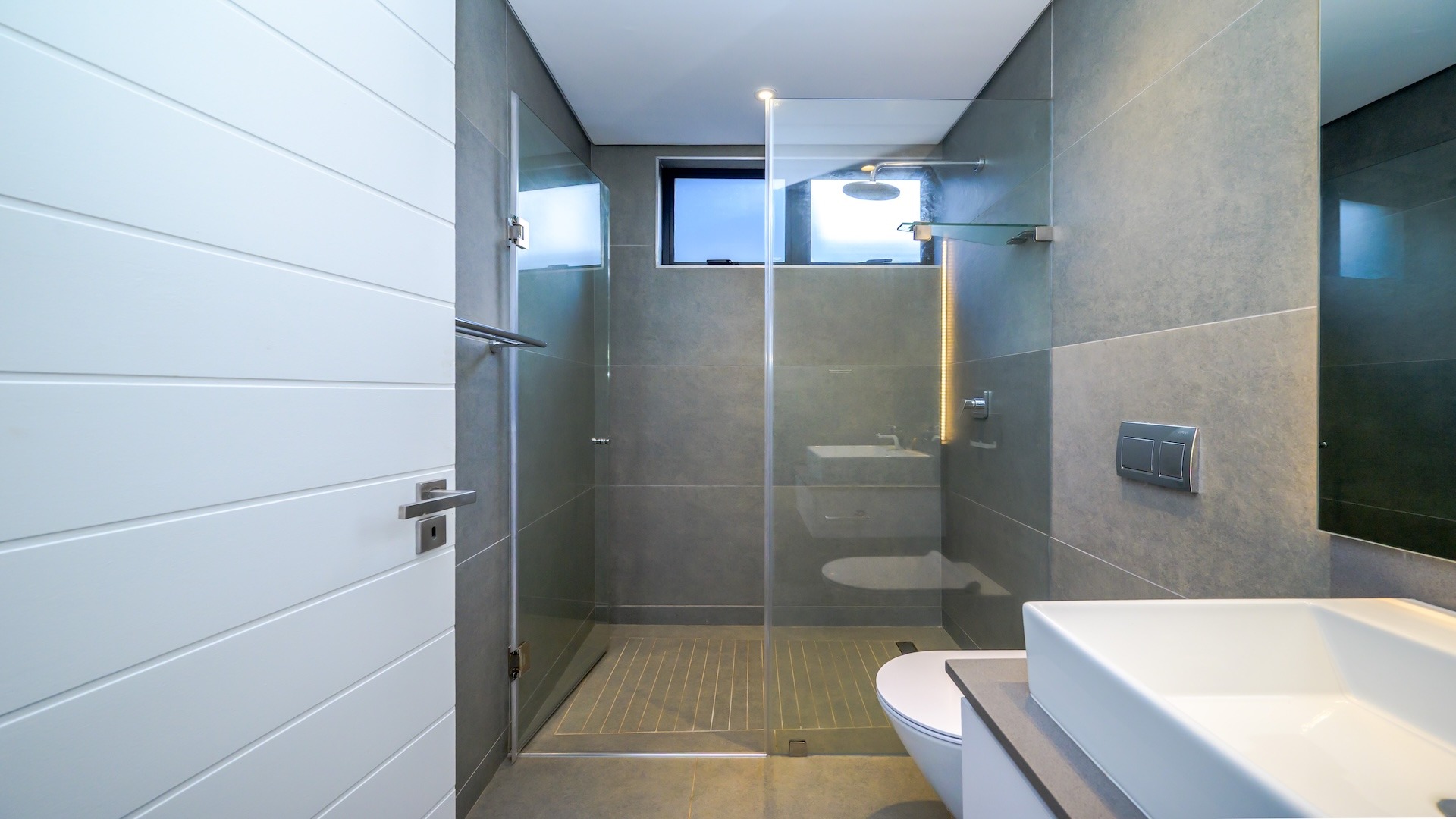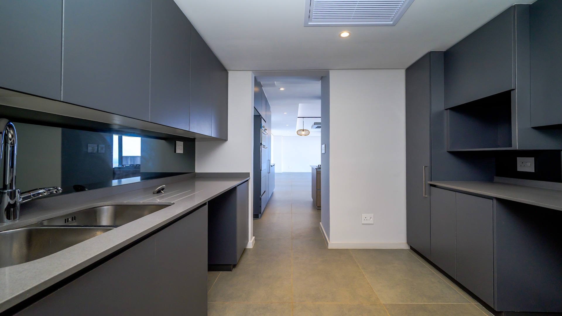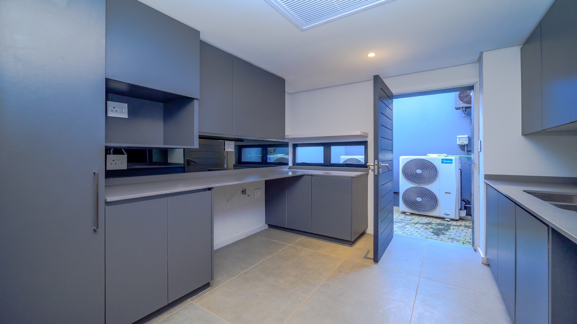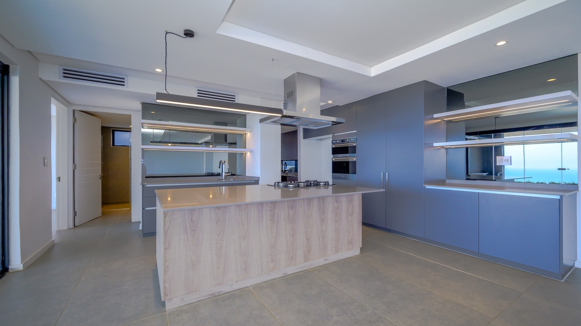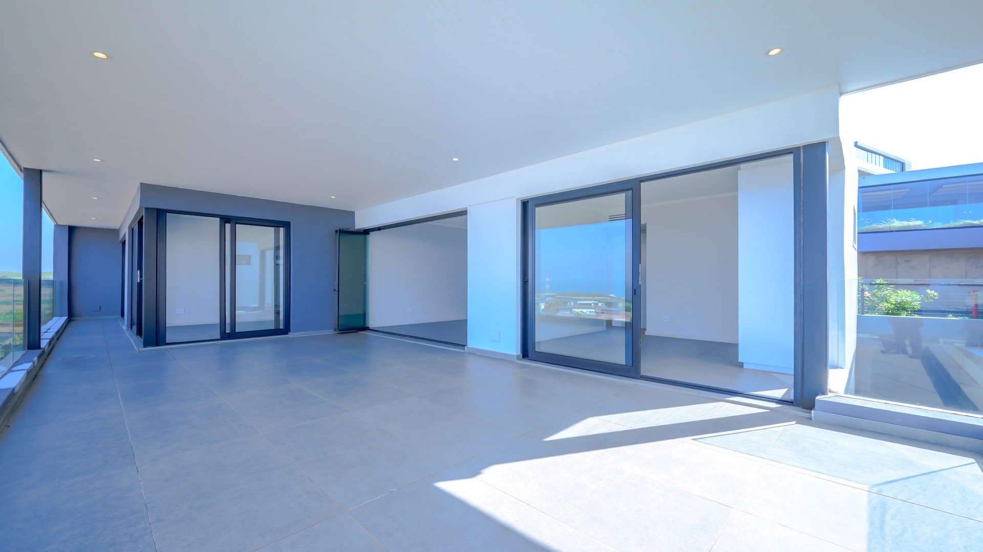 This spacious brand new four-bedroom villa has sweeping 180-degree sea views from every room and is conveniently accessed directly from the three-car garage. There is an additional open parking bay.