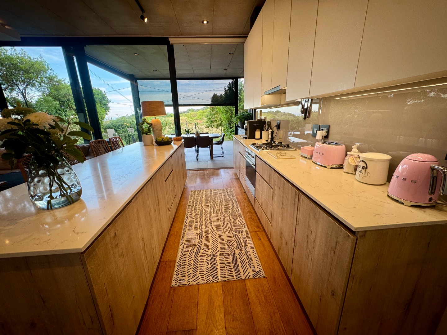 The kitchen opens onto to braai area and there is a separate scullery and laundry. There is a guest toilet downstairs.