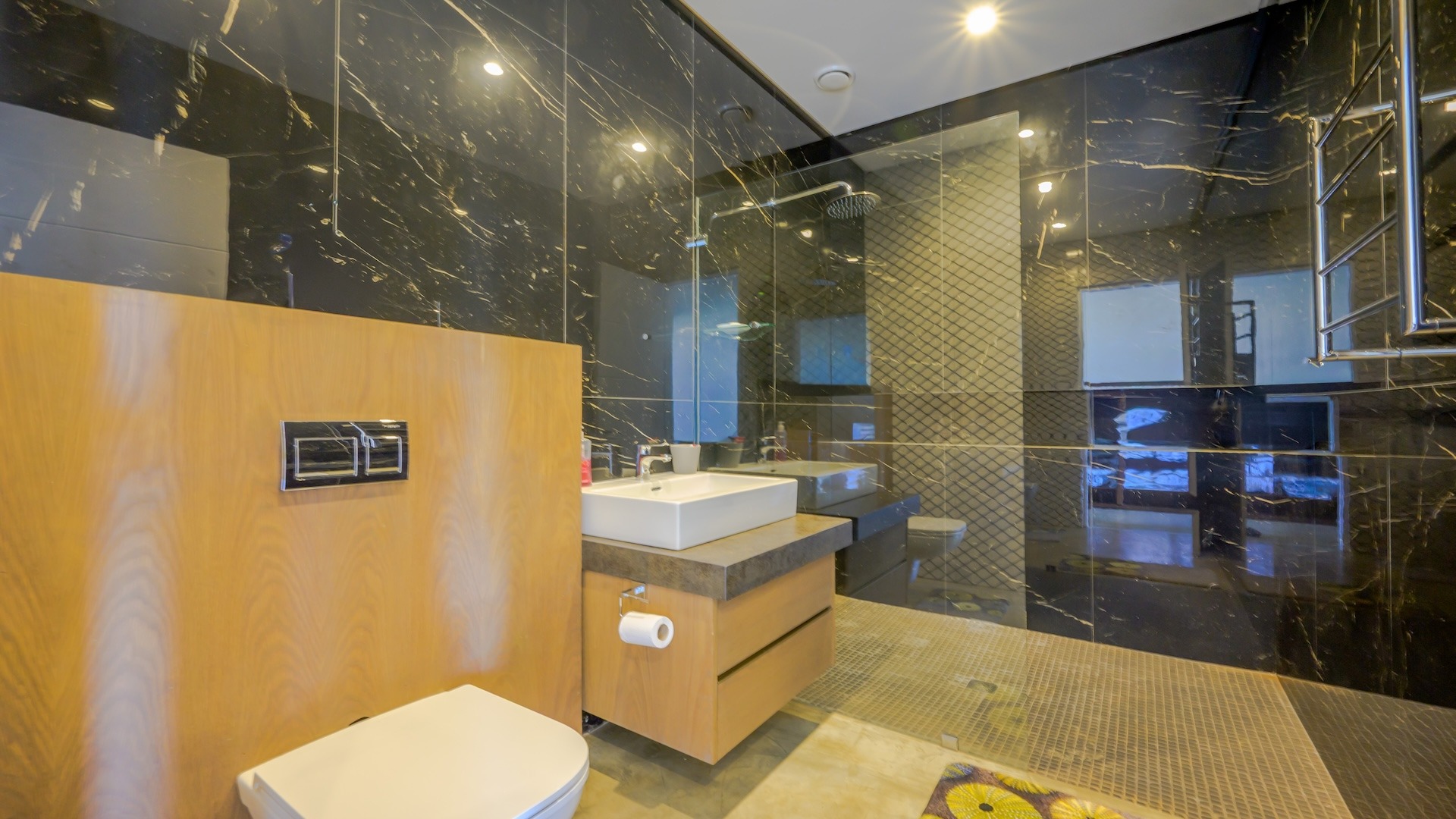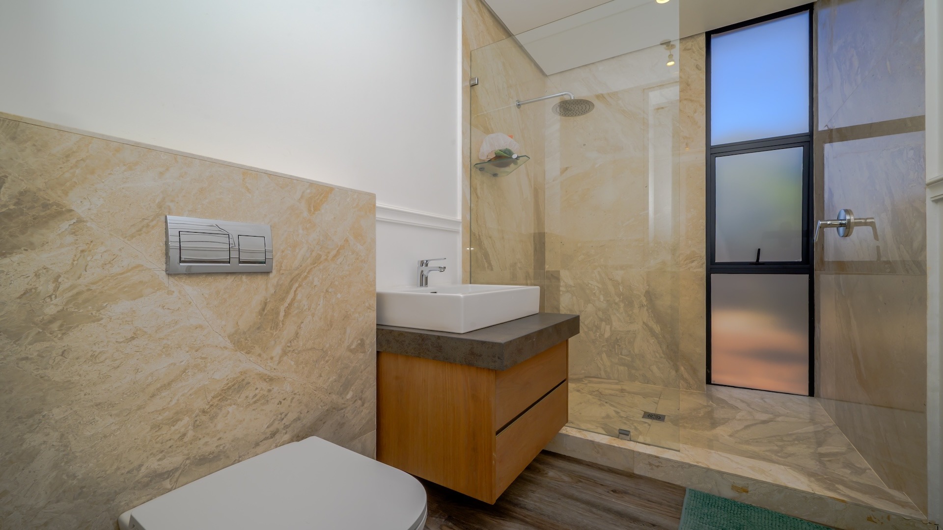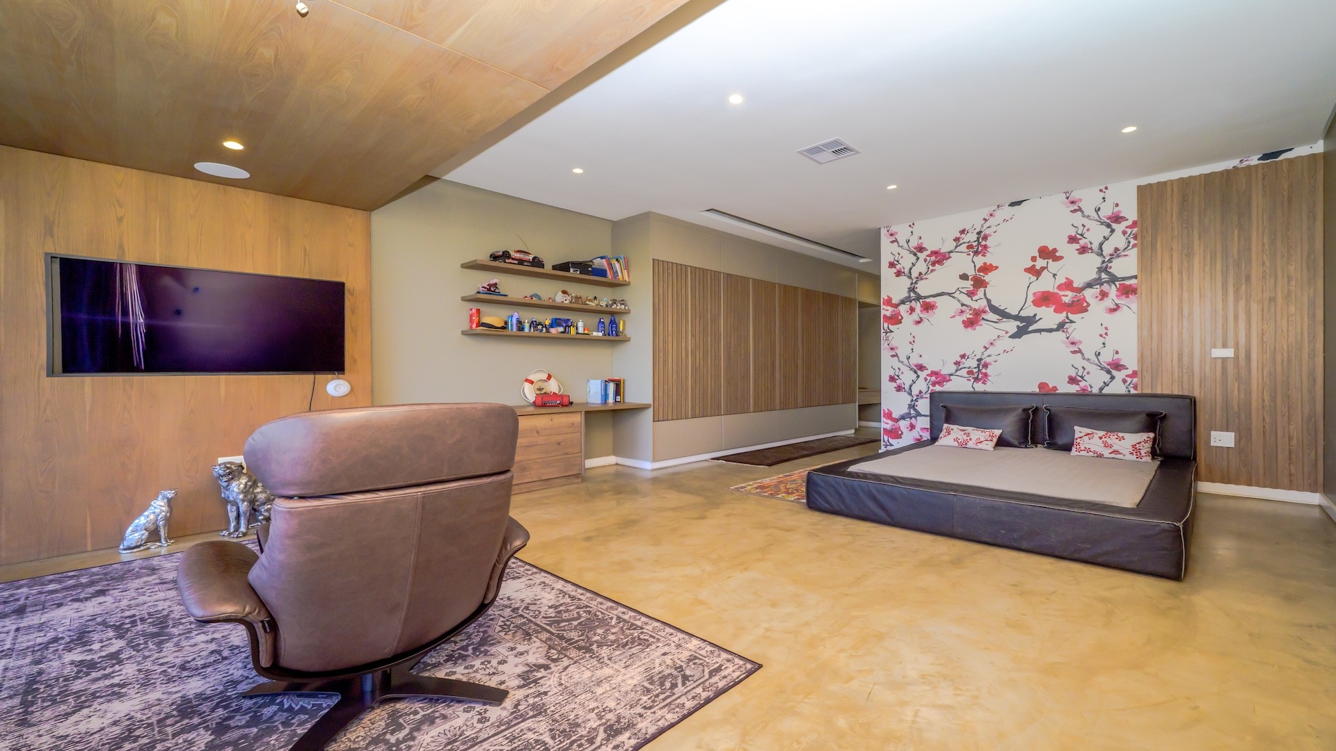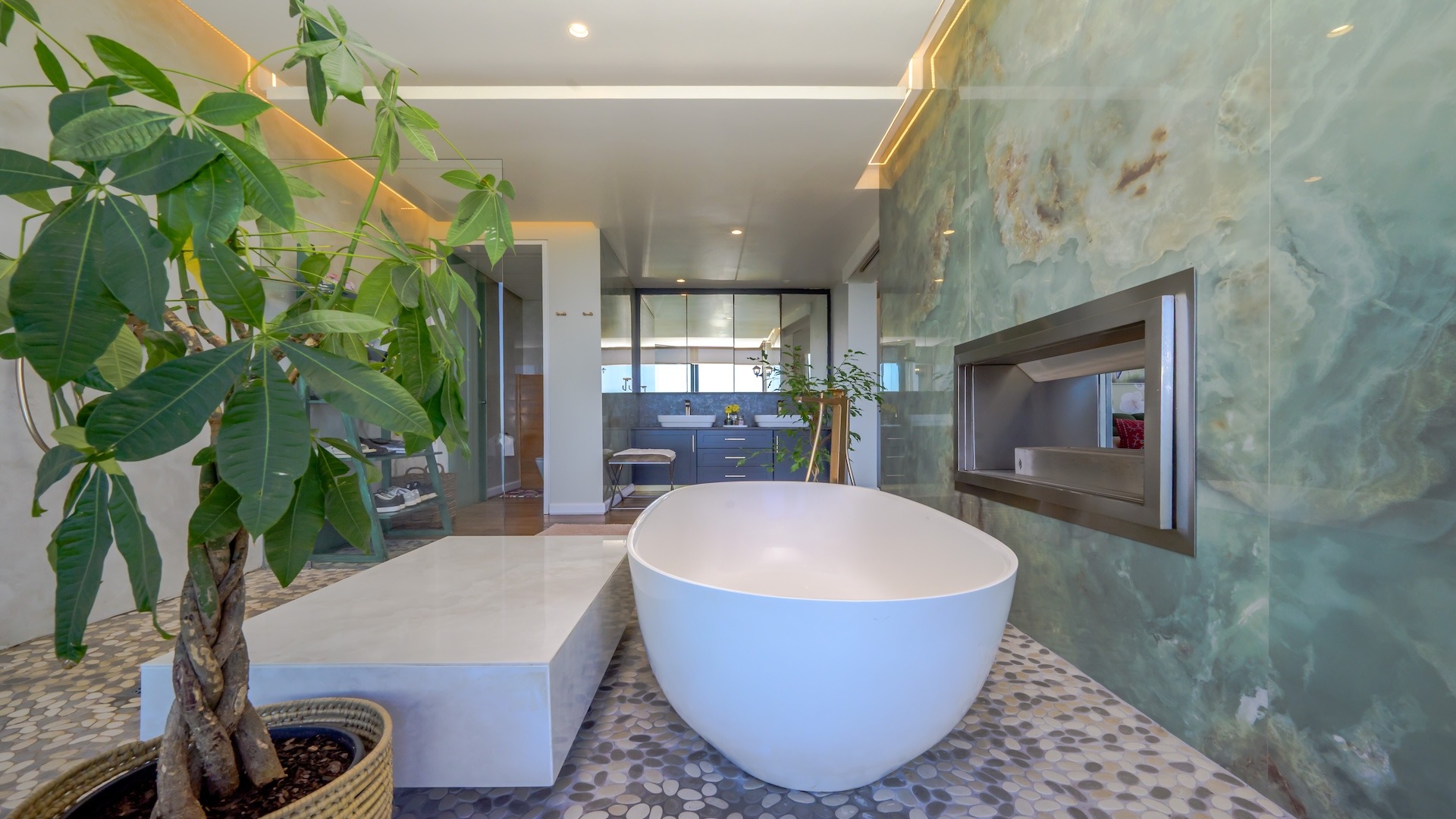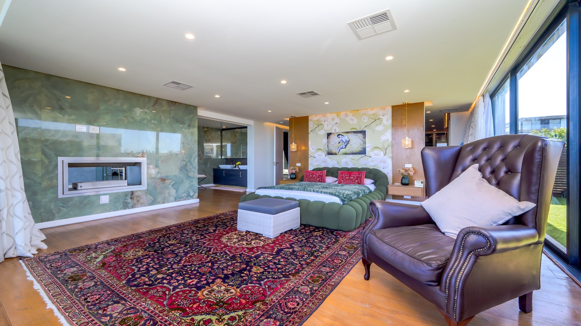 The top level is home to a spacious, luxurious main-ensuite bedroom with grand dressing room and stylish bathroom with bath, rain shower and separate toilet. There are also a sea-facing gym and study on this level.
