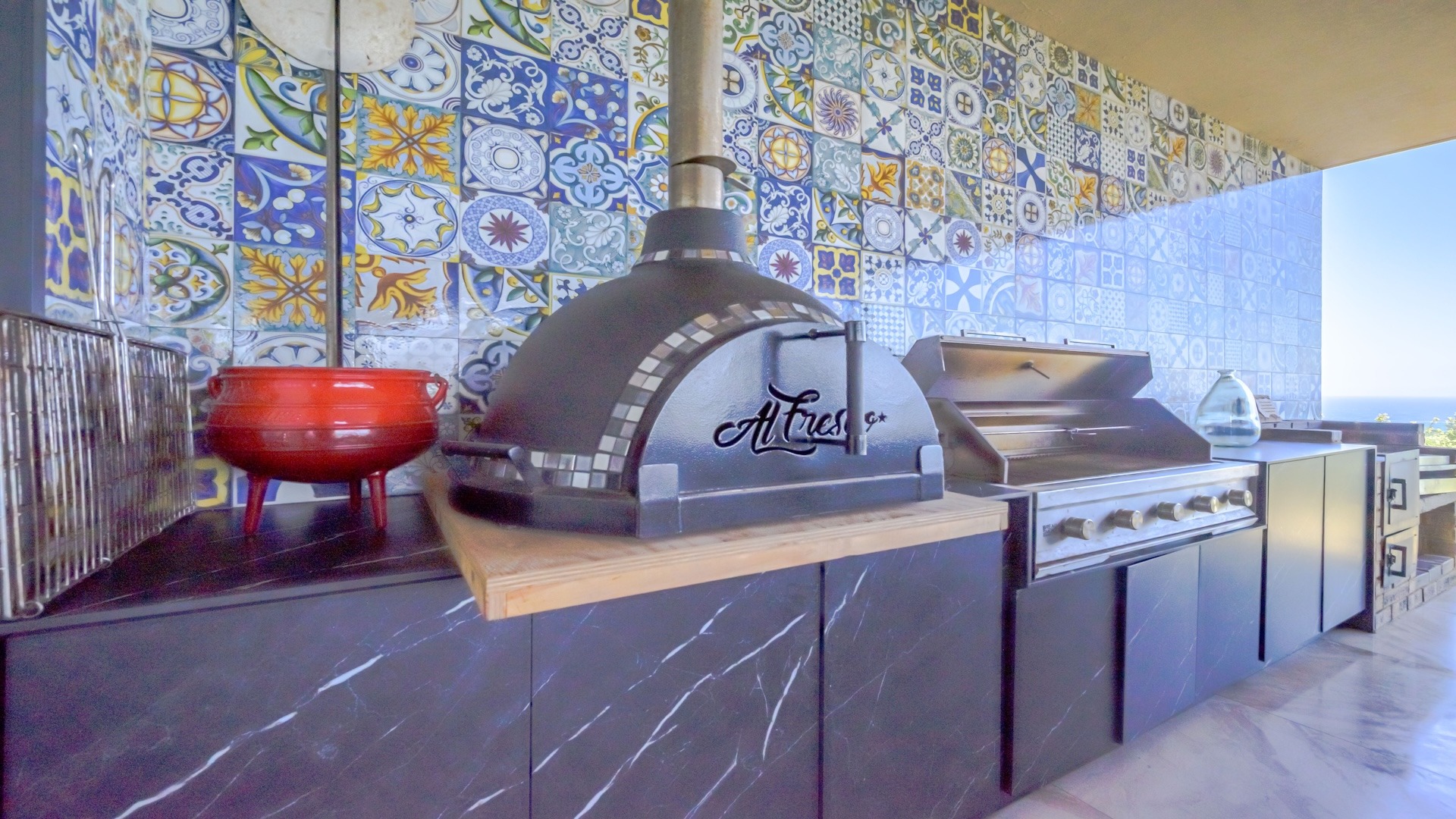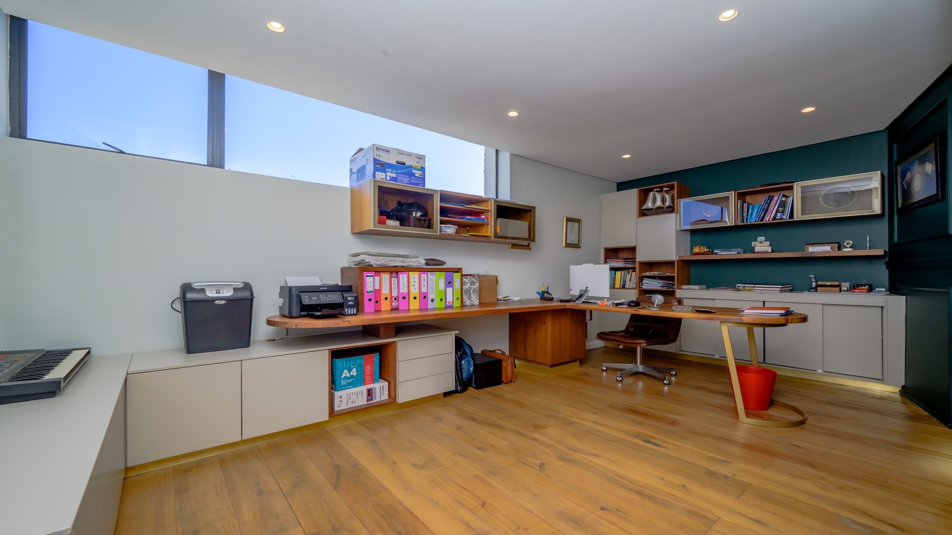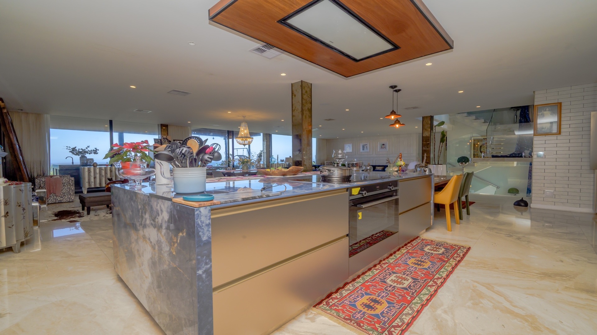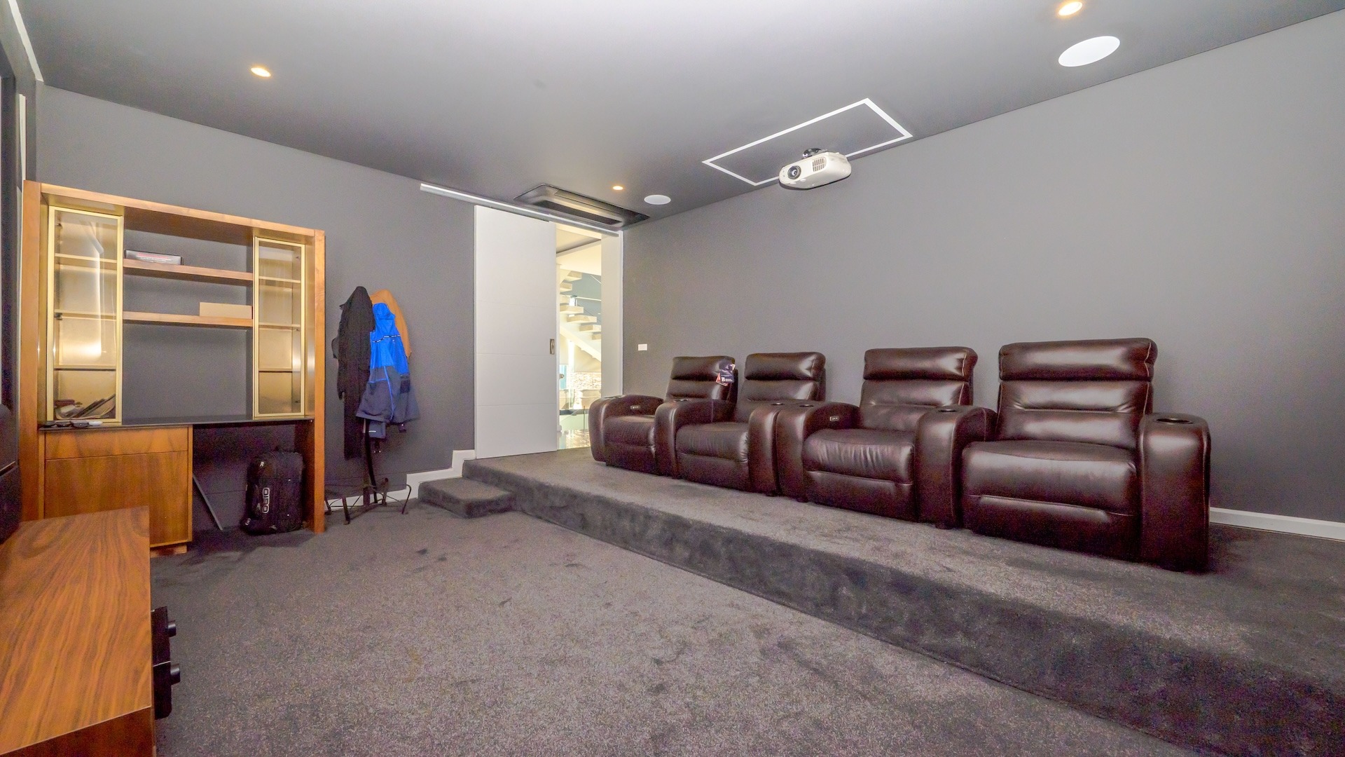 Ideal for a large family and effortless entertaining, the home spans three levels, designed around the glorious vistas, morning and afternoon light. The middle level forms the heart of the home, with the open plan kitchen, lounge and dining room flowing onto a massive patio with swimming pool, jacuzzi and uninterrupted sea views. There is a charcoal and a gas braai as well as a pizza oven. There is a cinema room, a guest toilet and an en-suite bedroom, leading onto the patio. There is direct access to the home from the triple garages to the pantry and scullery. The wide driveway offers additional open parking.