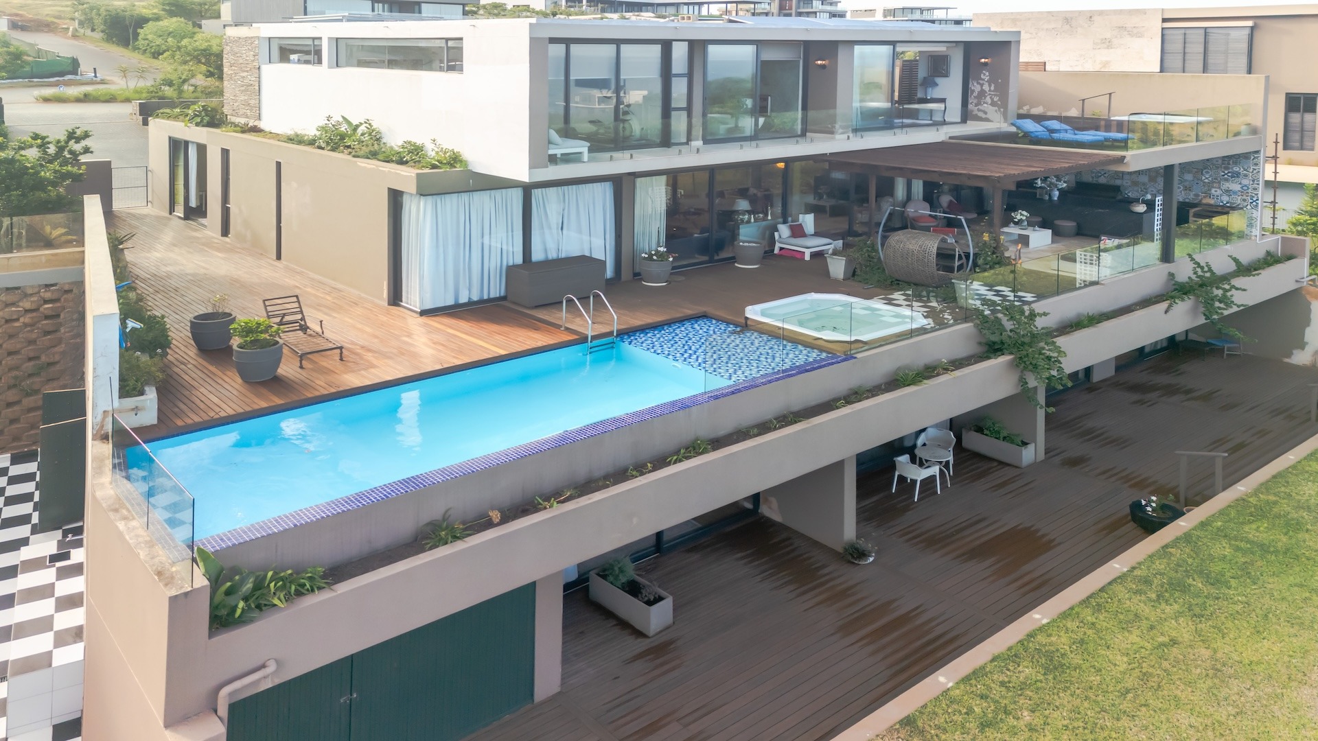 This luxurious five-bedroom home, with breathtaking 180-degree sea views, is set in the sought-after Signature Estate, Sibaya.