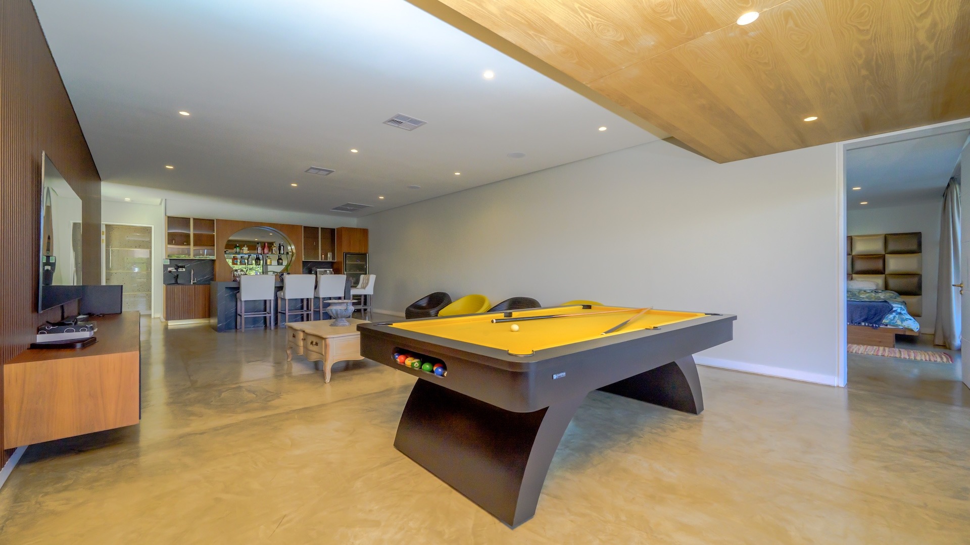 The ground level has three large en-suite bedrooms flowing onto the spacious patio and garden. This level is also ideal for entertaining and has a pool room, bar and wine cellar and guest toilet.