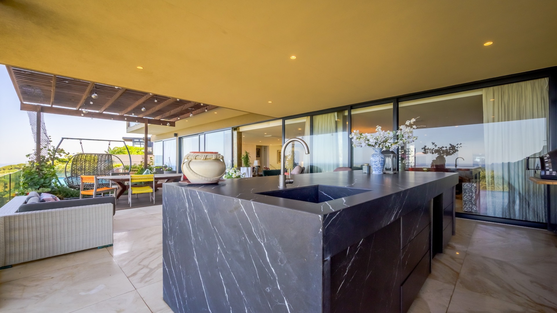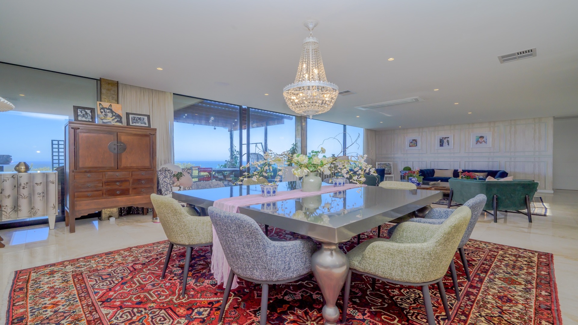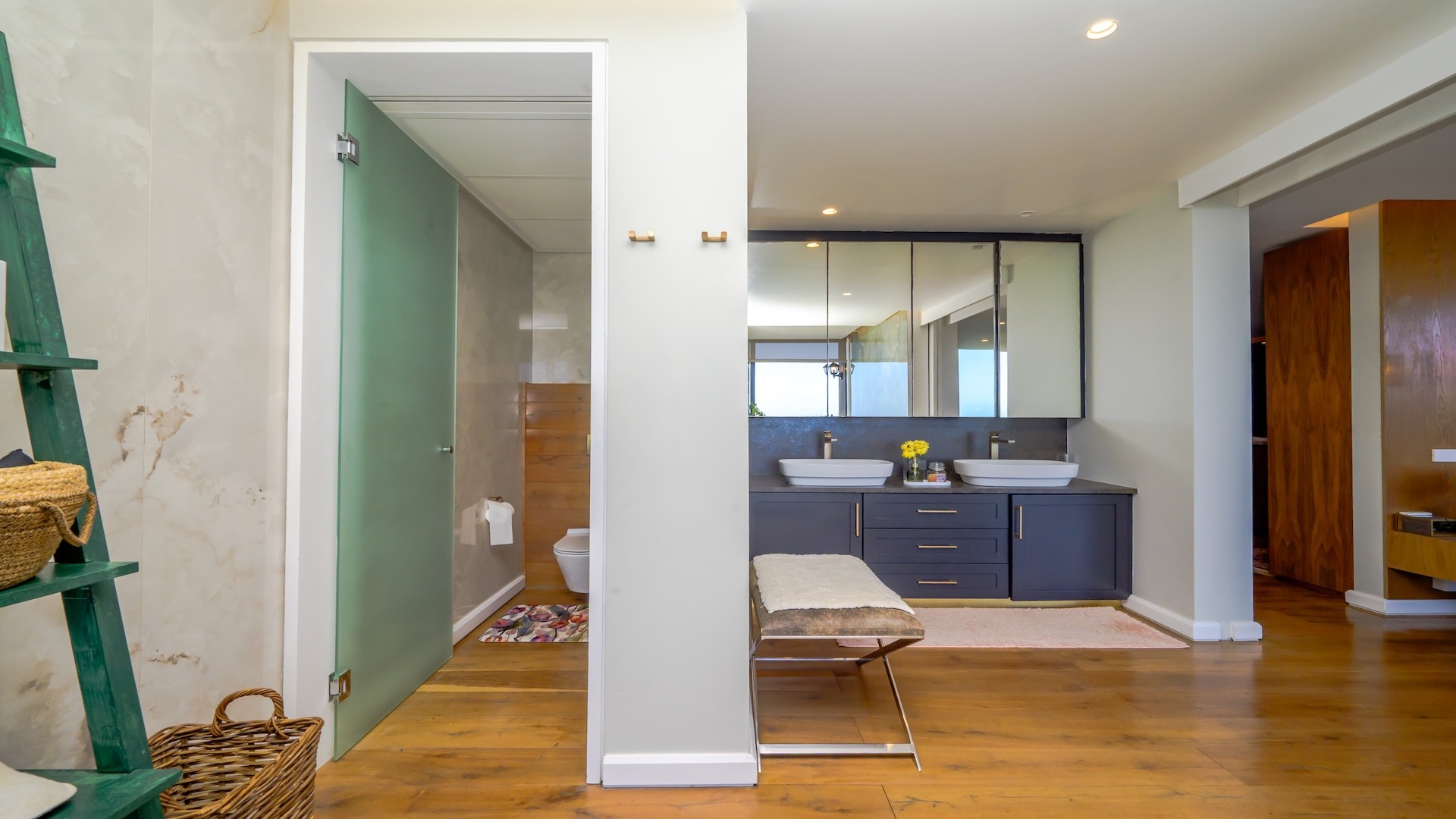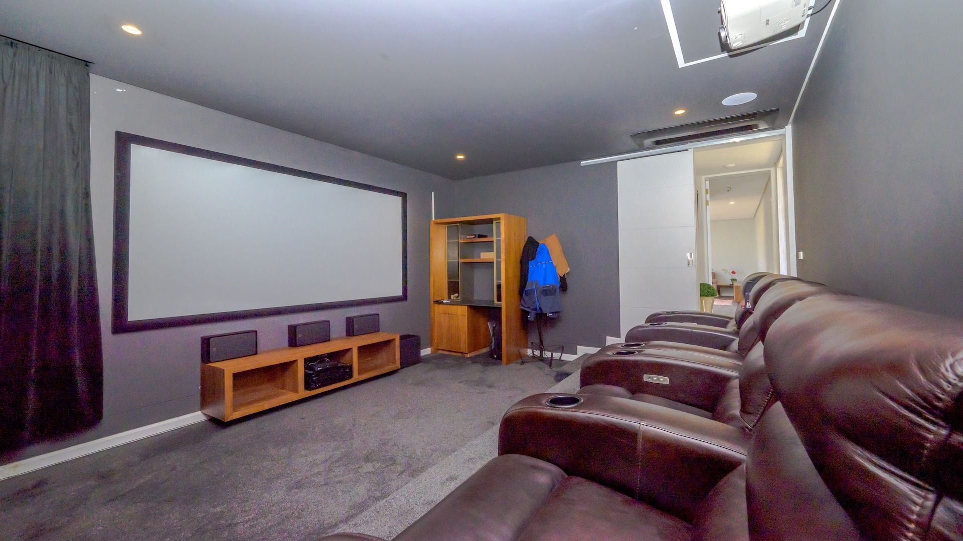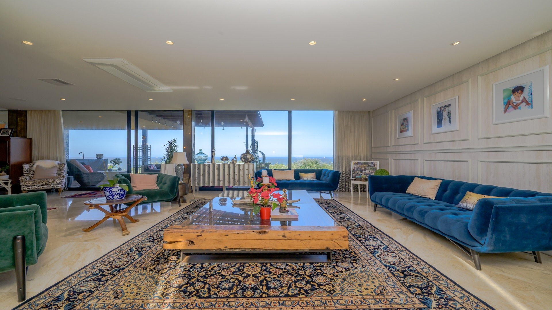 Ideal for a large family and effortless entertaining, the home spans three levels, designed around the glorious vistas, morning and afternoon light. The middle level forms the heart of the home, with the open plan kitchen, lounge and dining room flowing onto a massive patio with swimming pool, jacuzzi and uninterrupted sea views. There is a charcoal and a gas braai as well as a pizza oven. There is a cinema room, a guest toilet and an en-suite bedroom, leading onto the patio. There is direct access to the home from the triple garages to the pantry and scullery. The wide driveway offers additional open parking.