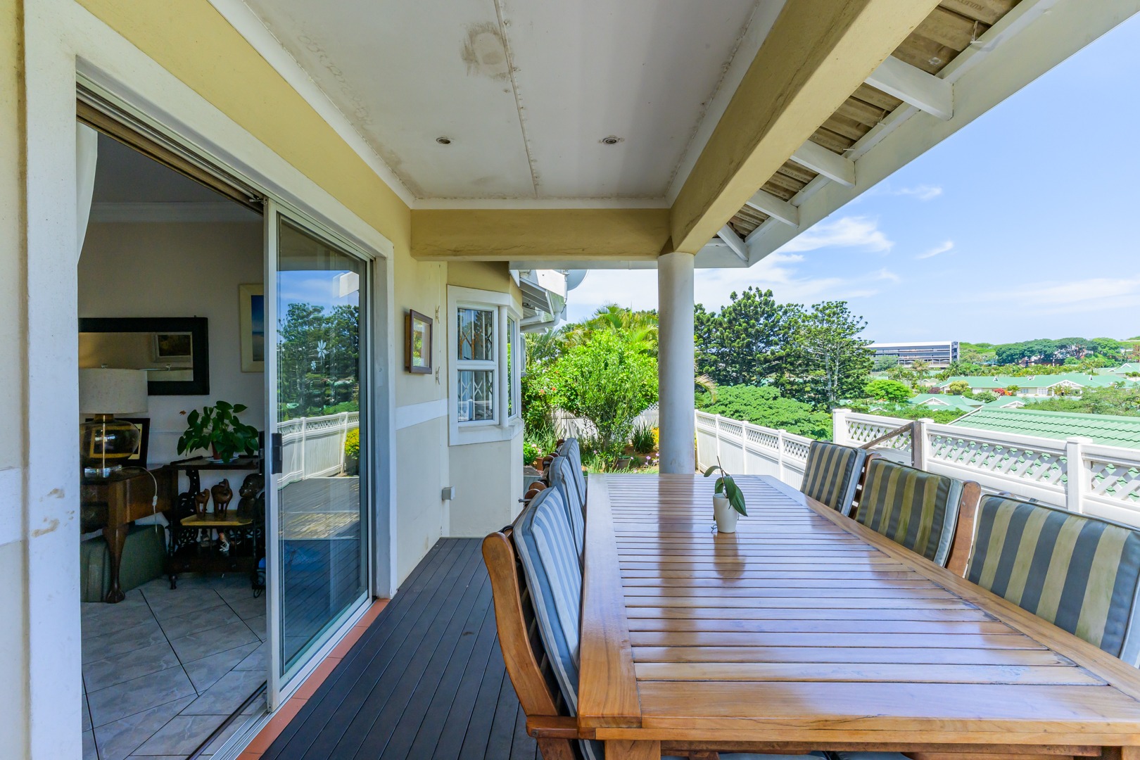 Outdoor living is enhanced by a private garden and a deck, ideal for enjoying the scenic views. The property accommodates pets and features a driveway leading to two garages and two additional parking spaces. Security is paramount, with features including an access gate, alarm system, electric fencing, security gate, and burglar bars, ensuring peace of mind within the complex setting. Sustainability is addressed with water tanks and a battery inverter, while fibre connectivity keeps you connected. Somerset Park offers a suburban lifestyle in Umhlanga, known for its convenient location and community atmosphere. This property combines comfort, security, and modern amenities, making it an ideal family home.