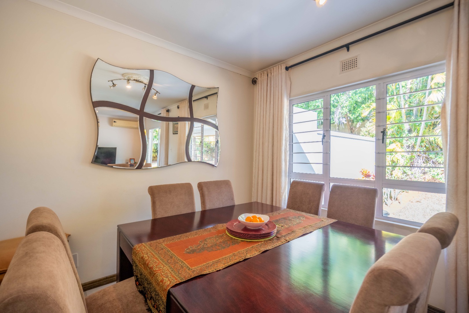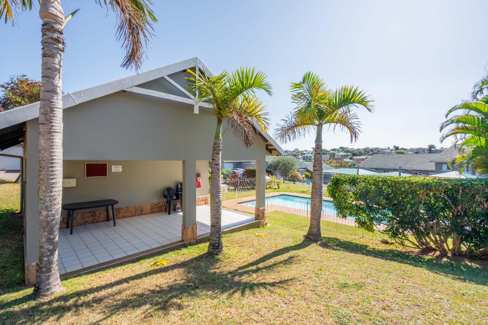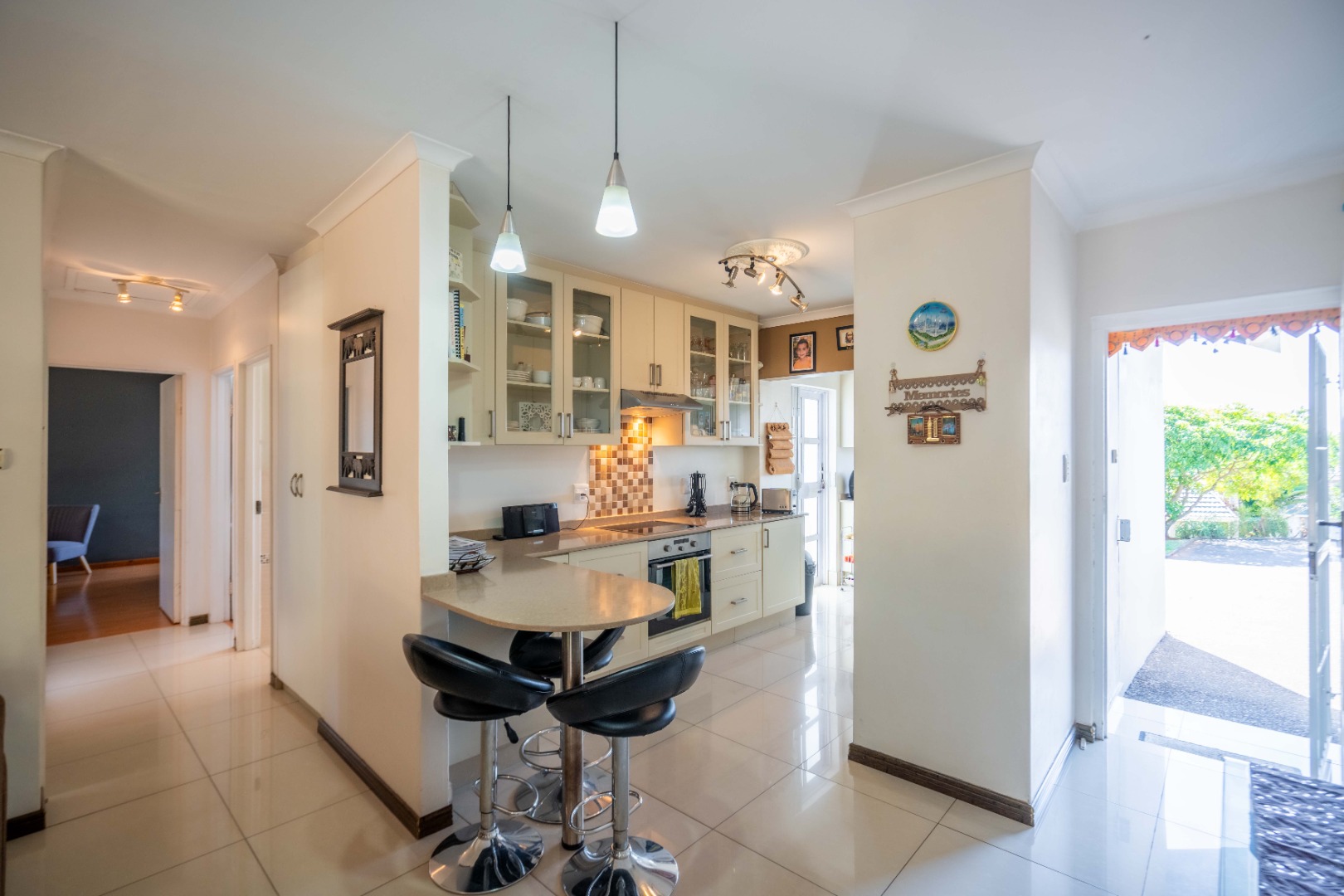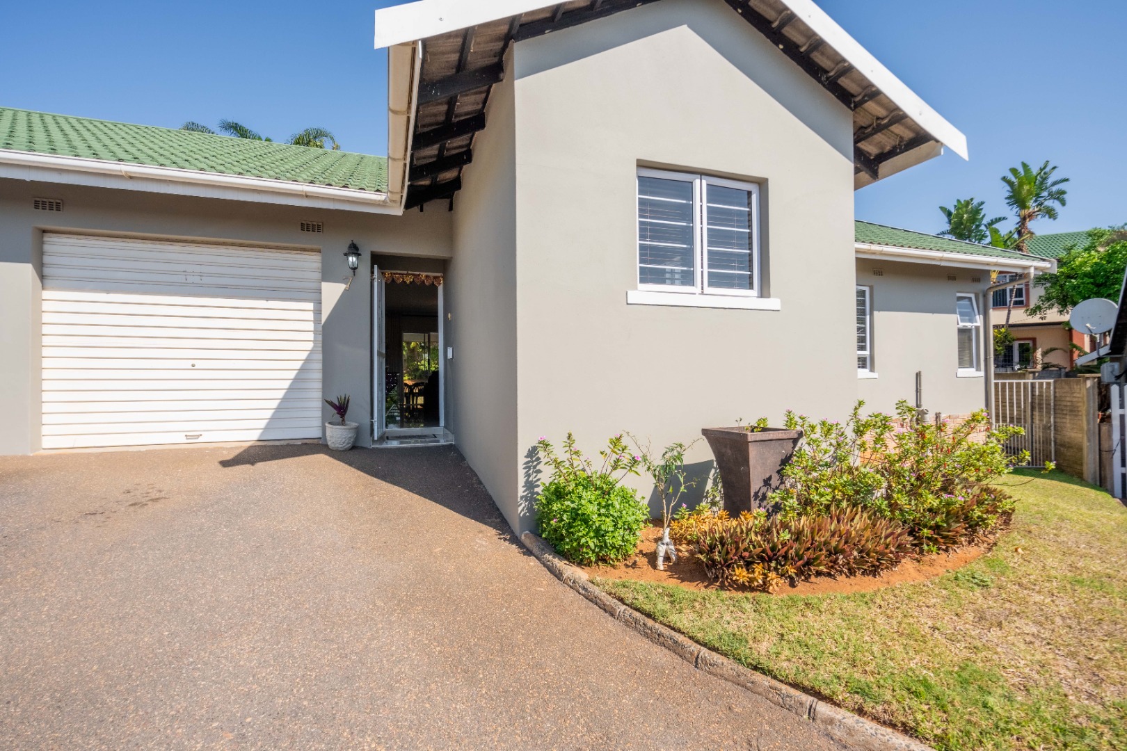 Glass doors open seamlessly from the lounge and dining area onto a covered patio and a totally private, lush tropical garden that wraps around the home. Morning coffees, weekend braais, barefoot afternoons with the dogs or kids playing safely, this outdoor space is pure magic and feels like your own private retreat.