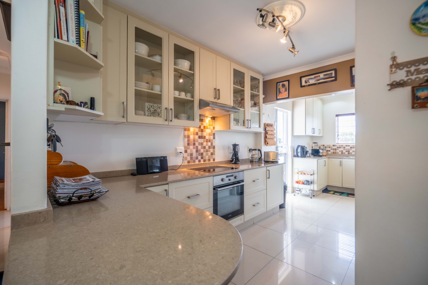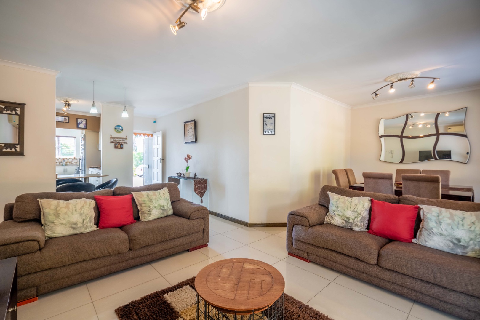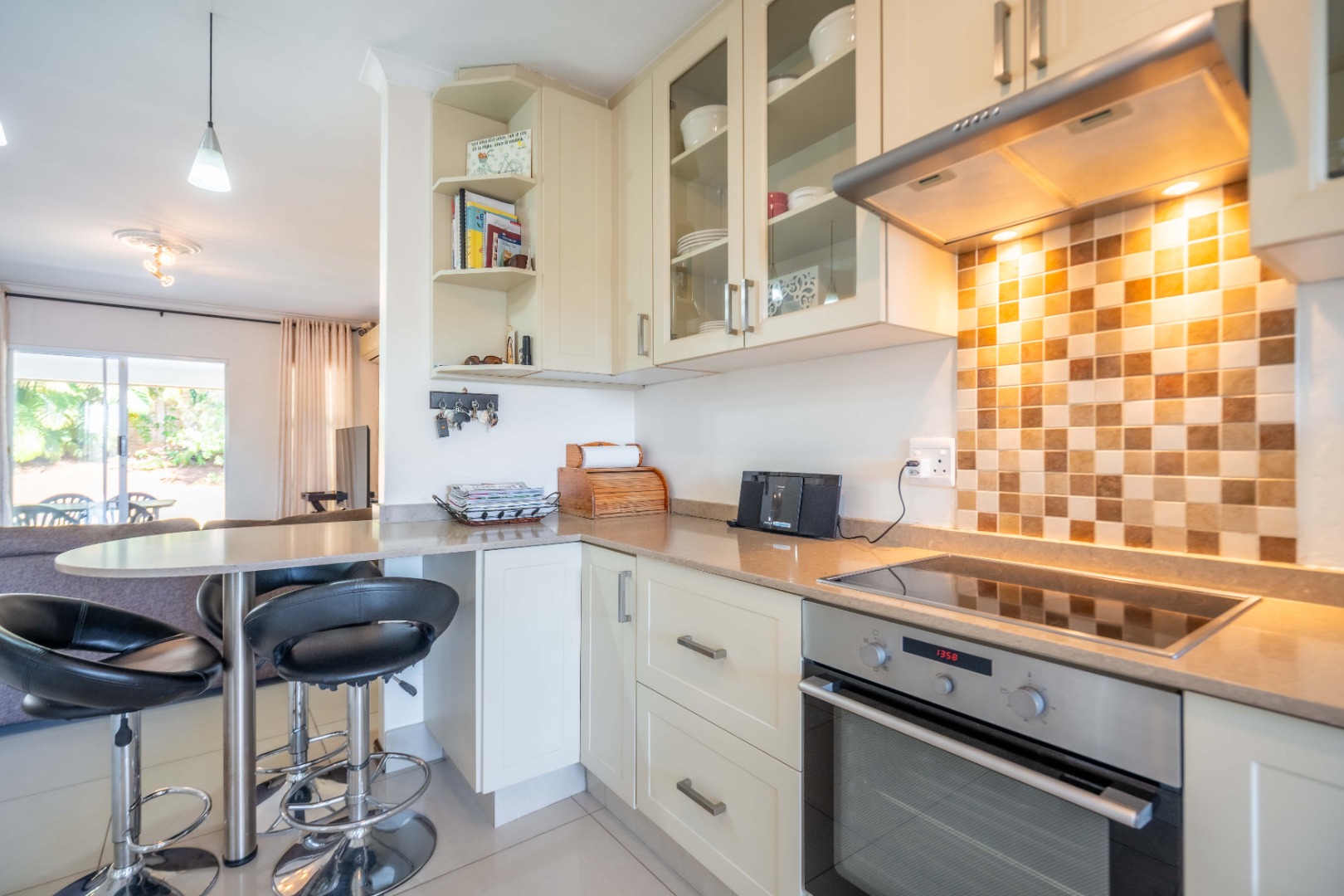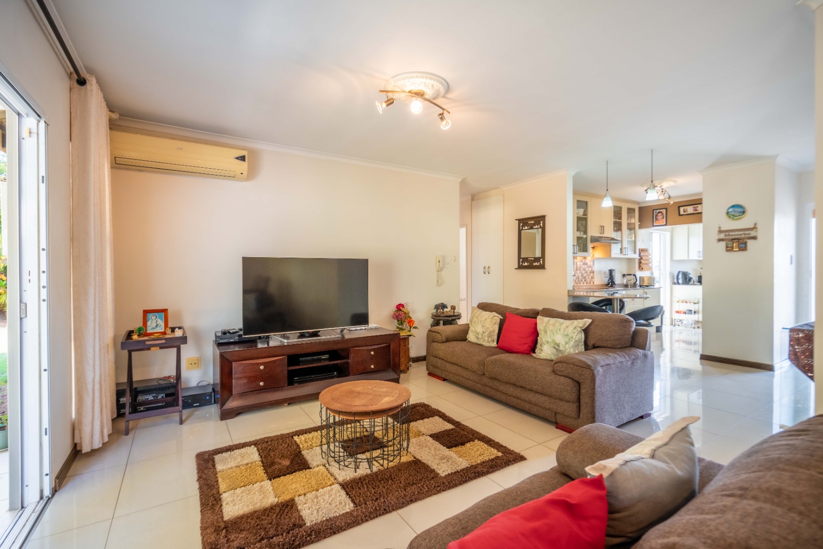 Glass doors open seamlessly from the lounge and dining area onto a covered patio and a totally private, lush tropical garden that wraps around the home. Morning coffees, weekend braais, barefoot afternoons with the dogs or kids playing safely, this outdoor space is pure magic and feels like your own private retreat.