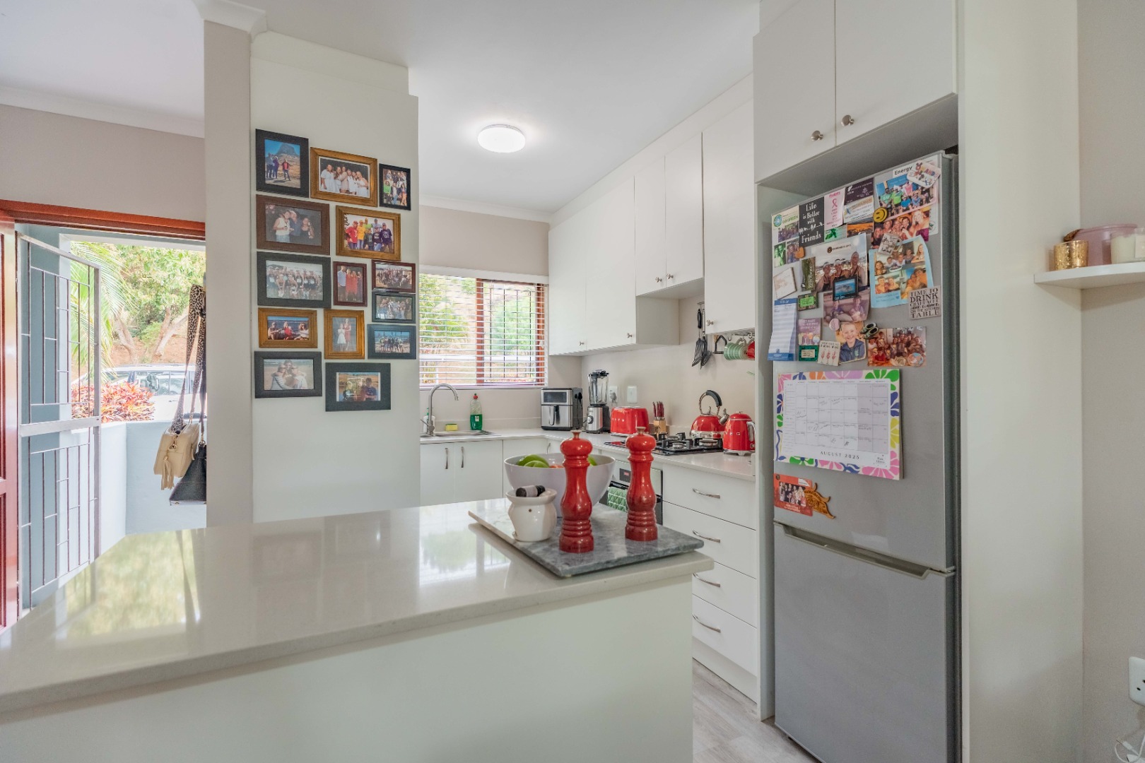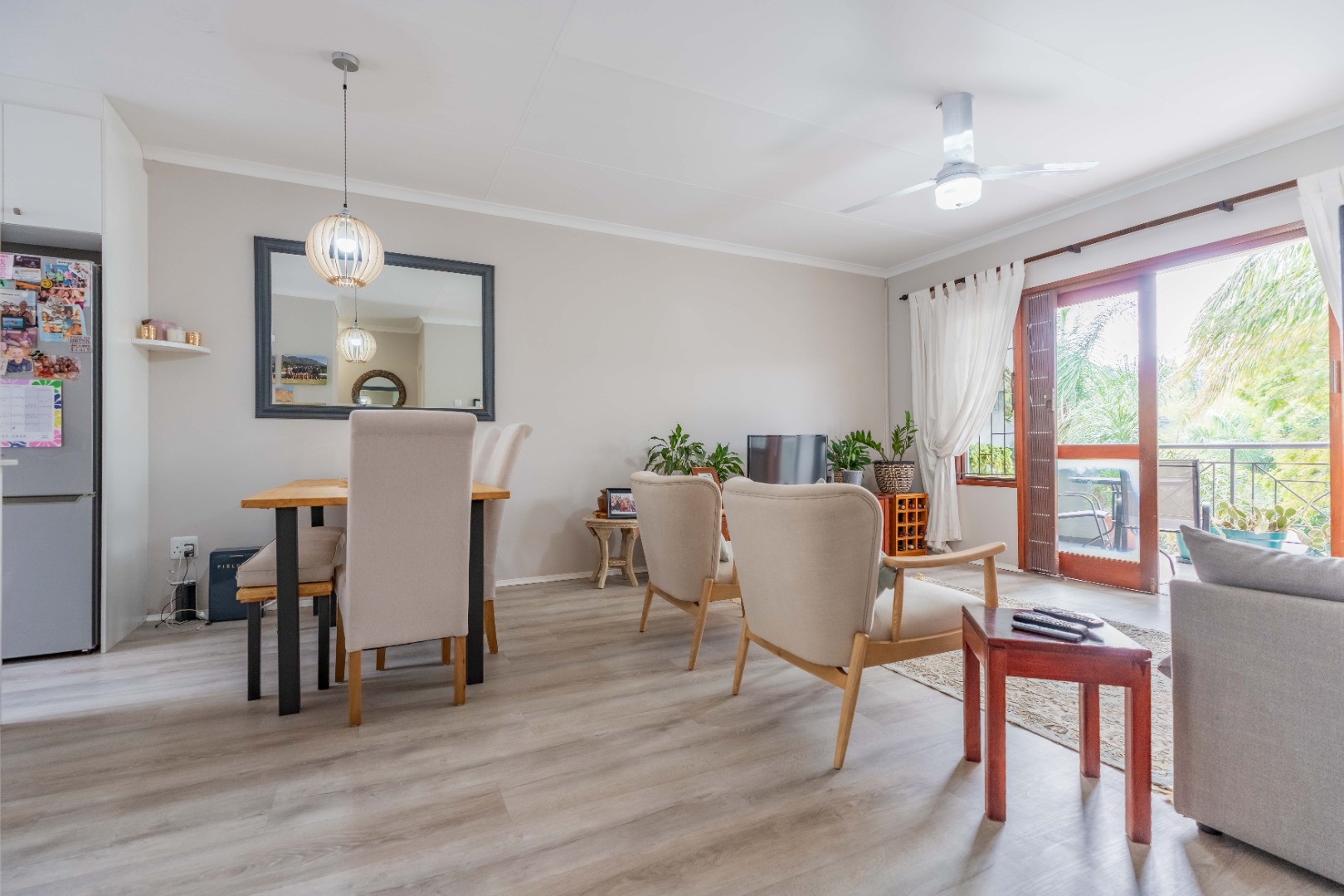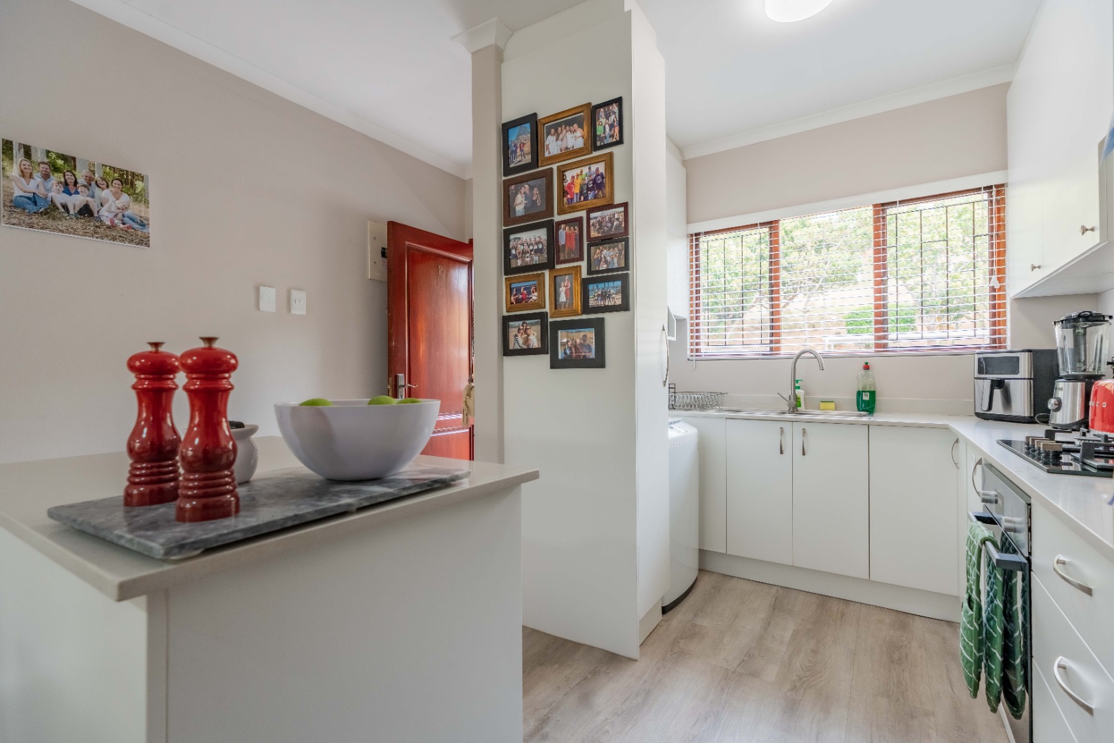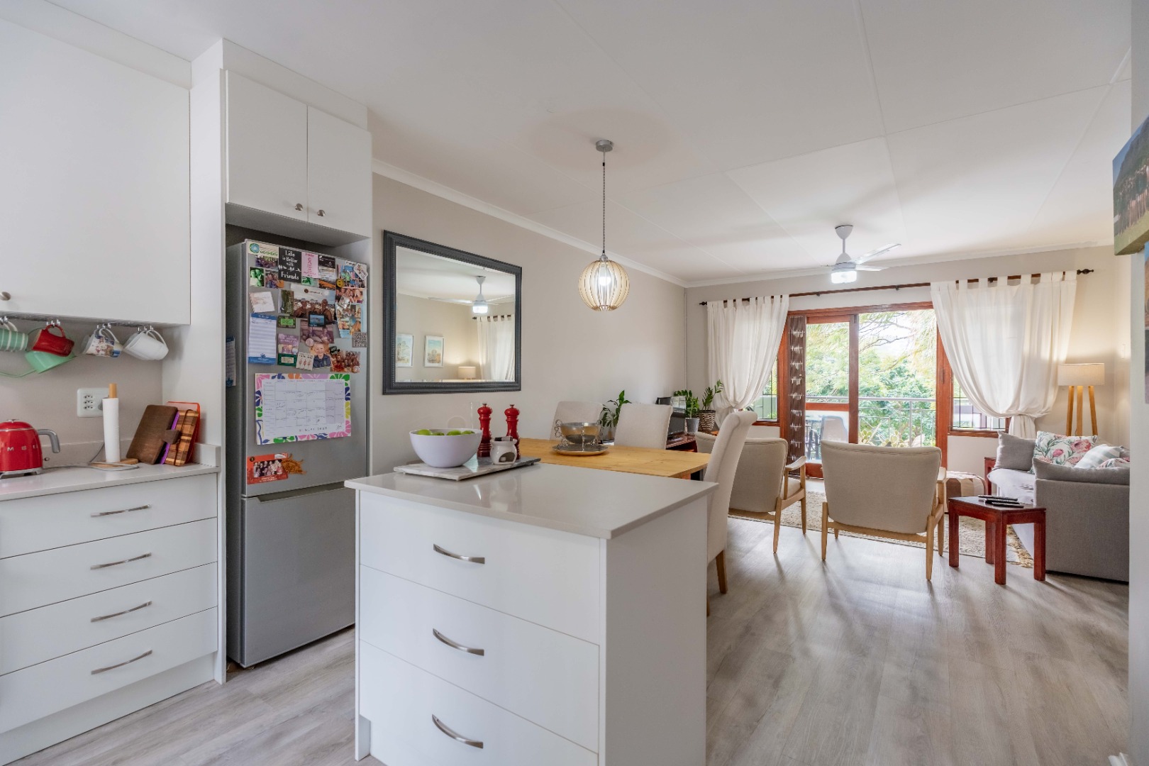 Newly revamped open plan kitchen with quartz stone tops and gas stove. Well-appointed lounge with ceiling fans, and dining room leads onto a covered patio overlooking the expansive and manicured gardens within the complex.