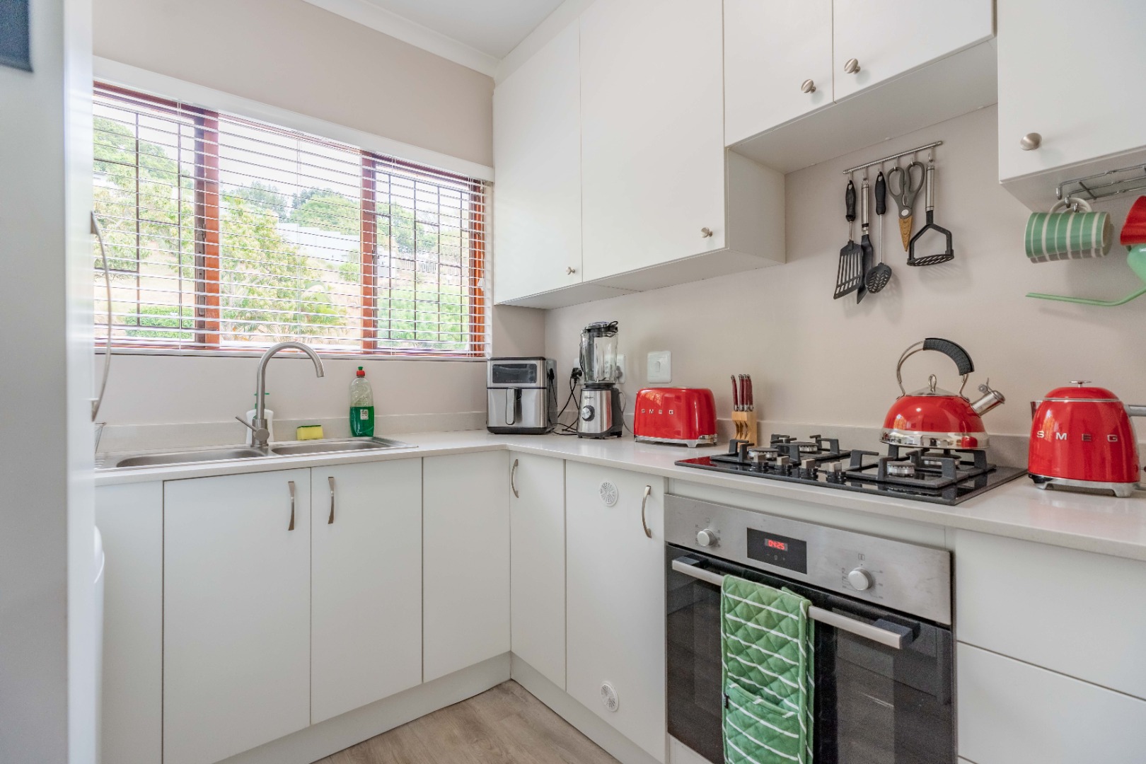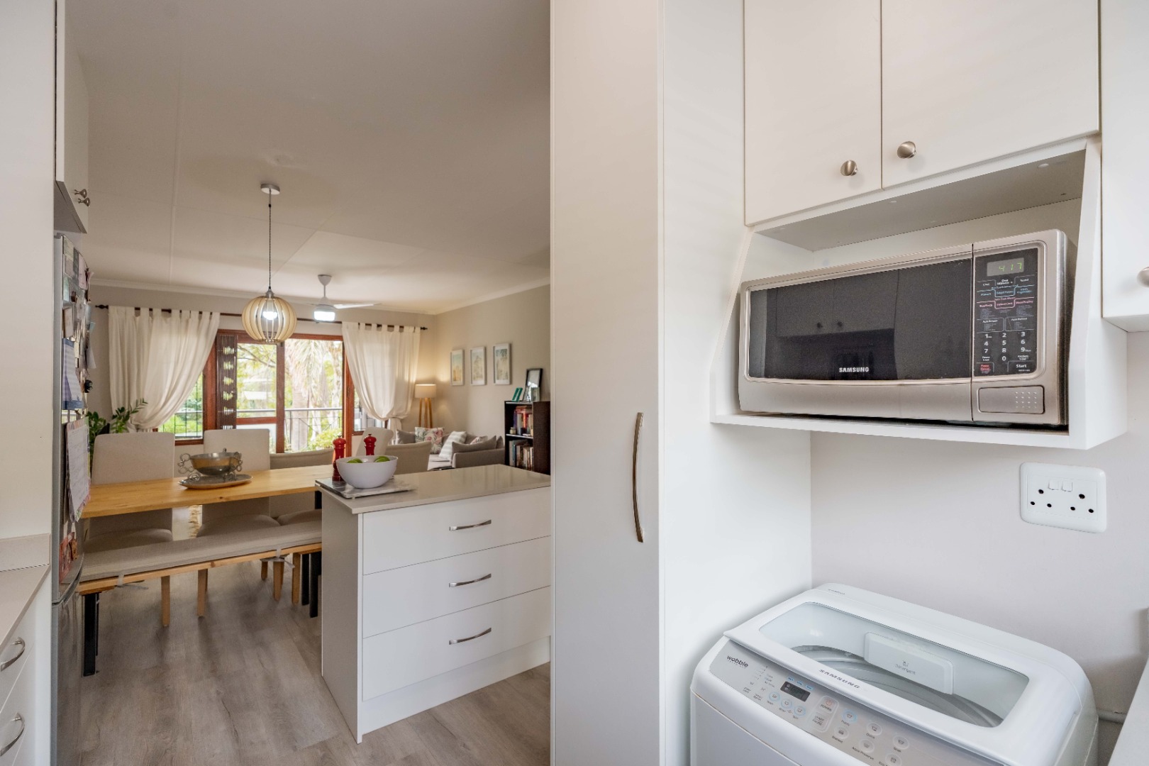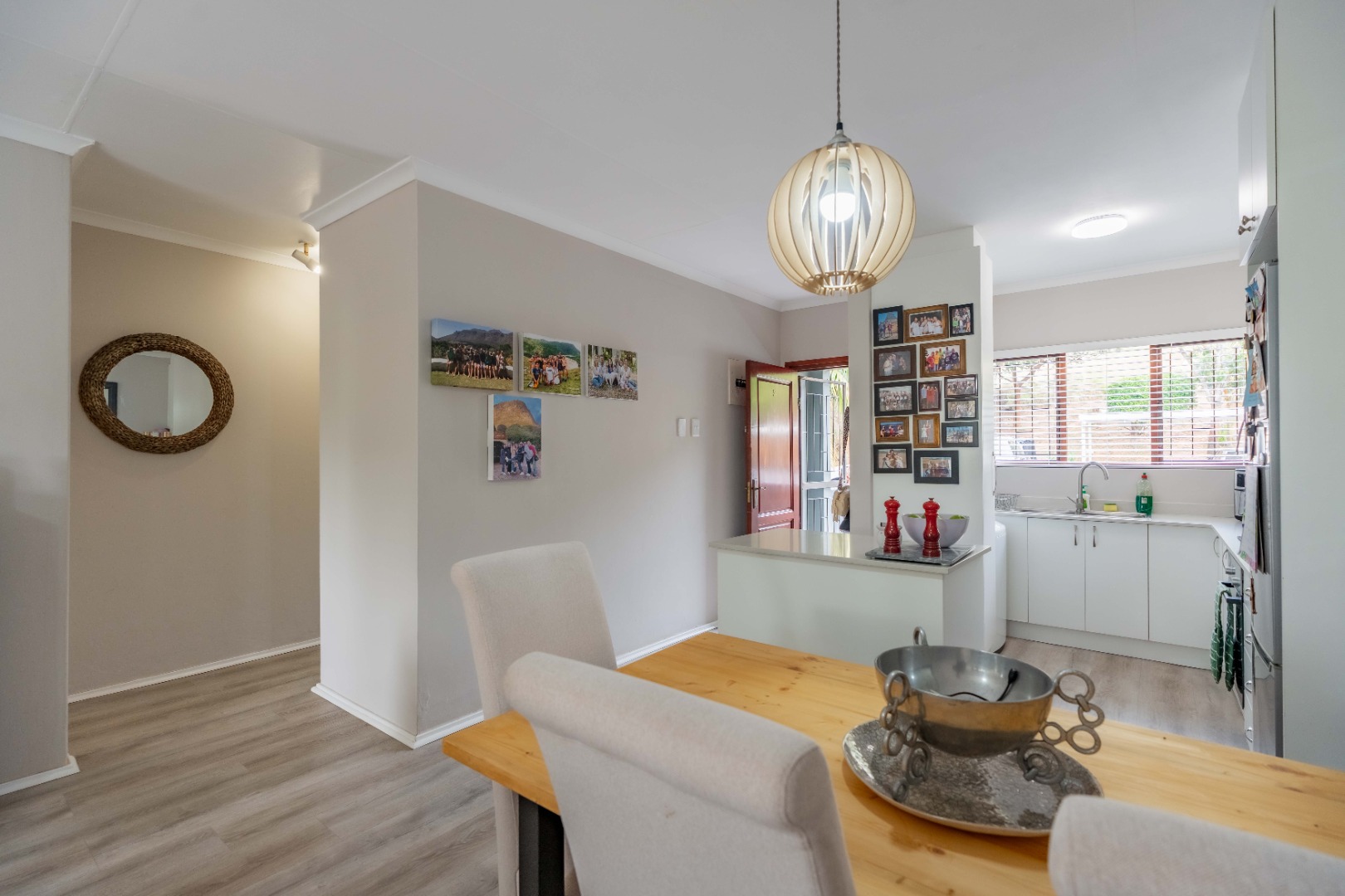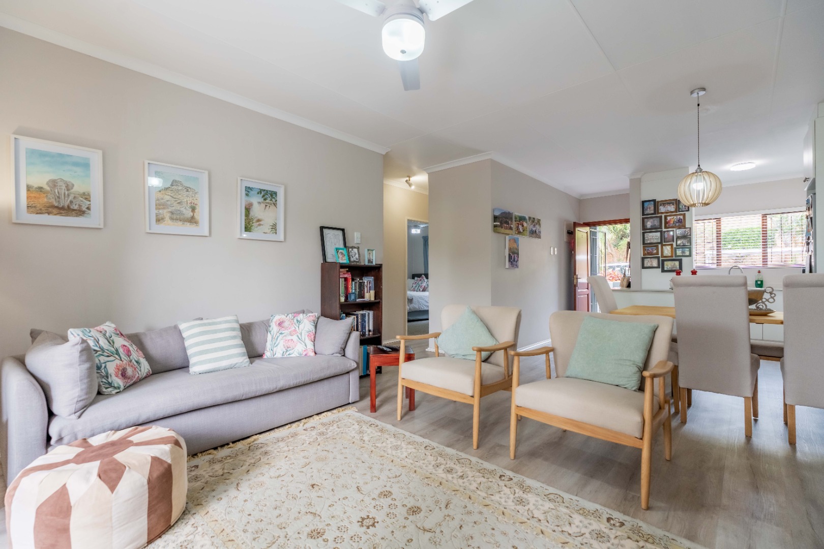 Newly revamped open plan kitchen with quartz stone tops and gas stove. Well-appointed lounge with ceiling fans, and dining room leads onto a covered patio overlooking the expansive and manicured gardens within the complex.