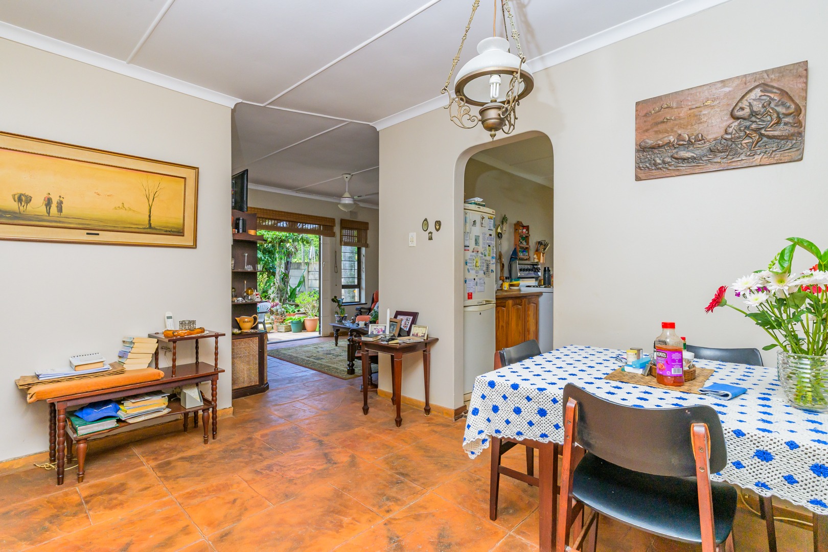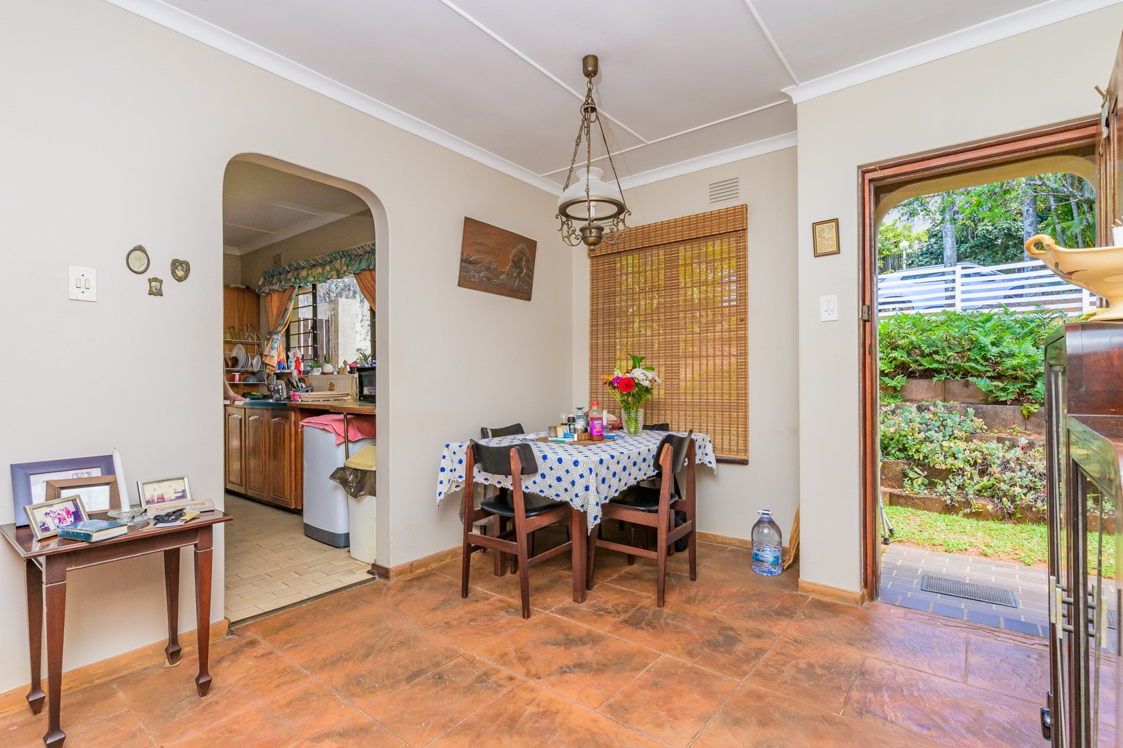 The dining room and lounge flows out to a sunny patio and neat colourful garden, perfect for entertaining