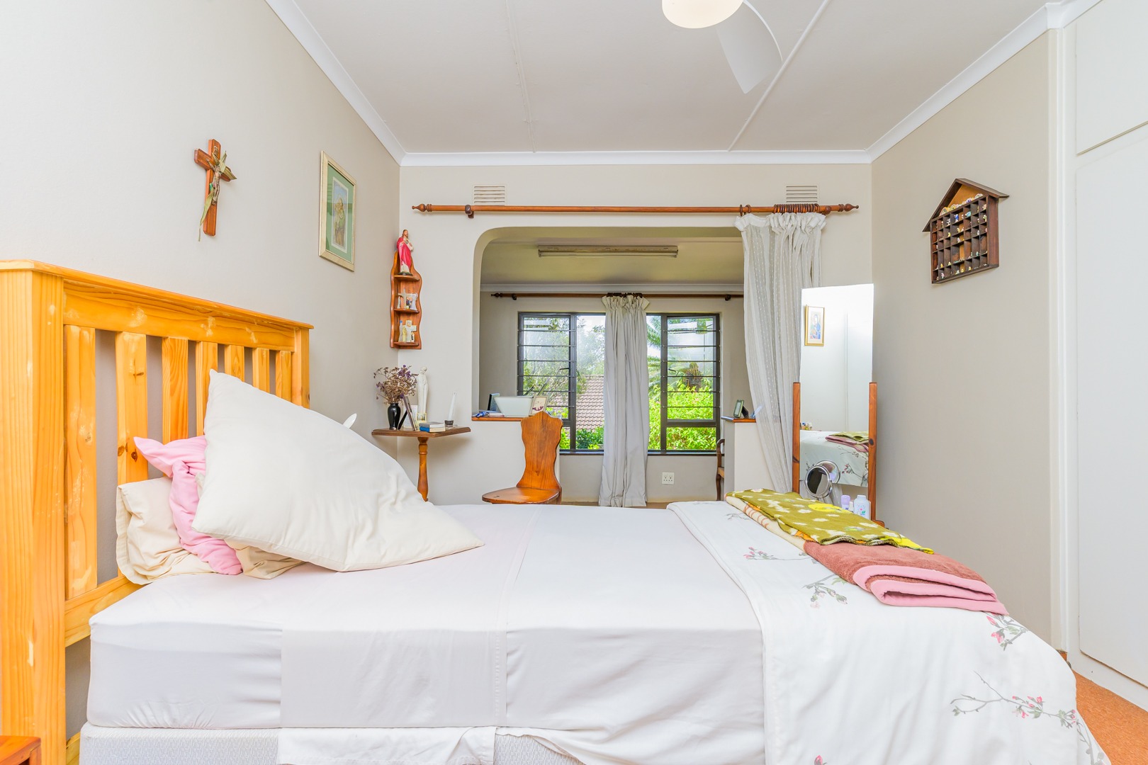 Spacious main bedroom with ample cupboard space with an adjoining office or child’s bedroom.