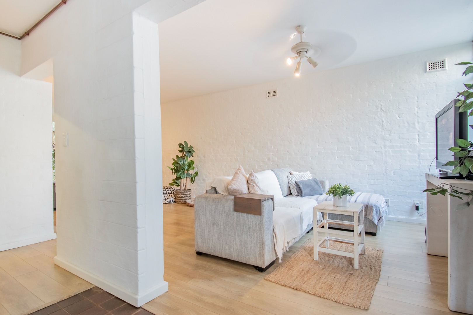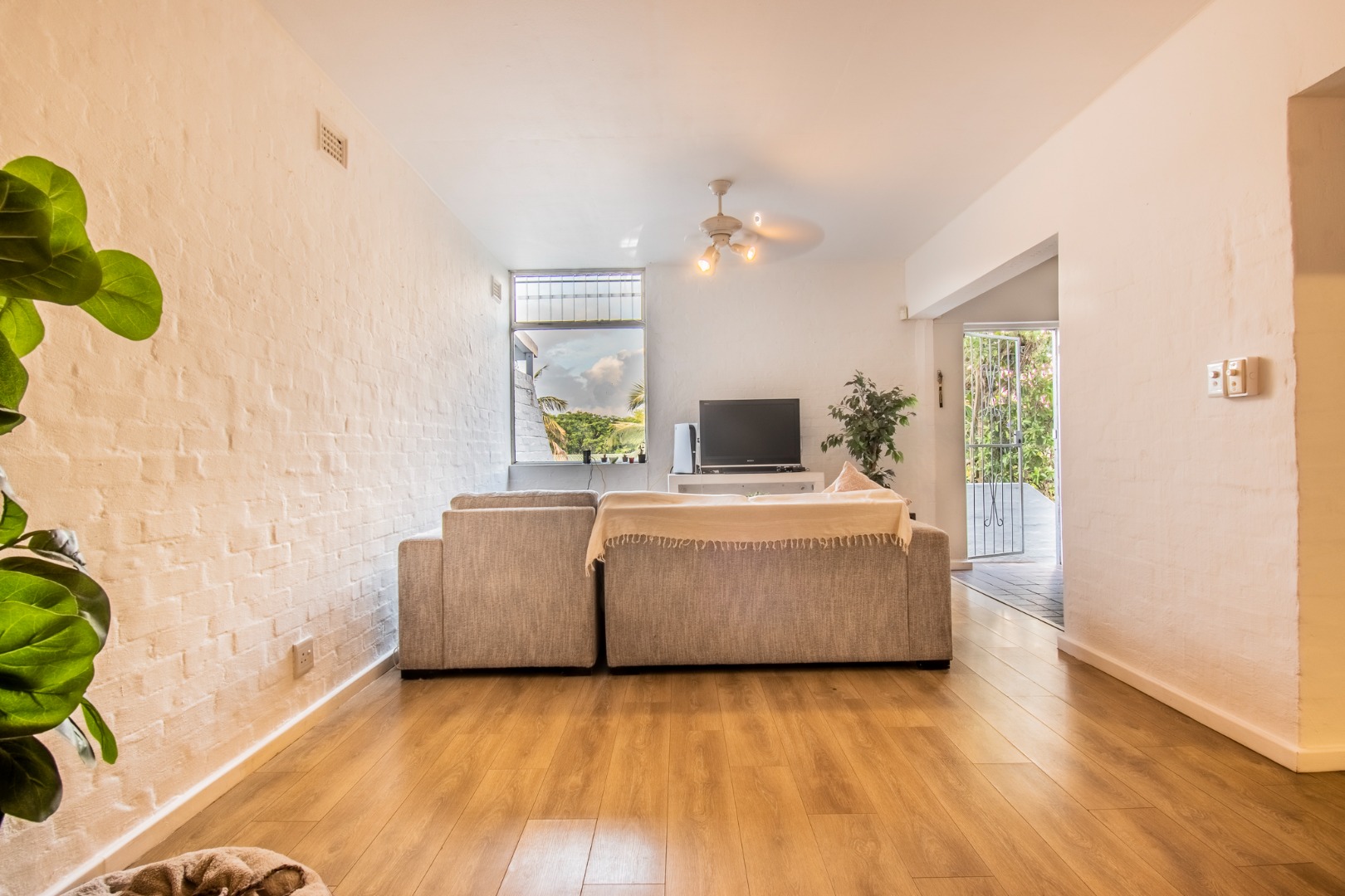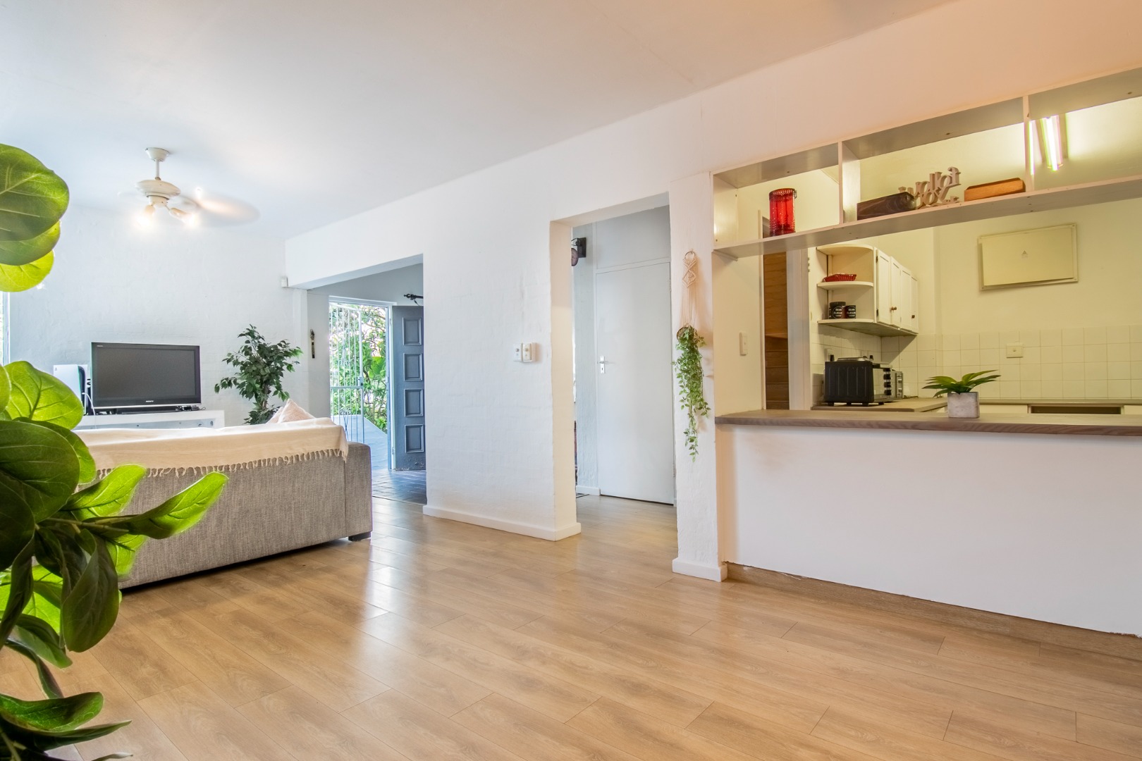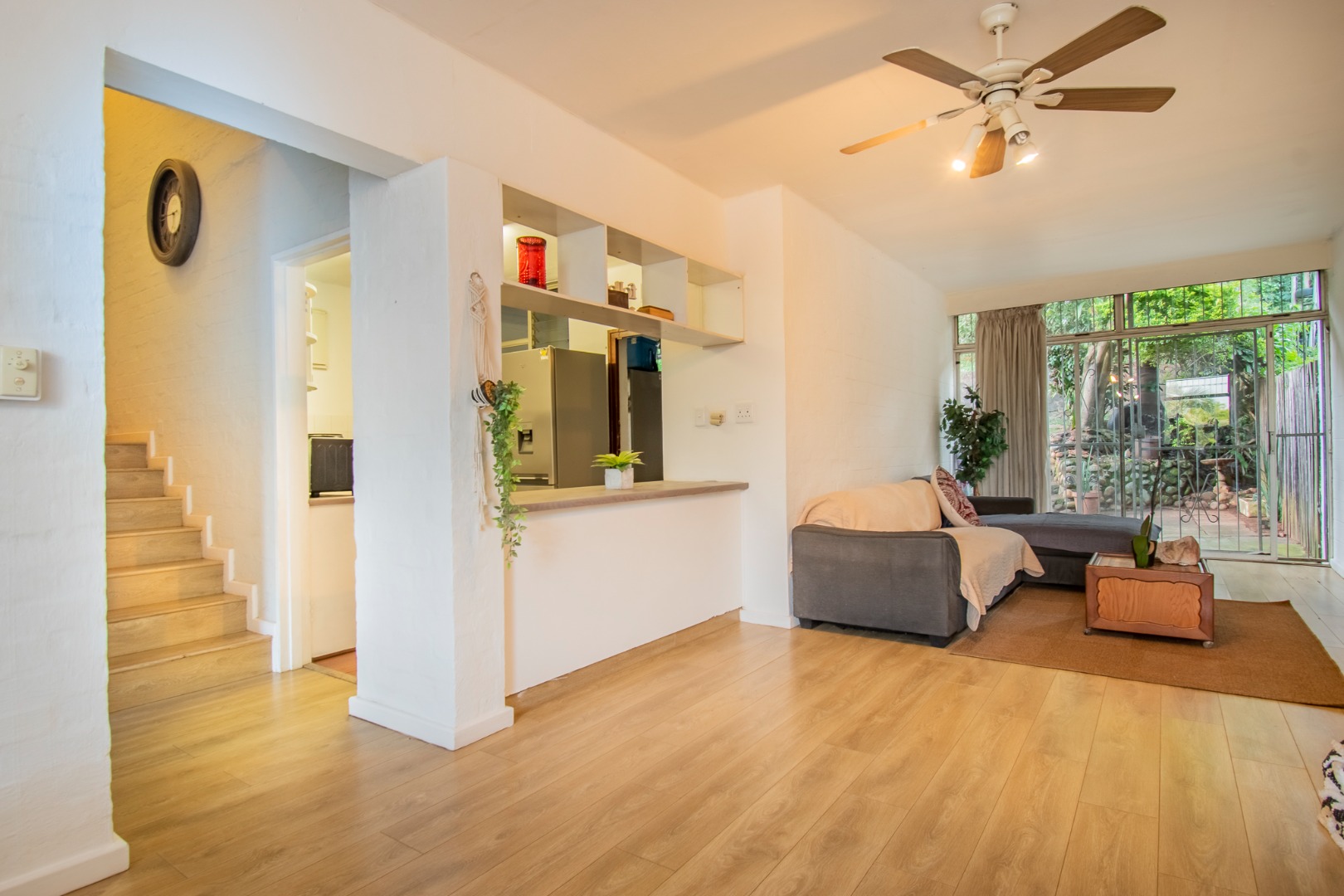 This home, offers elevated views and easy family living, and is a perfect starter home. A slasto-paved entrance hall leads to the open plan, living areas, featuring a lounge and dining area, a light-filled space that flows easily for everyday living, plus guest loo.