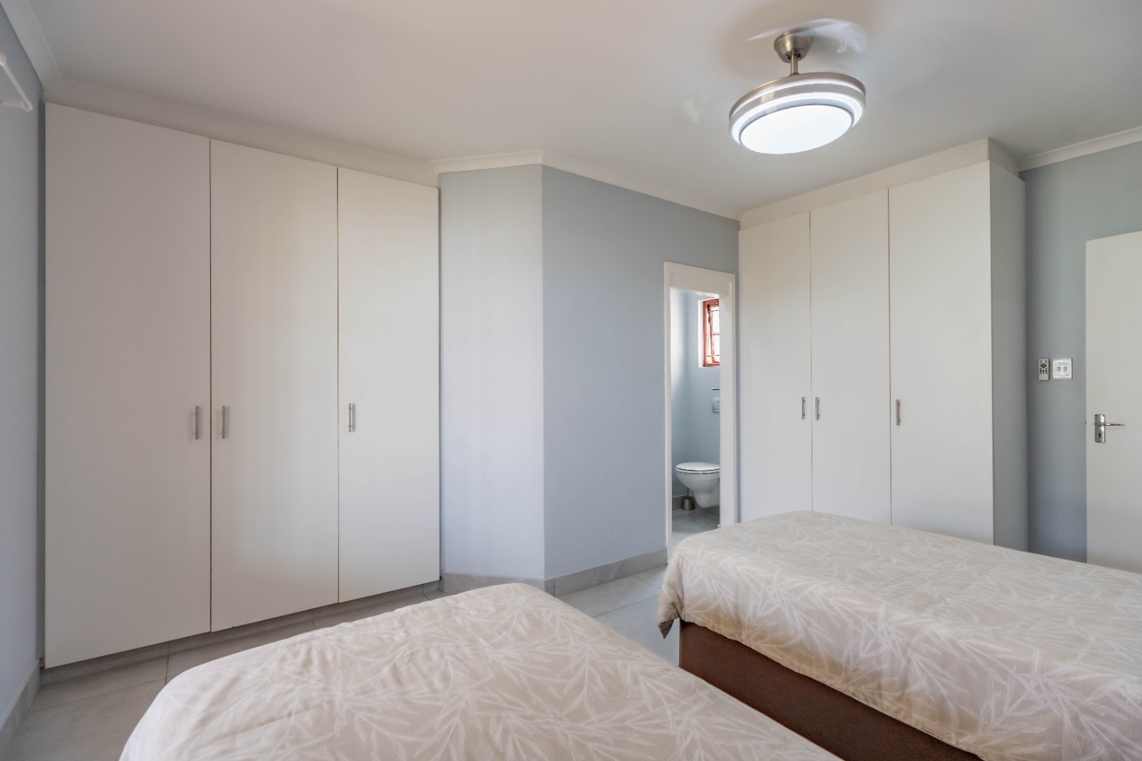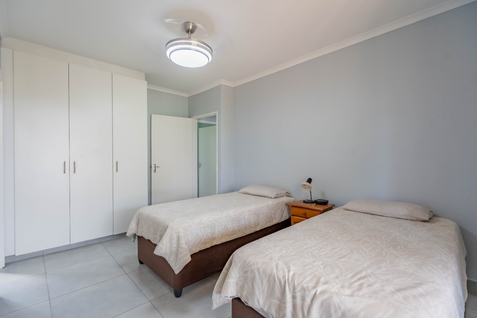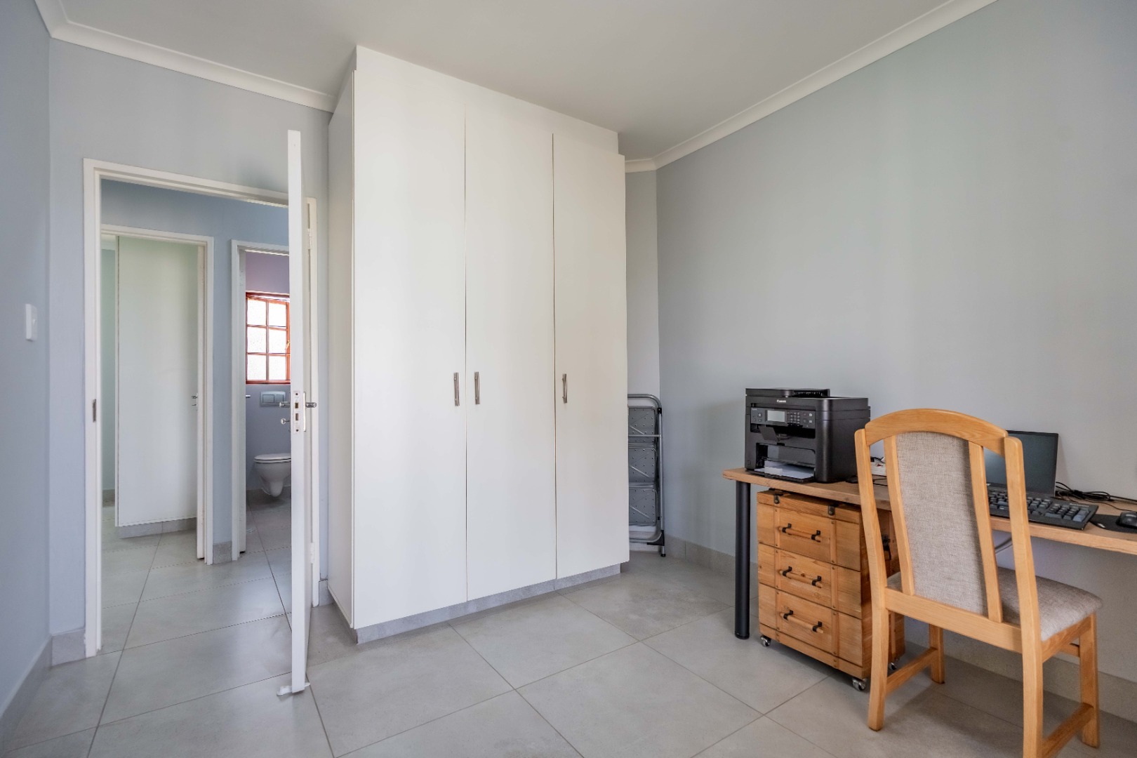 Three well-sized bedrooms with built-in cupboards provide comfortable accommodation, with flexibility for a guest room, nursery, or home office.
