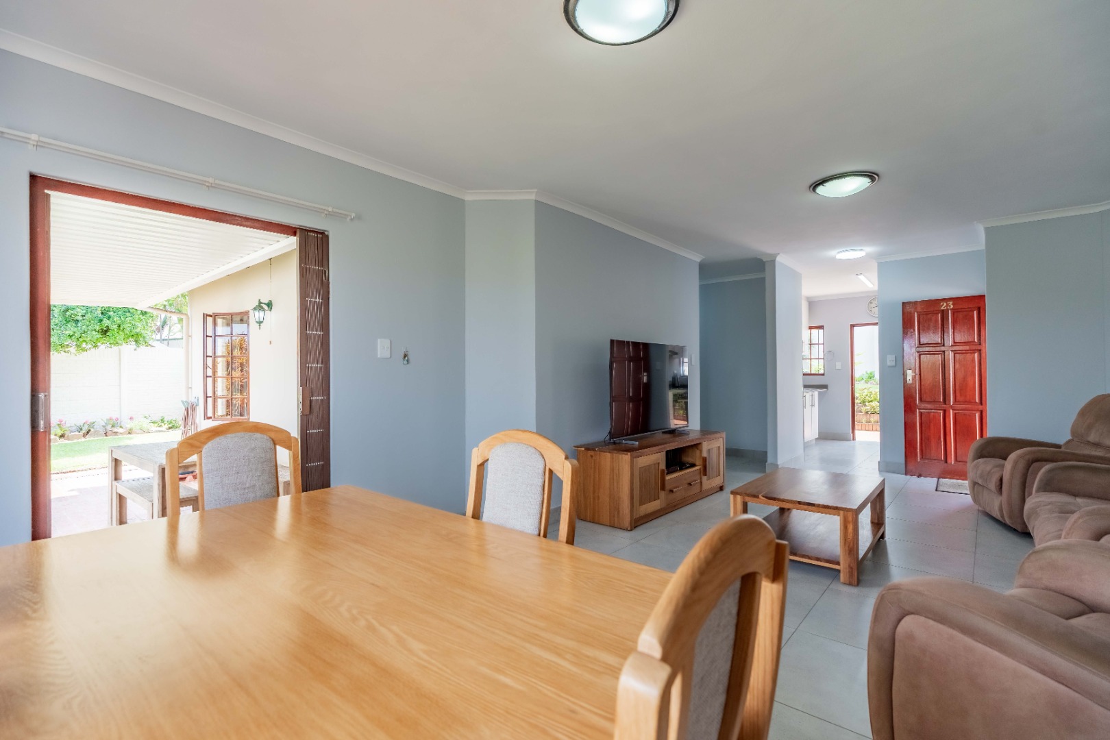 The open-plan living and dining area creates a welcoming central hub — ideal for relaxed evenings or entertaining guests.