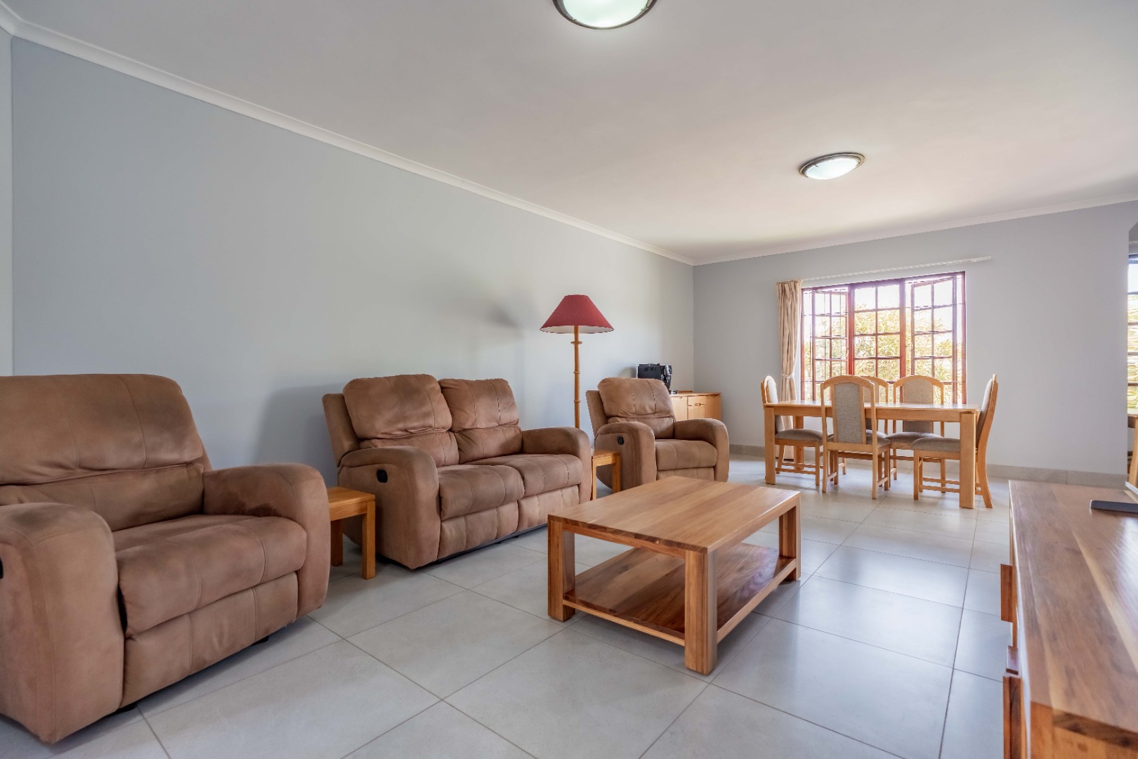 The open-plan living and dining area creates a welcoming central hub — ideal for relaxed evenings or entertaining guests.