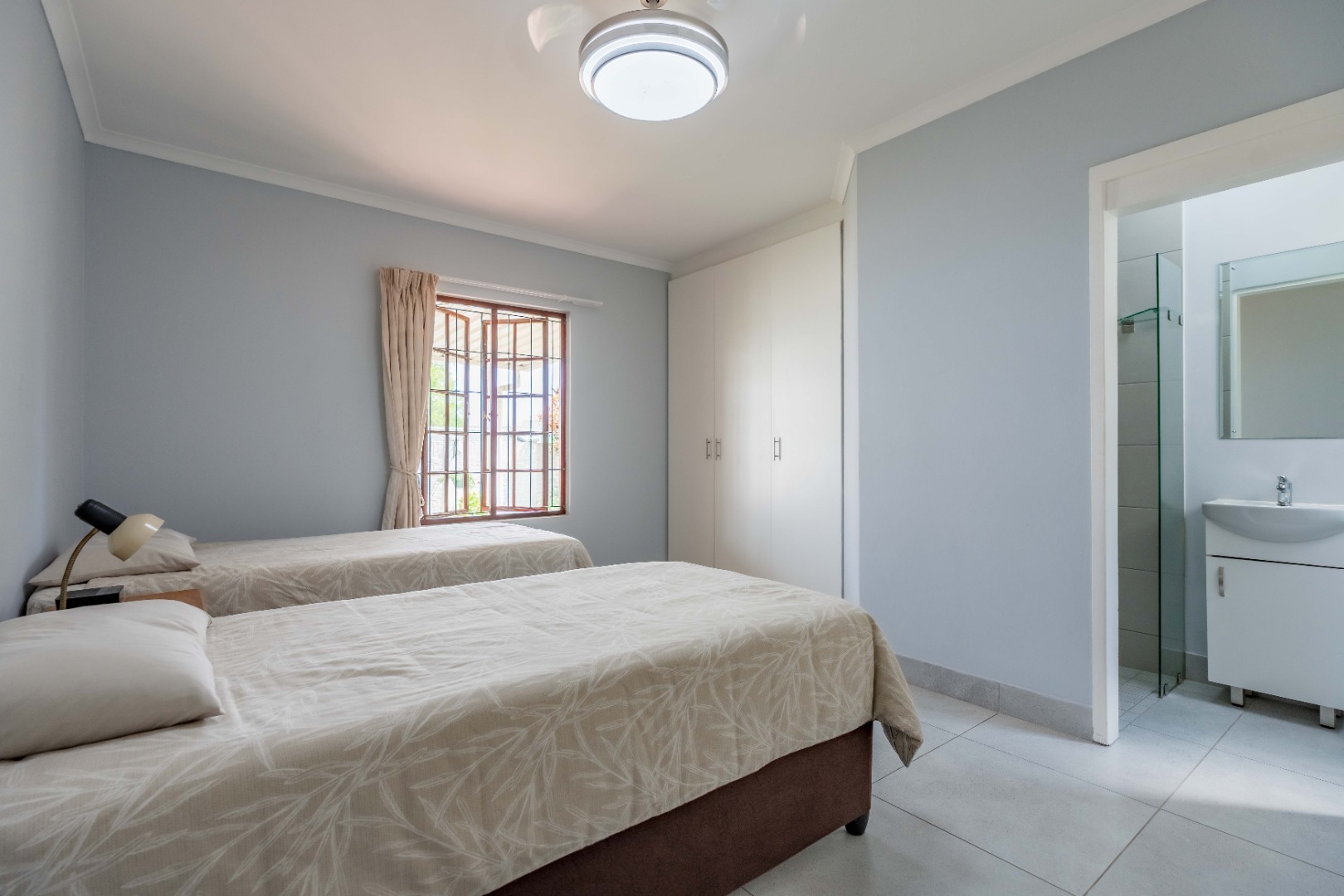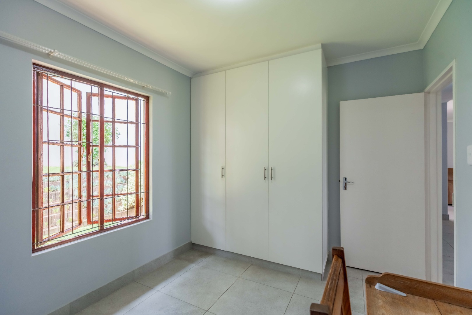 Three well-sized bedrooms with built-in cupboards provide comfortable accommodation, with flexibility for a guest room, nursery, or home office.