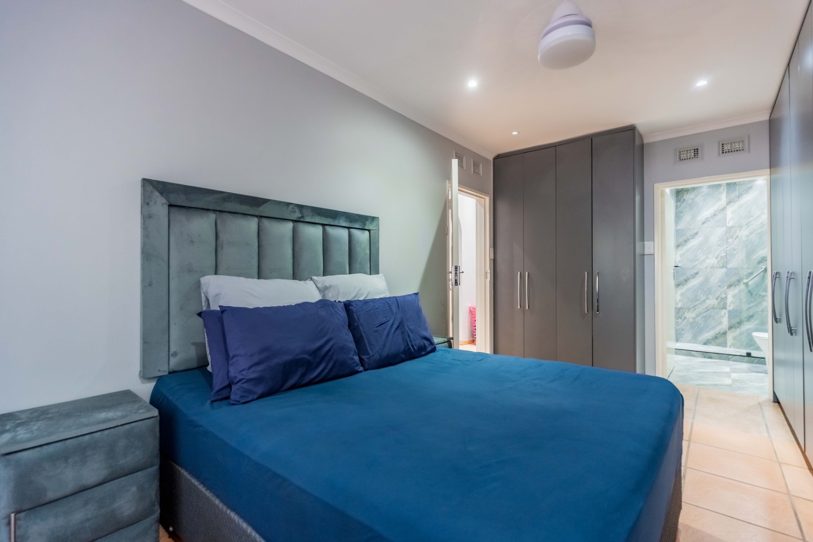 This home offers x3 spacious bedrooms, all fitted with air-conditioning and ceiling fans, and 2 modern, stylish bathrooms, including a beautifully upgraded main en-suite. The third bedroom is currently fitted with extensive built-in cupboards fit for a queen! Used currently as a dressing room, or easily converted back into a full bedroom.