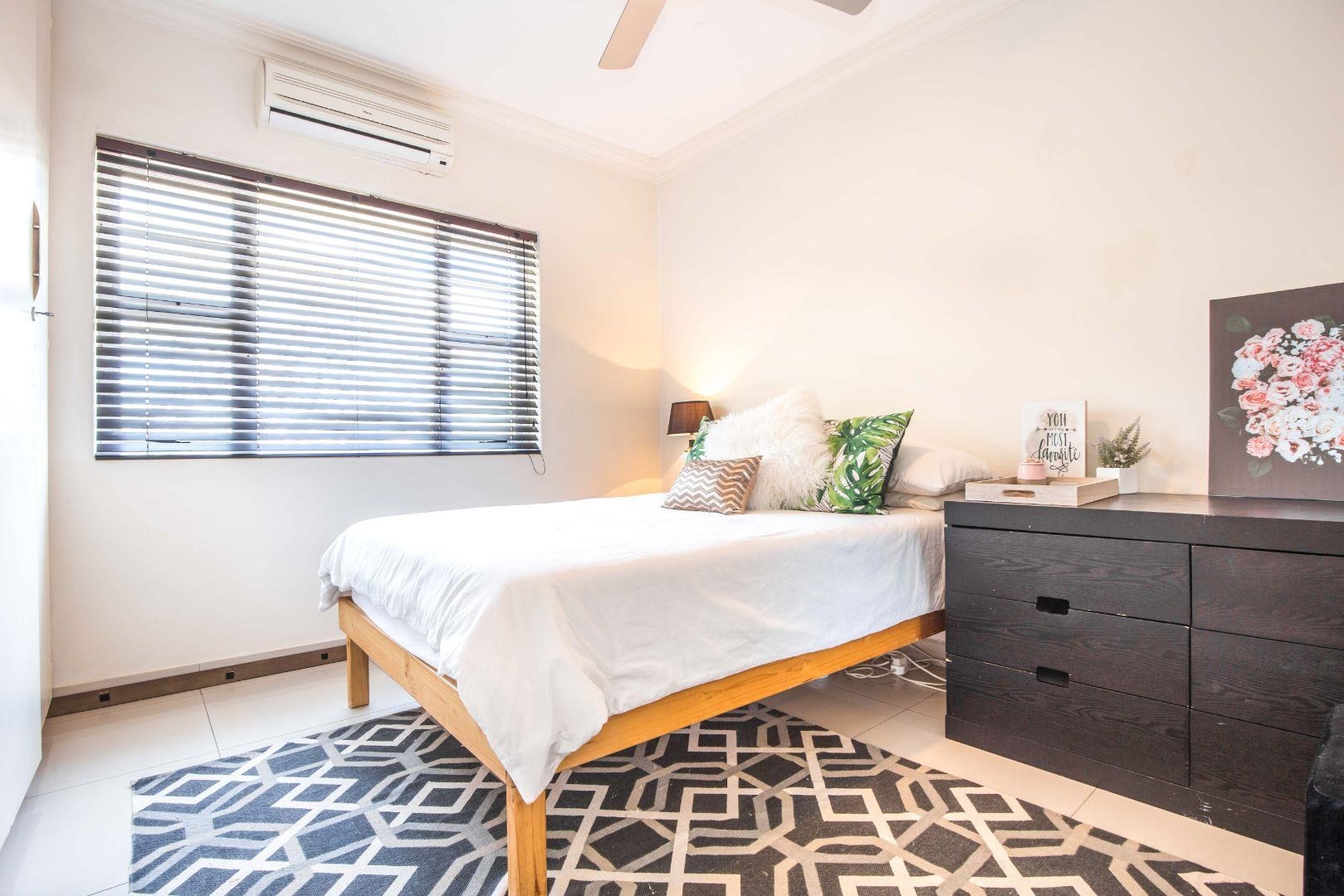 Speaking of private spaces, the three bedrooms are all comfy and inviting. The main bedroom has its own en-suite shower bathroom, complete with a space-saving sliding barn door. The other two bedrooms also come with built-in wardrobes, air conditioning, and ceiling fans, ensuring everyone stays comfortable. The second bathroom is clean and modern, featuring a bathtub for those relaxing soaks.