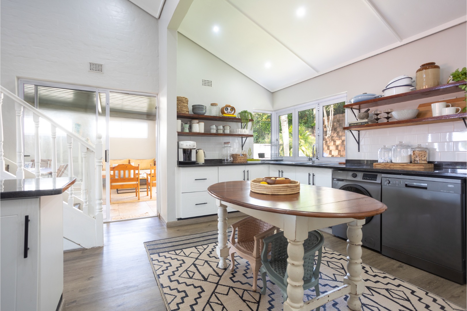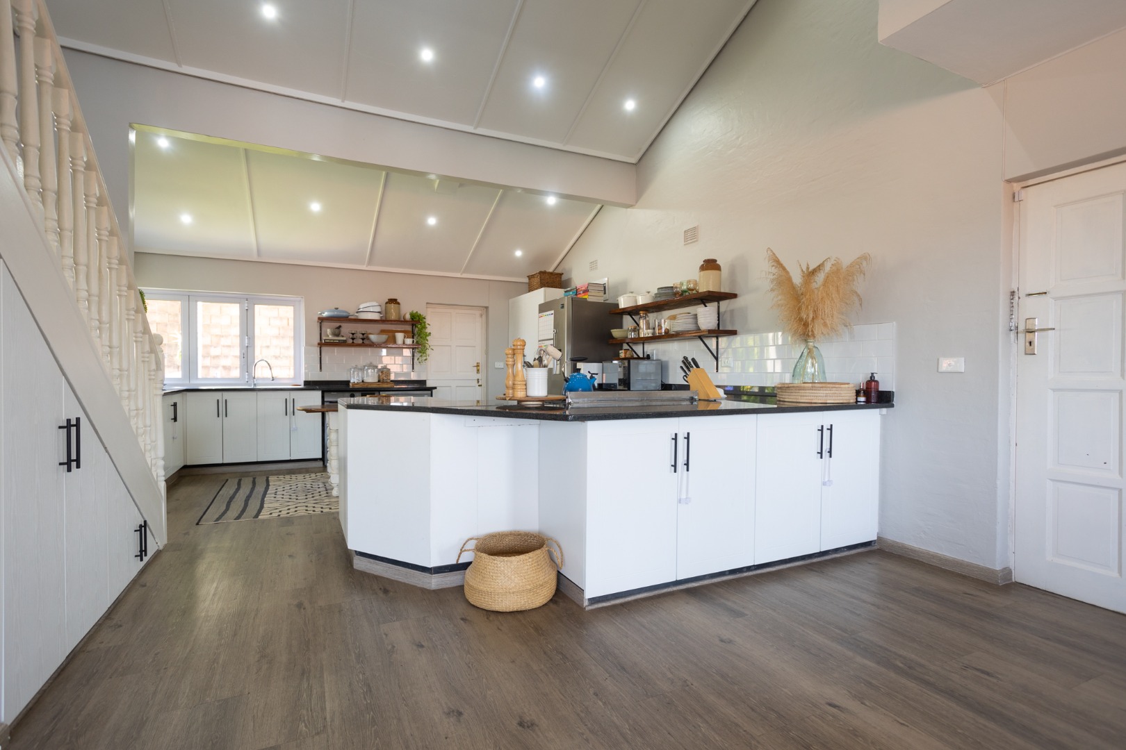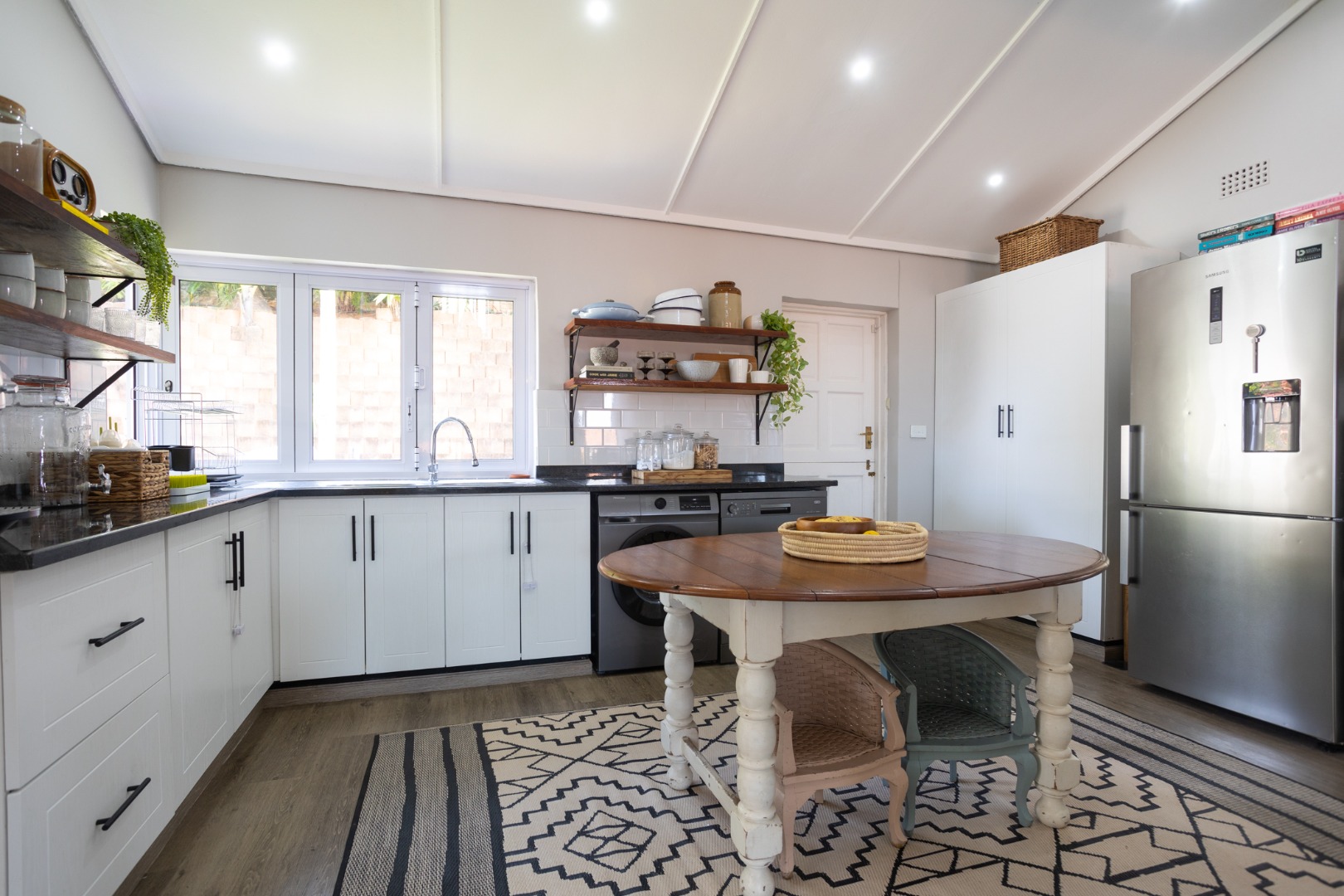 Upstairs, 3 spacious, airy bedrooms feature built-in cupboards, ample storage, and high-pitched ceilings, all with air-conditioning for year-round comfort. These bedrooms are serviced by 2 contemporary bathrooms designed with modern finishes.