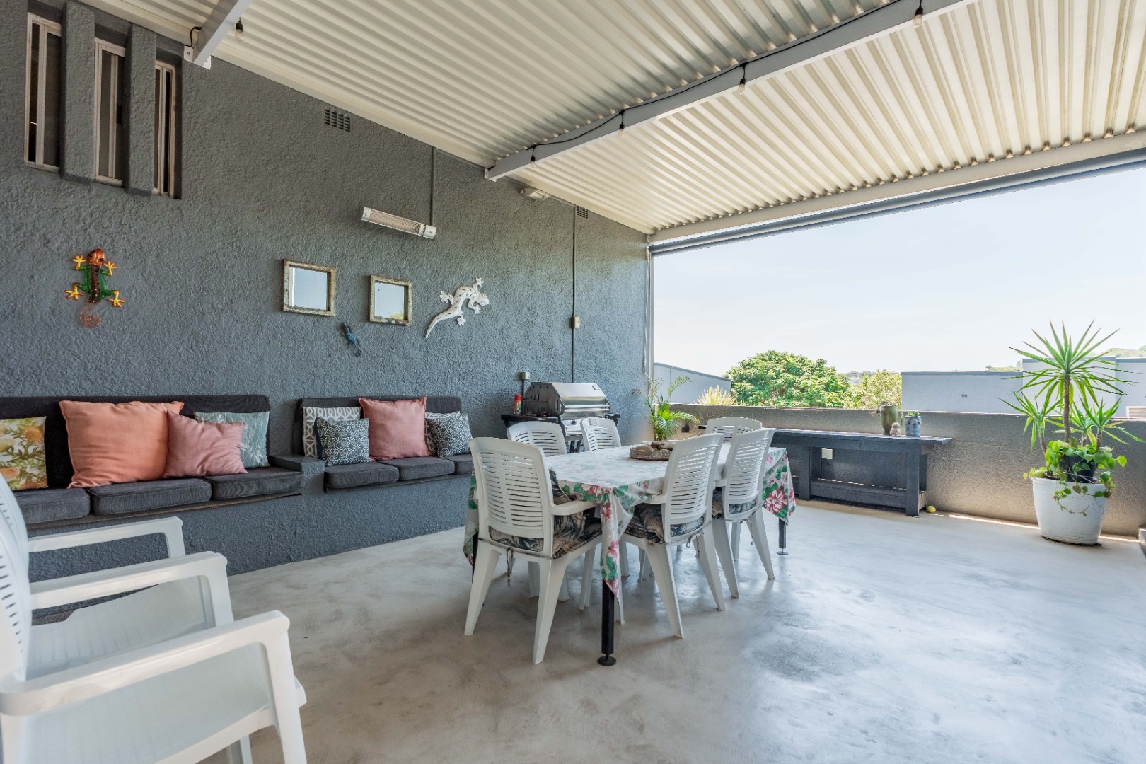 Step outside to your own private oasis: an undercover entertainment area, perfect for weekend braais, gatherings with friends, or relaxing summer afternoons. The low-maintenance outdoor space makes enjoyment easy and upkeep minimal.